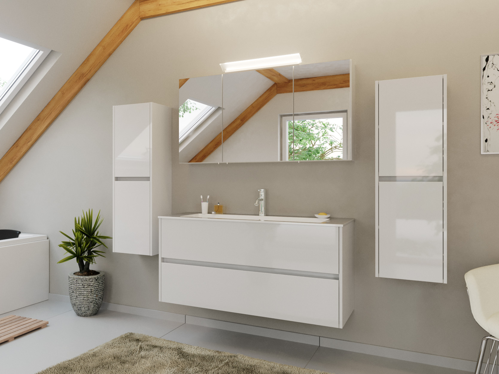Badmöbel Set Taifun 4tlg. 120 cm mit Spiegelschrank & 2x Seitenschrank weiß Hgl