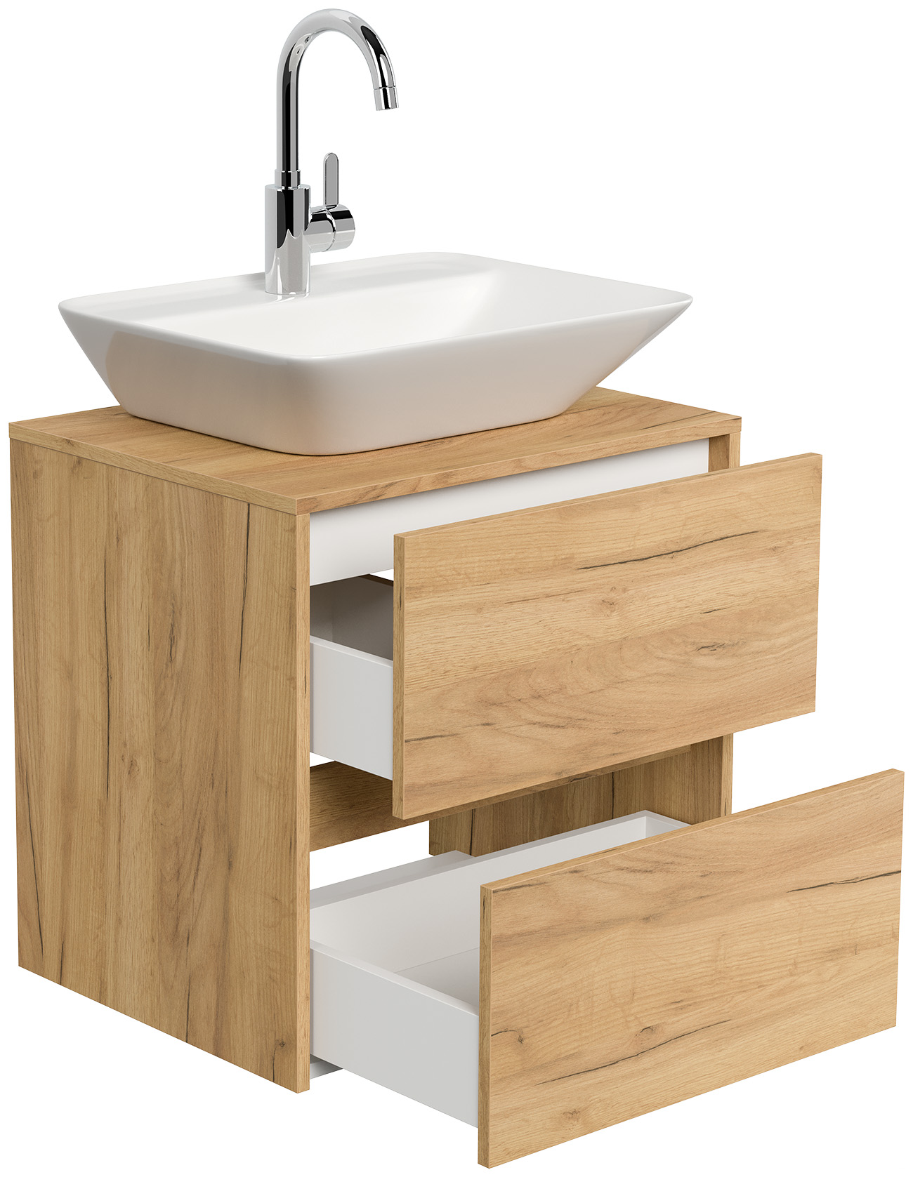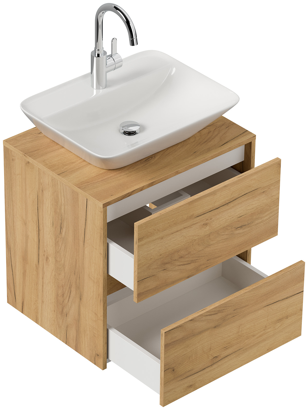 Badmöbel Taifun 60cm mit modernem Aufsatzwaschbecken eiche gold