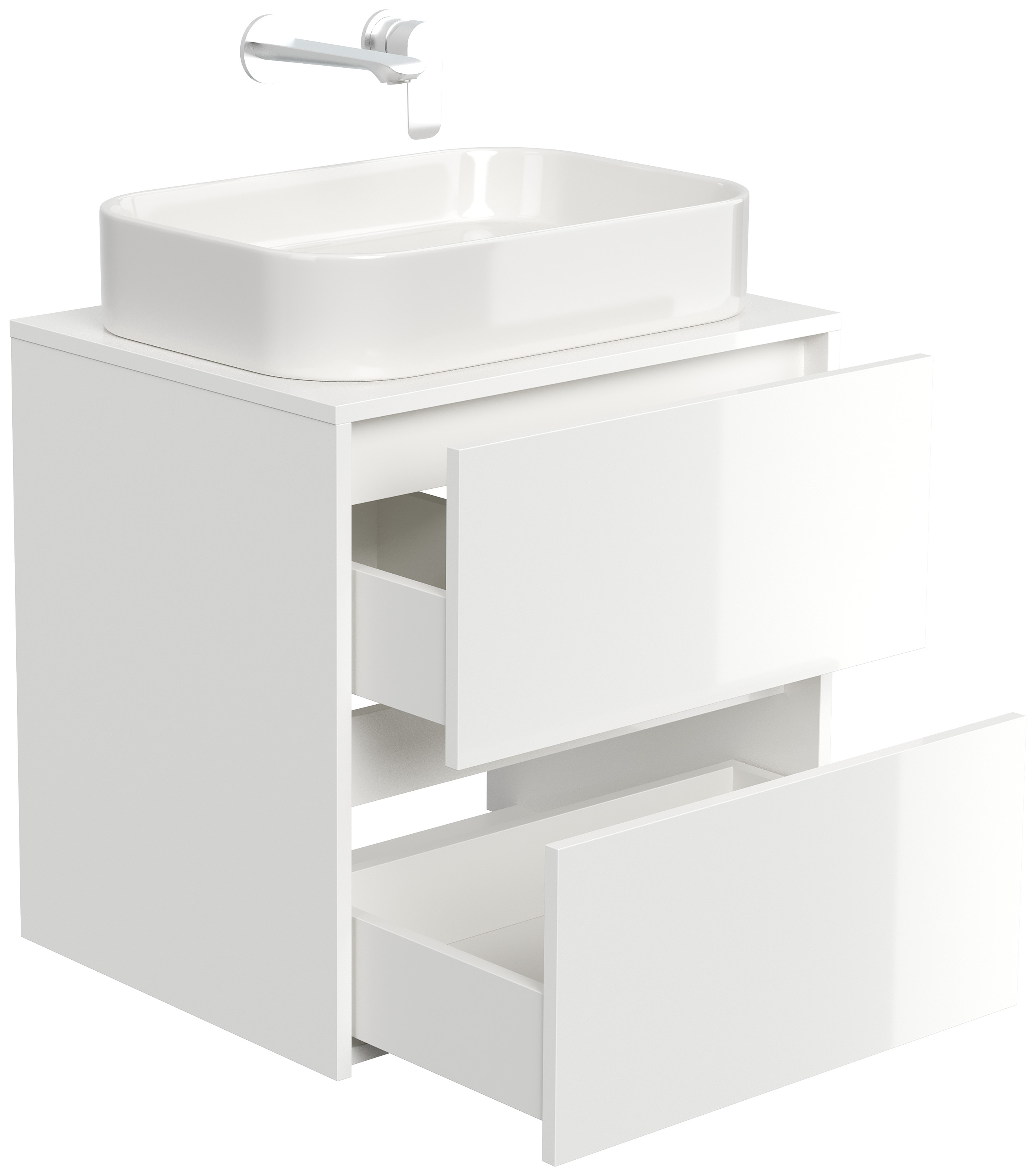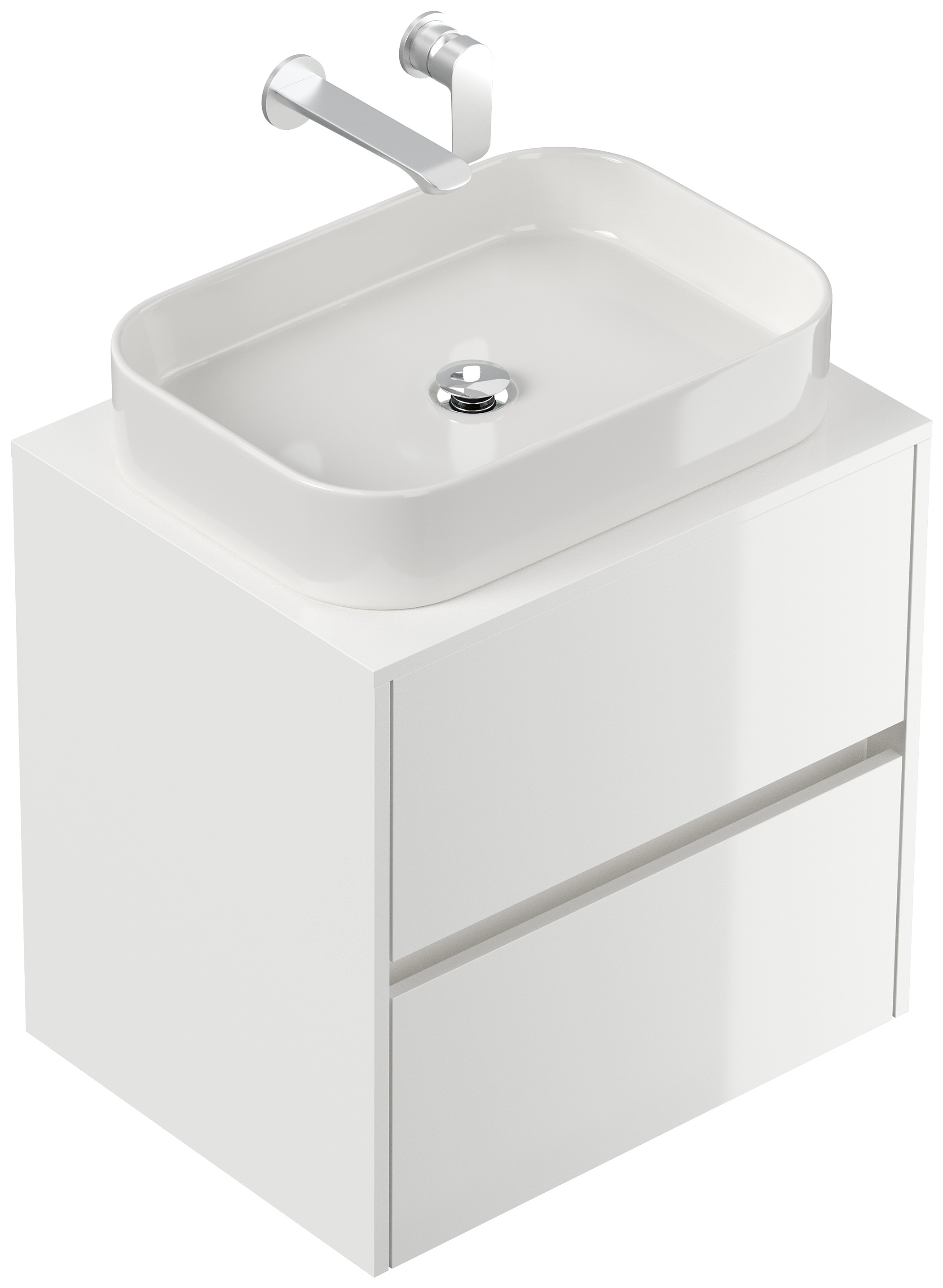 Badmöbel Taifun 60cm mit rechteckigem Aufsatzwaschbecken weiß Hgl
