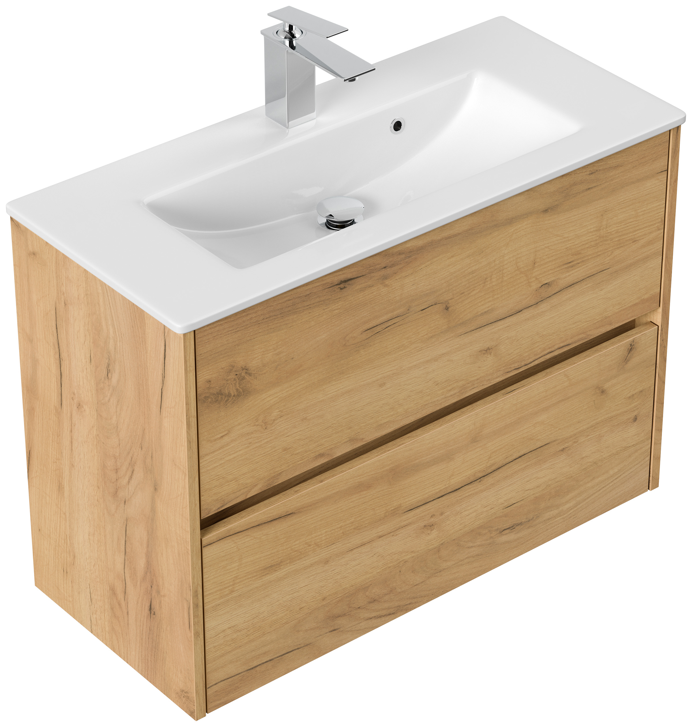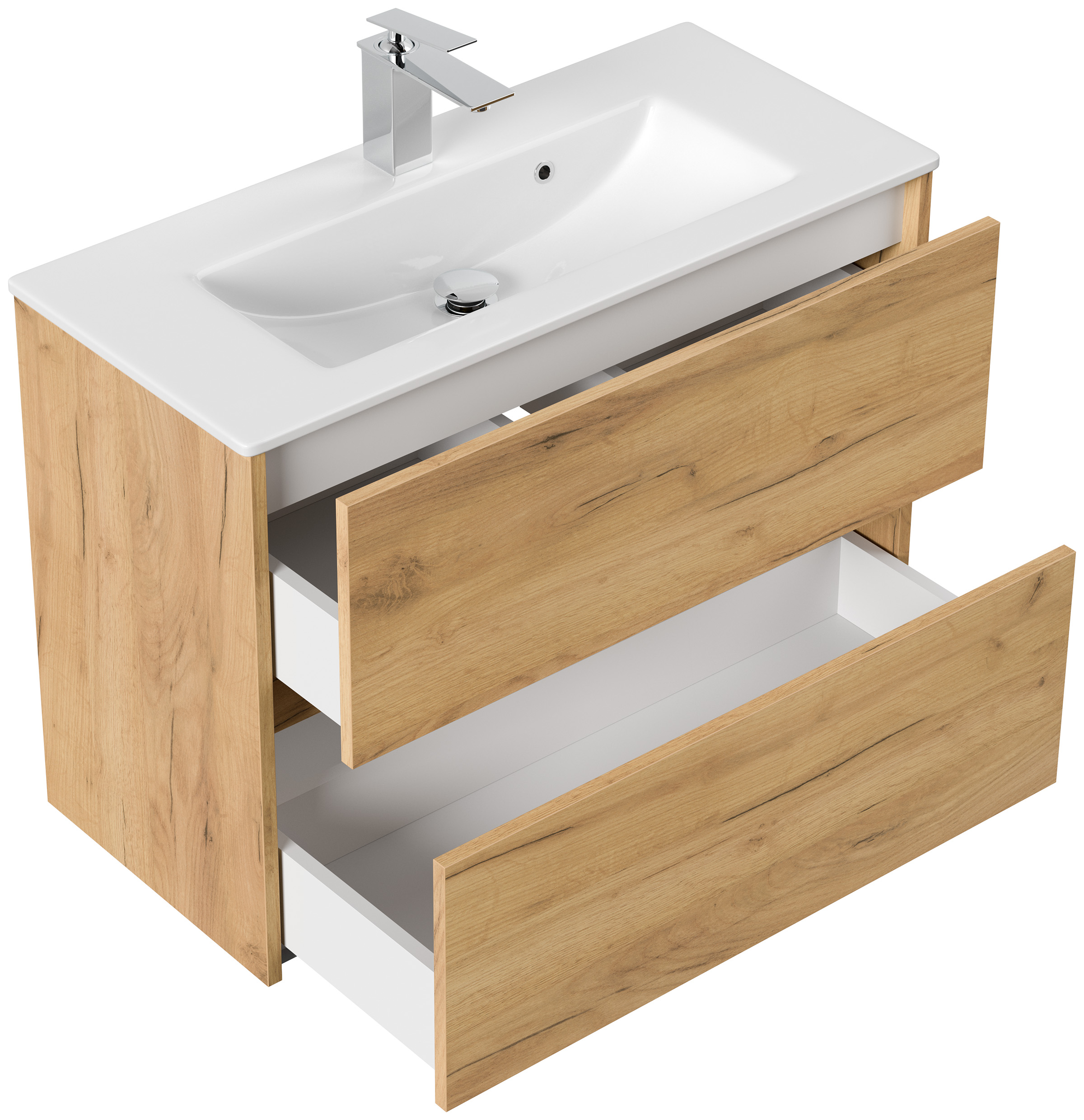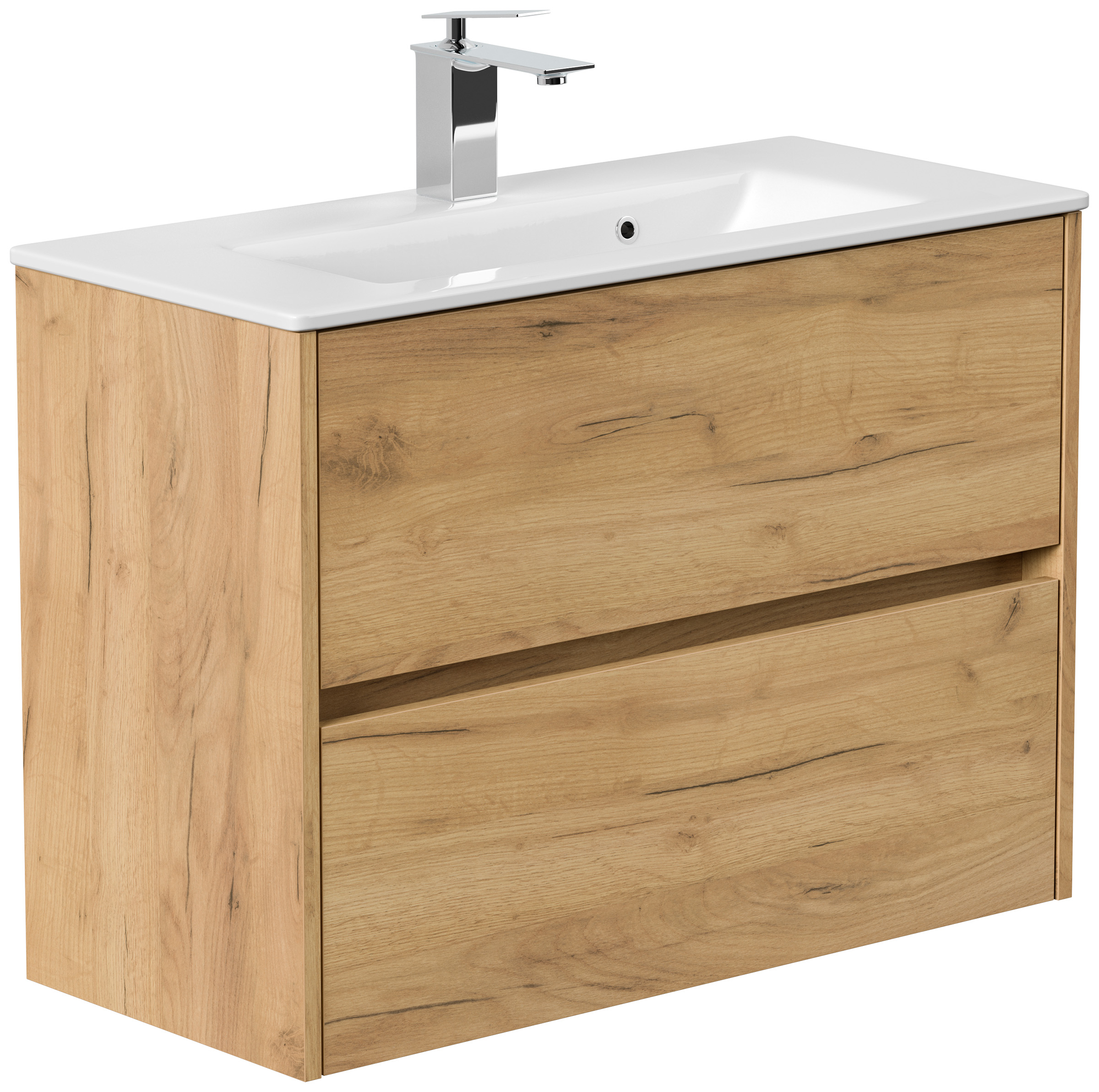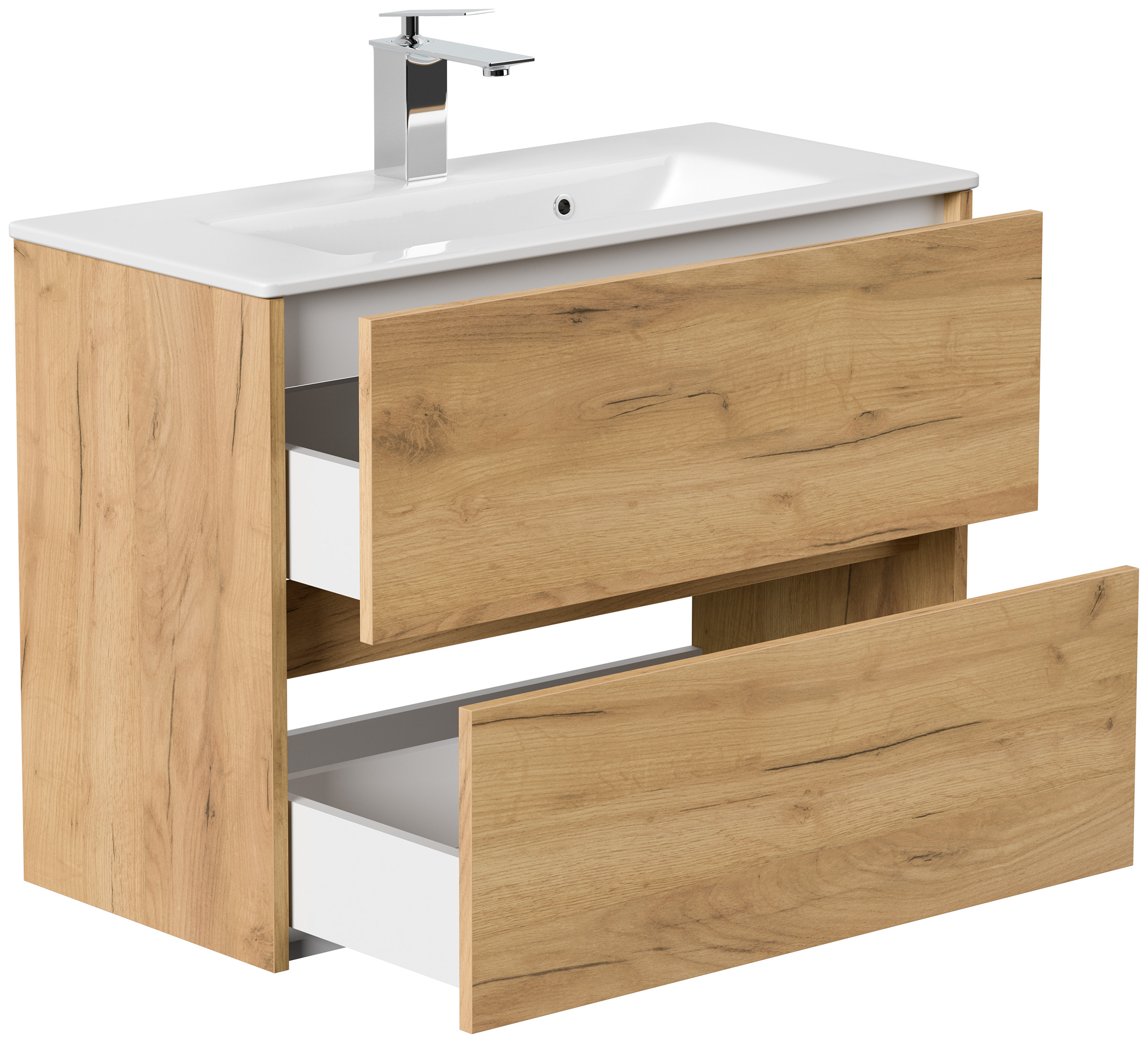 Badmöbel Taifun Slimline 80cm 2 grifflose SoftClose Auszüge eiche gold