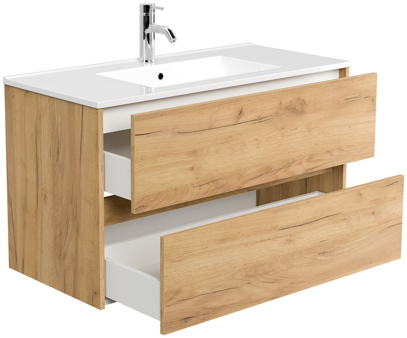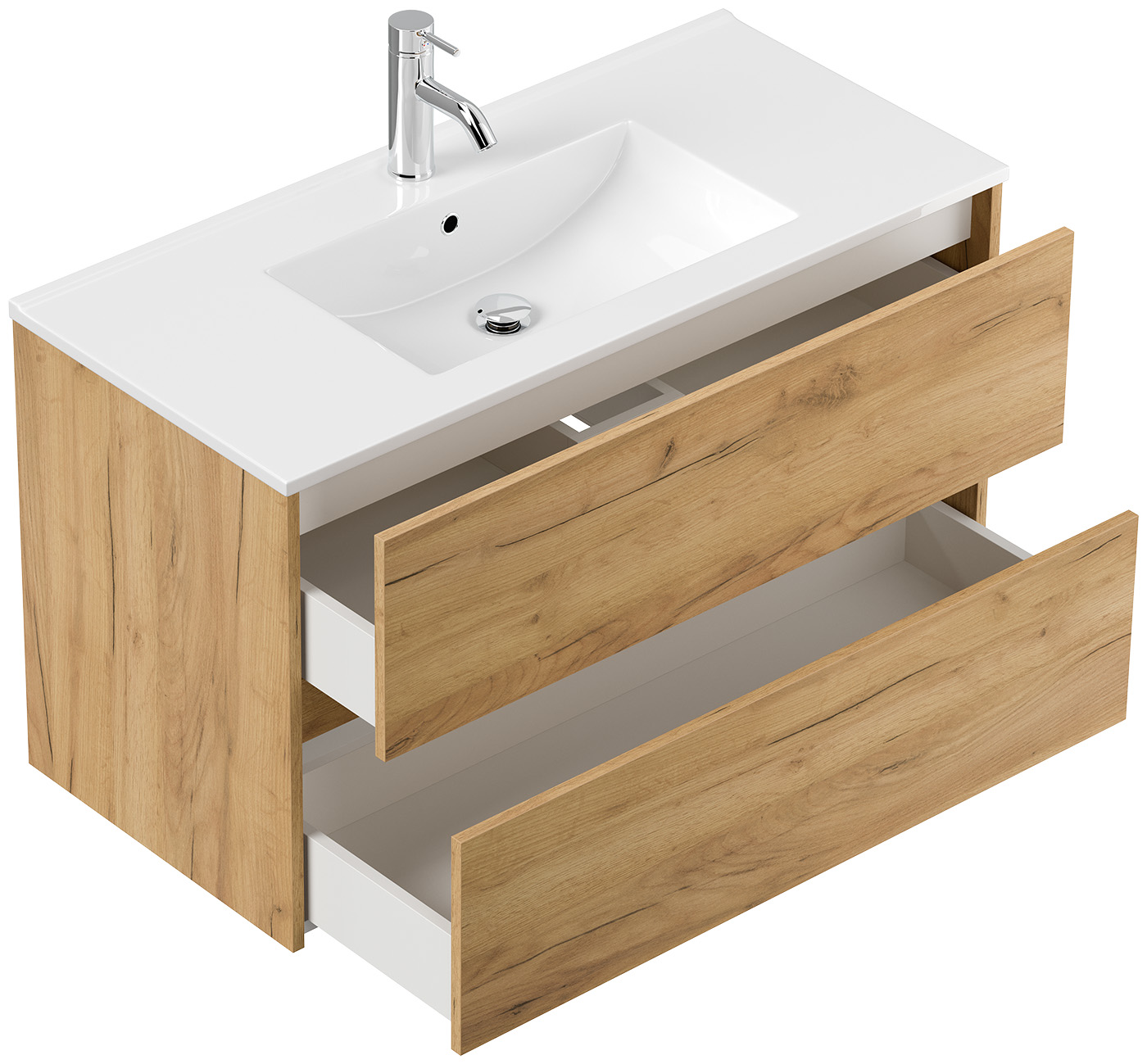 Badmöbel Taifun mit Waschtisch 100 cm 2 Greifraum SoftClose Auszüge eiche gold