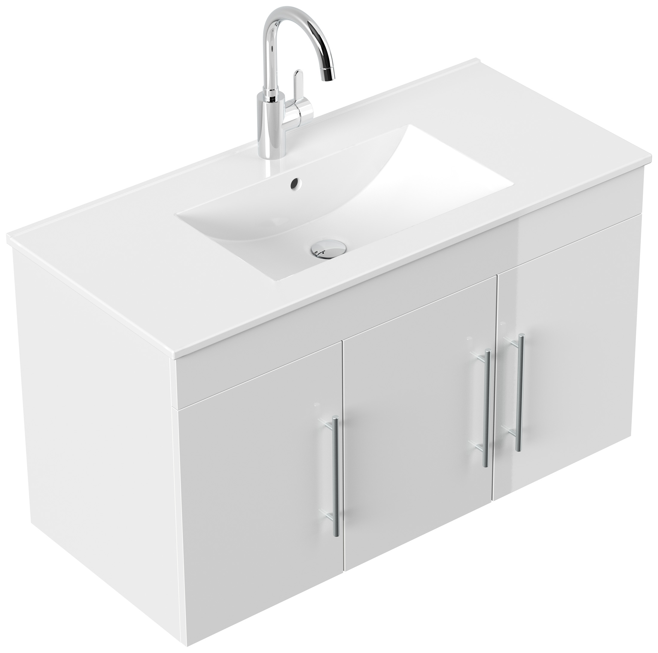 Badmöbel Venezia weiss hochglanz Waschtisch mit 3 Softclose Türen