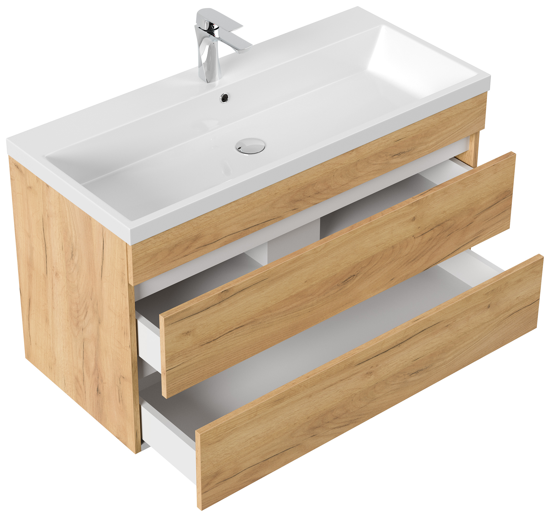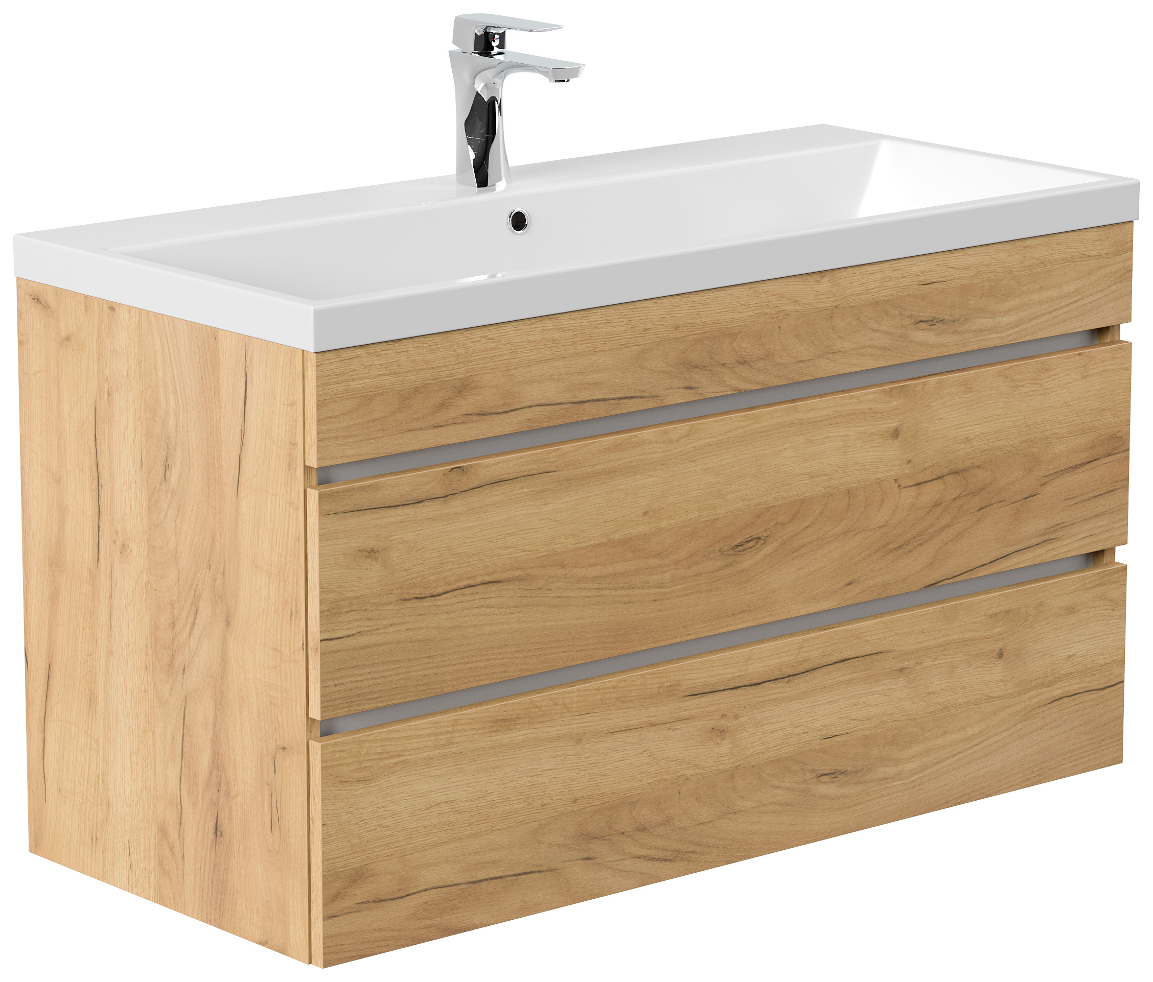 Badmöbel Via 100 SoftClose eiche gold mit grifflosen Schubladen