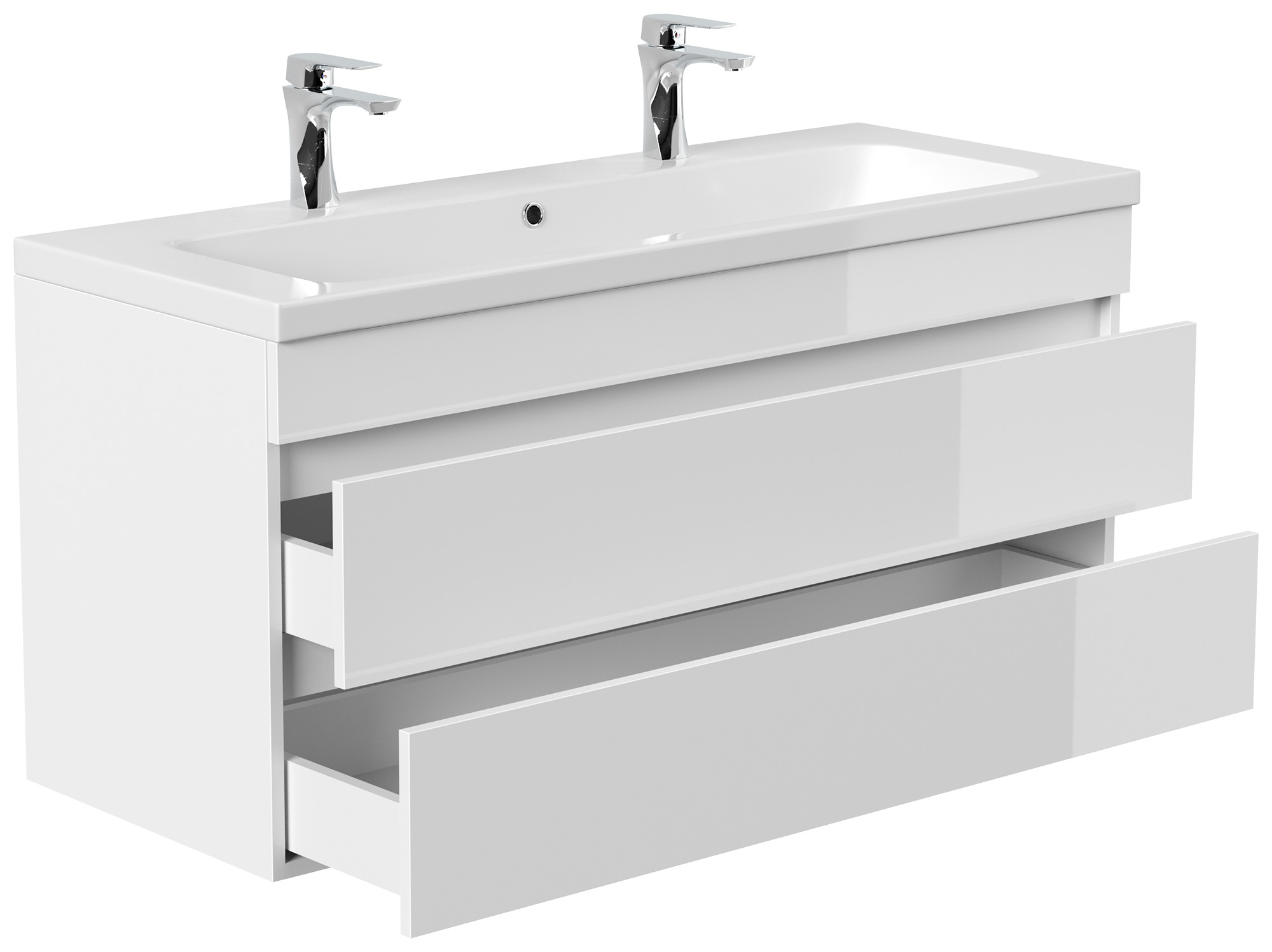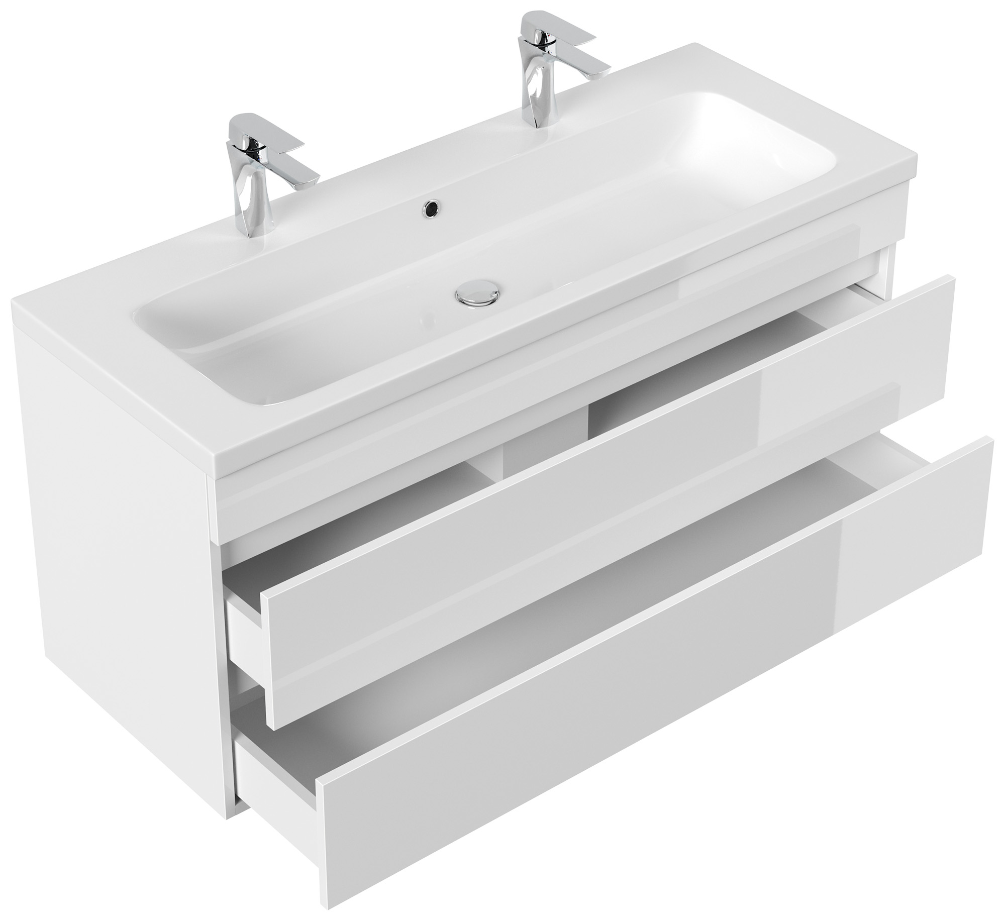 Badmöbel Via 120 Doppelbadmöbel weiss hochglanz mit grifflosen Schubladen