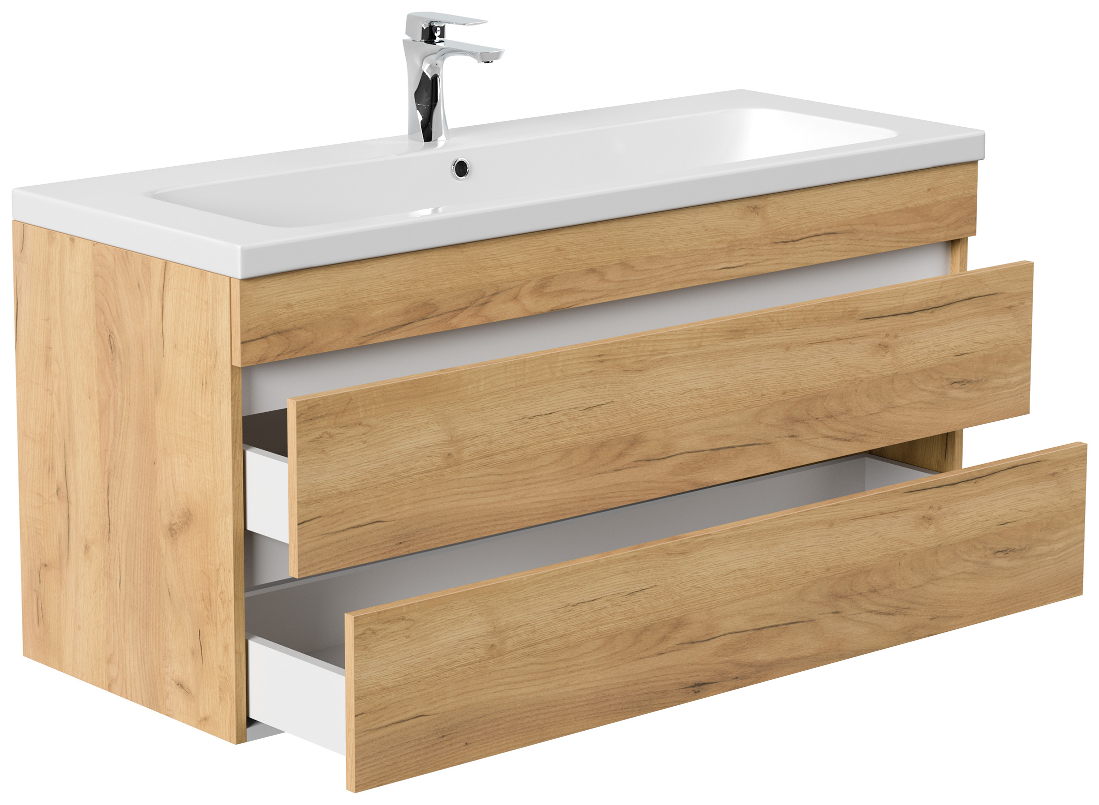 Badmöbel Via 120 SoftClose eiche gold mit grifflosen Schubladen