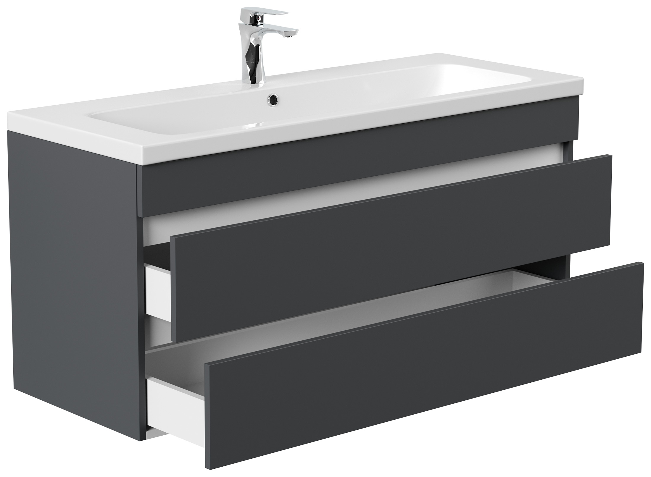 Badmöbel Via 120 SoftClose grafit mit grifflosen Schubladen