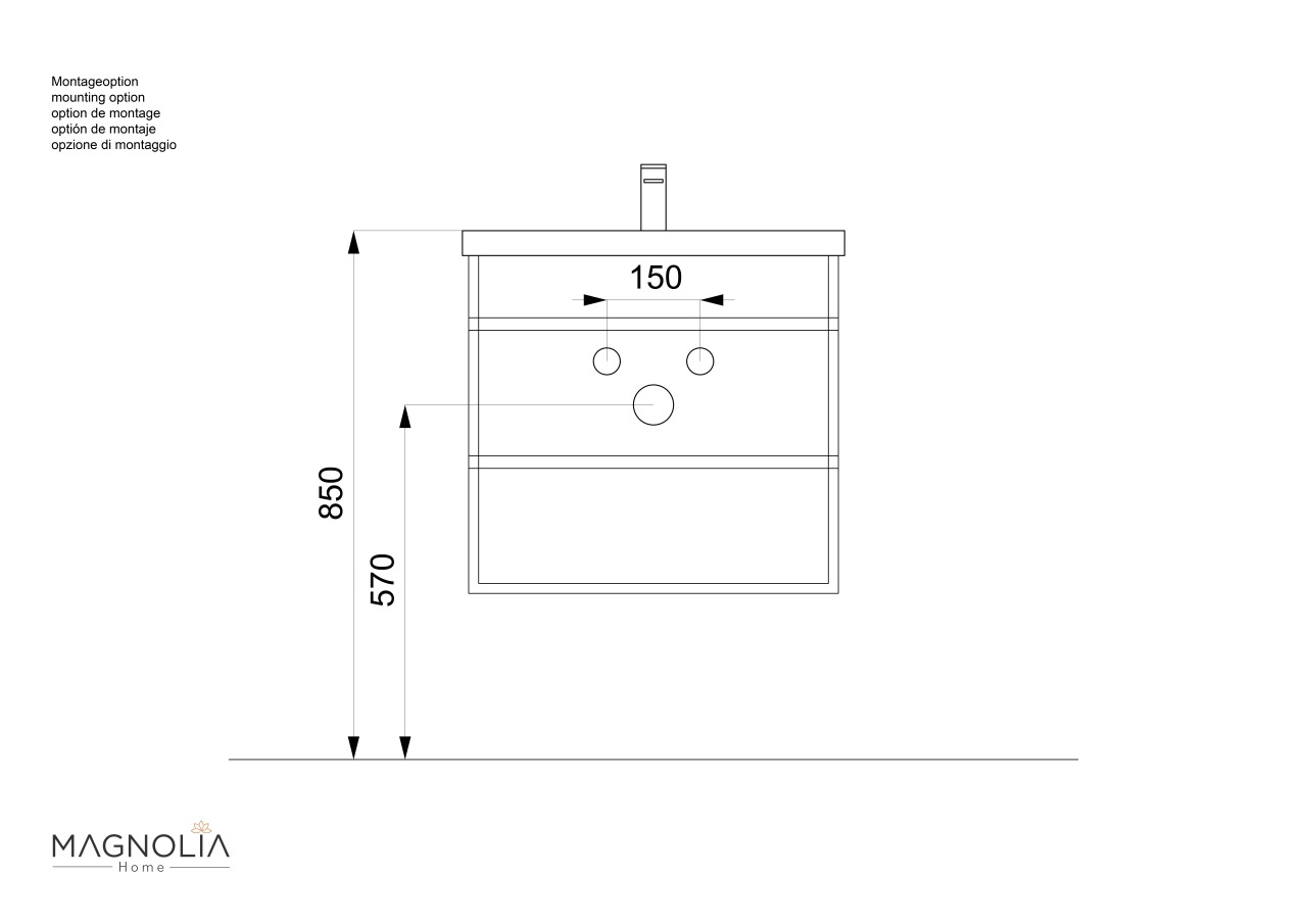 Die Ware wird zerlegt geliefert. Eine Aufbauanleitung liegt der Ware bei. Der Badunterschrank ist für die Wandmontage vorgesehen. Etwaiges Wandmontagematerial für die Aufhängung ist in der Lieferung nicht enthalten. Bitte verwenden Sie Schrauben und Dübel, die zu den Bedingungen bei Ihnen vor Ort passen. Das Waschbecken müssen Sie nicht extra an der Wand befestigen, sondern es wird auf den Unterschrank aufgesetzt. Die Montage wird mit einem Silikonstreifen zwischen Badmöbel und Waschbecken sowie Badezimmerwand optimiert. Der Anschluss für Ab- und Zulauf erfolgt wie üblich. Wir empfehlen, den Wasseranschluss von einer Fachfirma durchführen zu lassen.