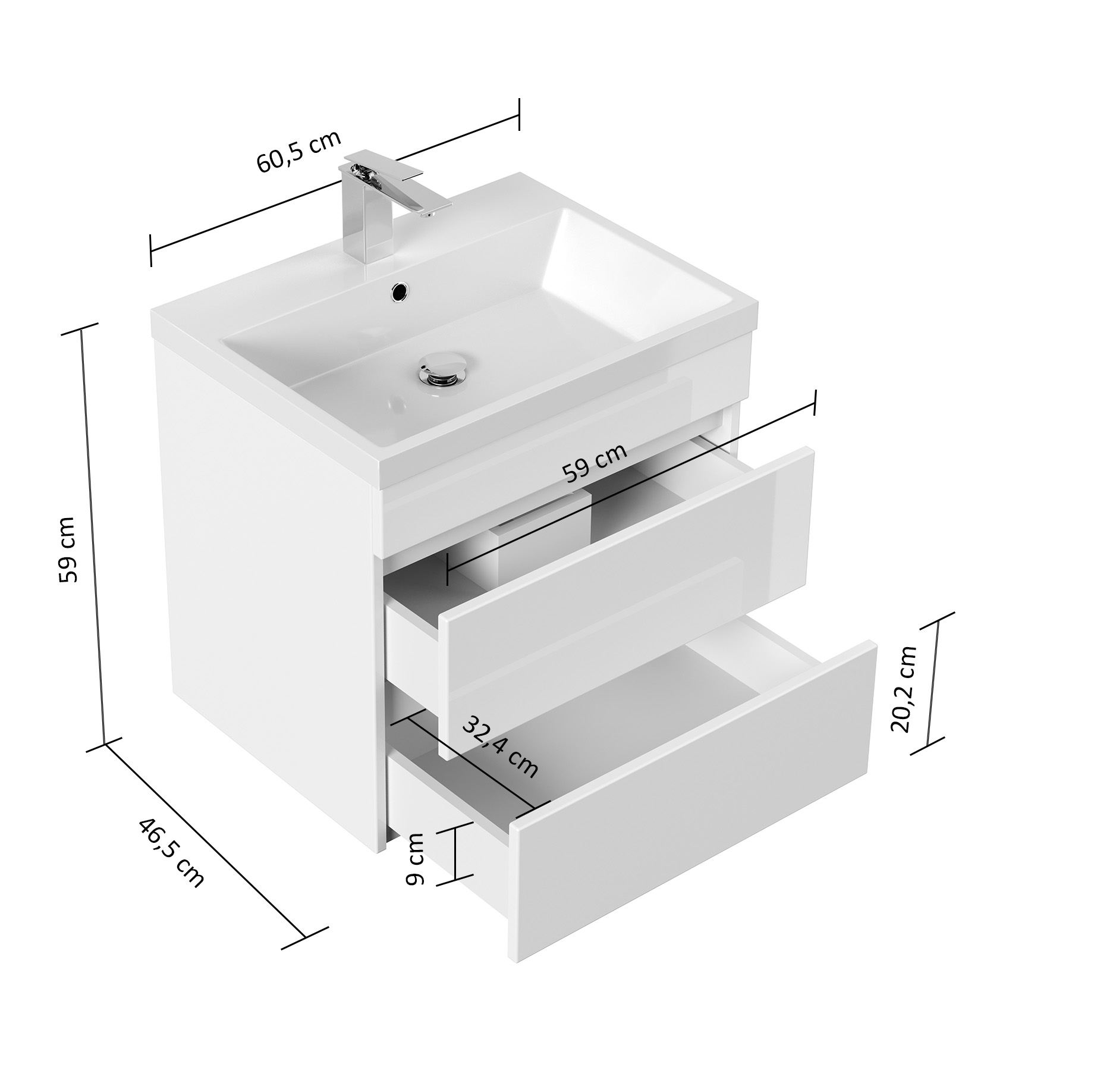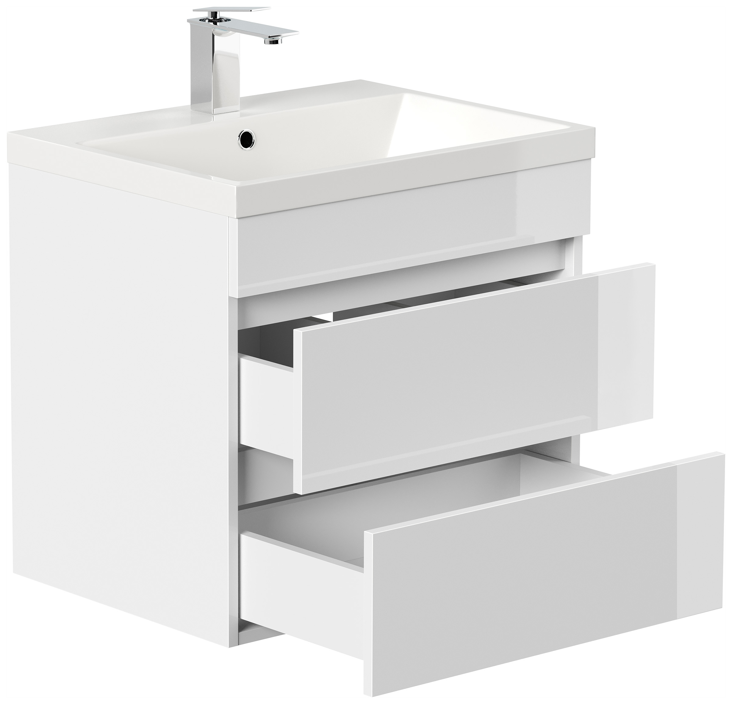Badmöbel Via 60 SoftClose weiss hochglanz mit grifflosen Schubladen