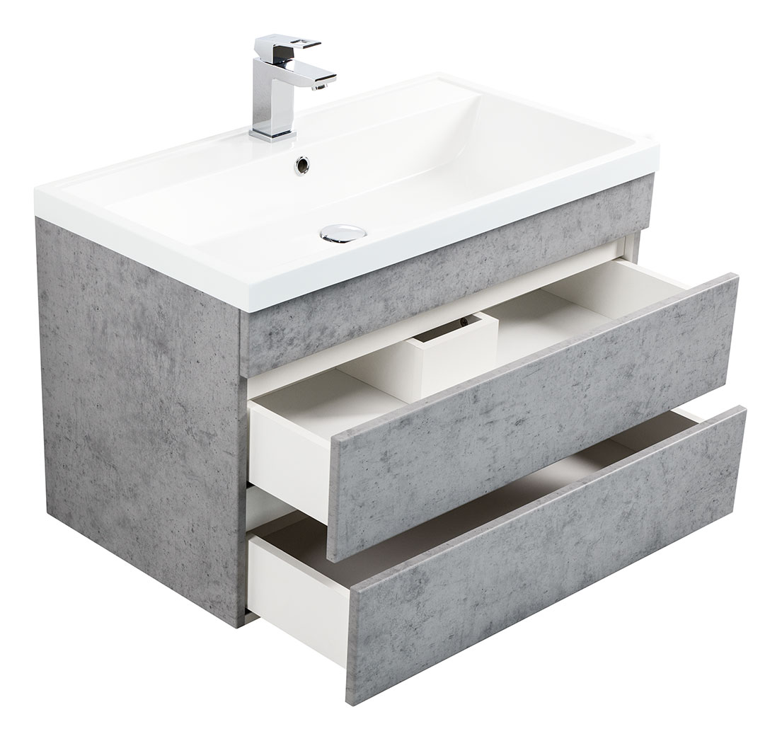 Badmöbel Via 80 SoftClose beton mit grifflosen Schubladen