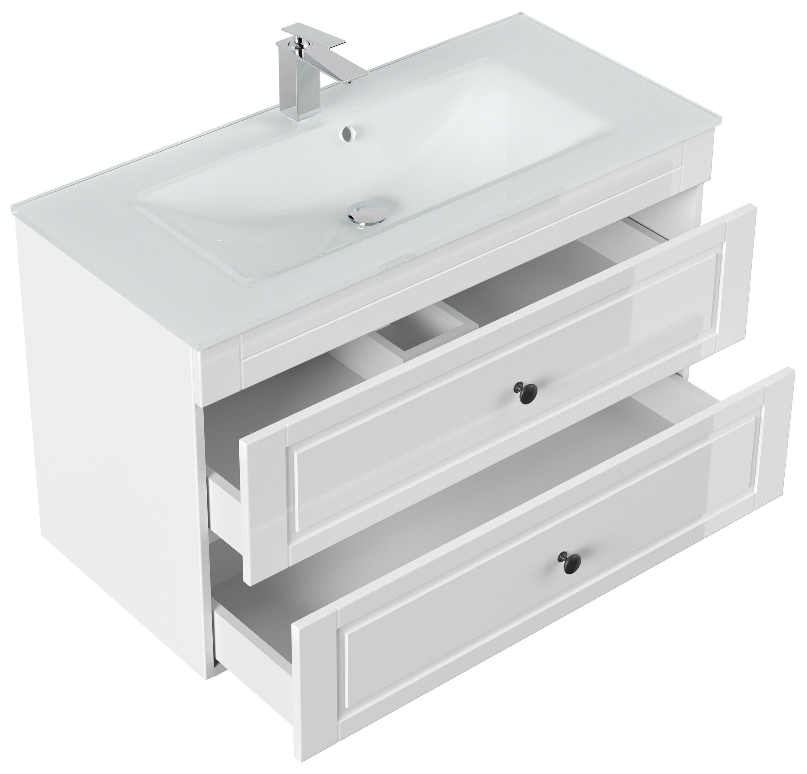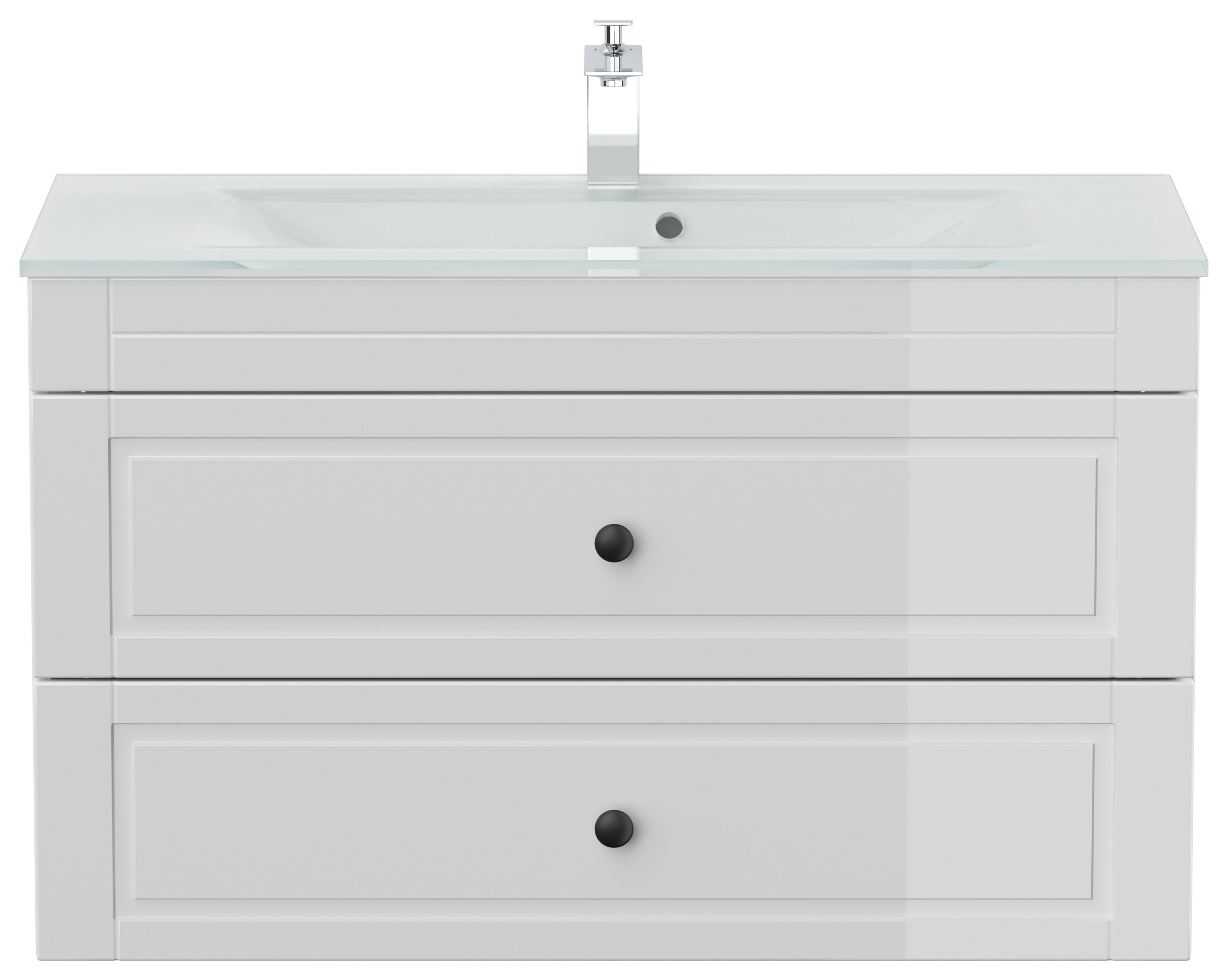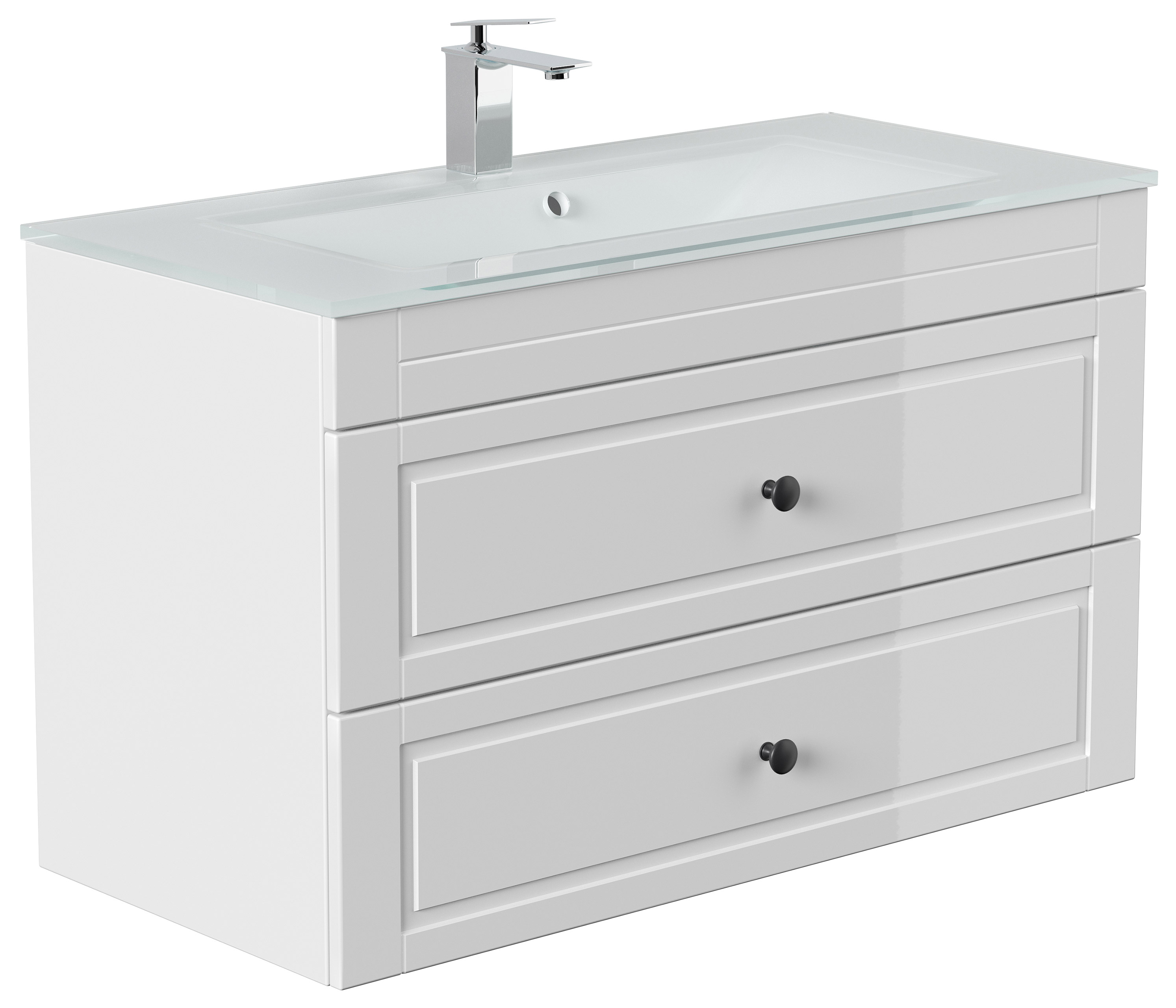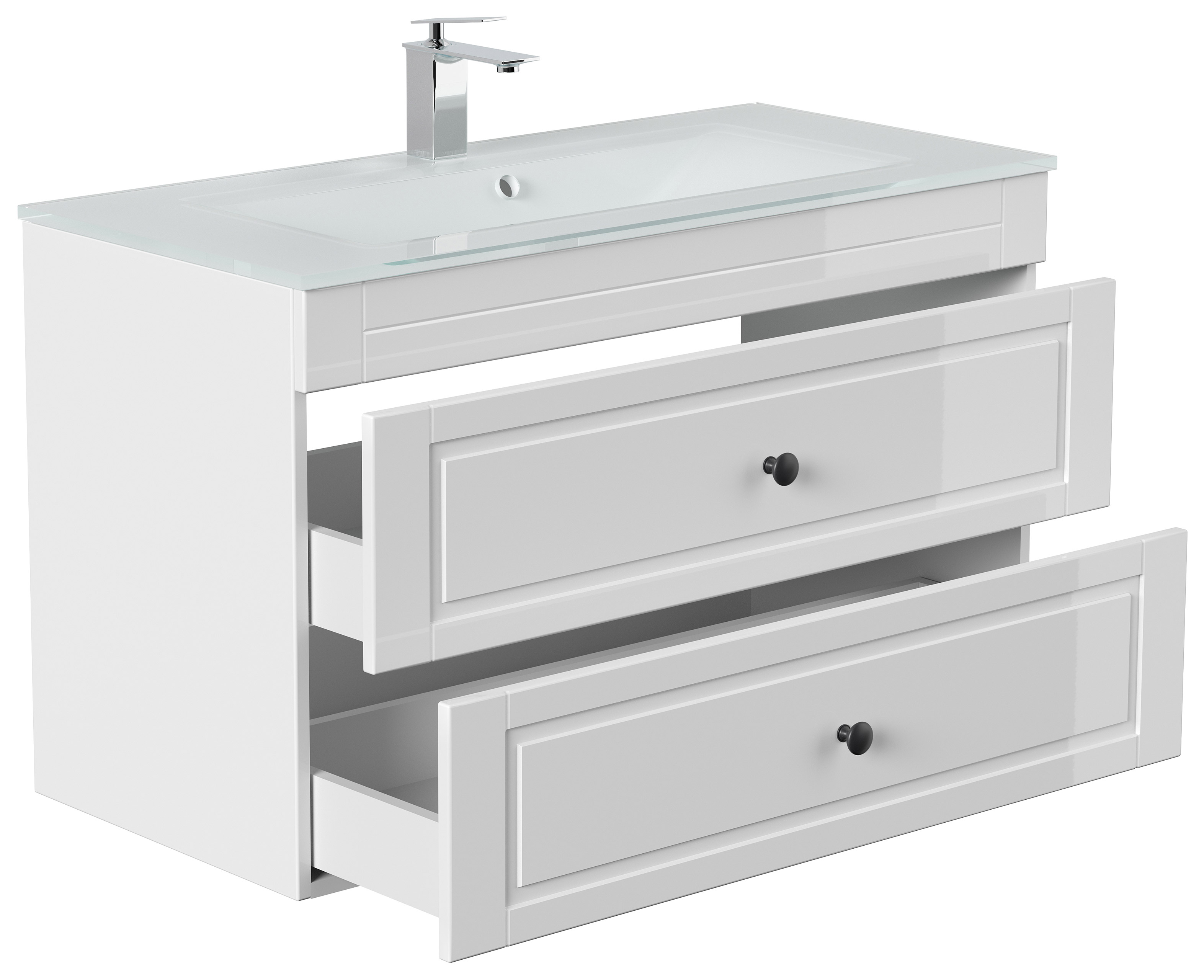Badmöbel Vitro 1000 Cottage Glaswaschbecken SoftClose weiss hochglanz
