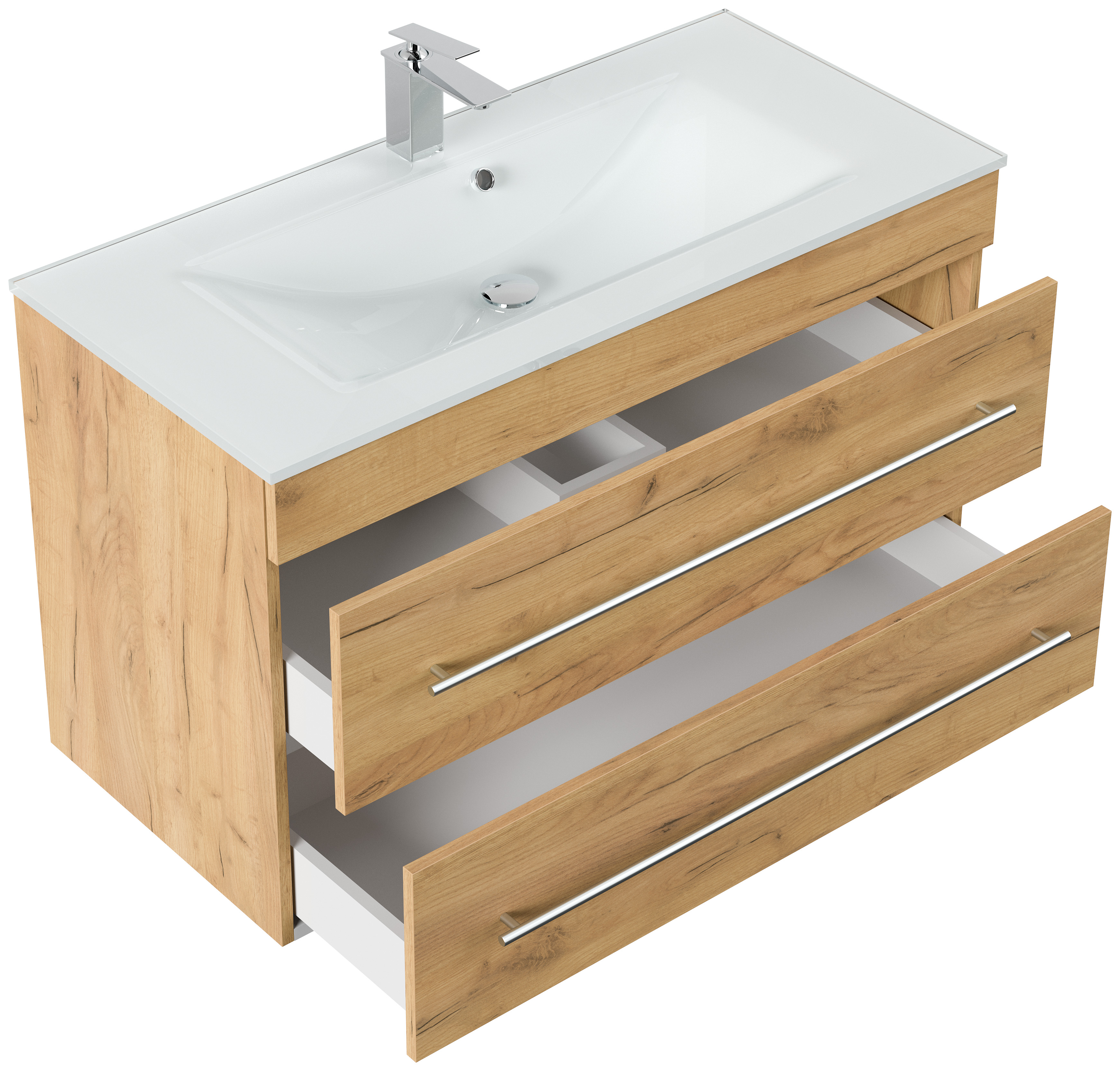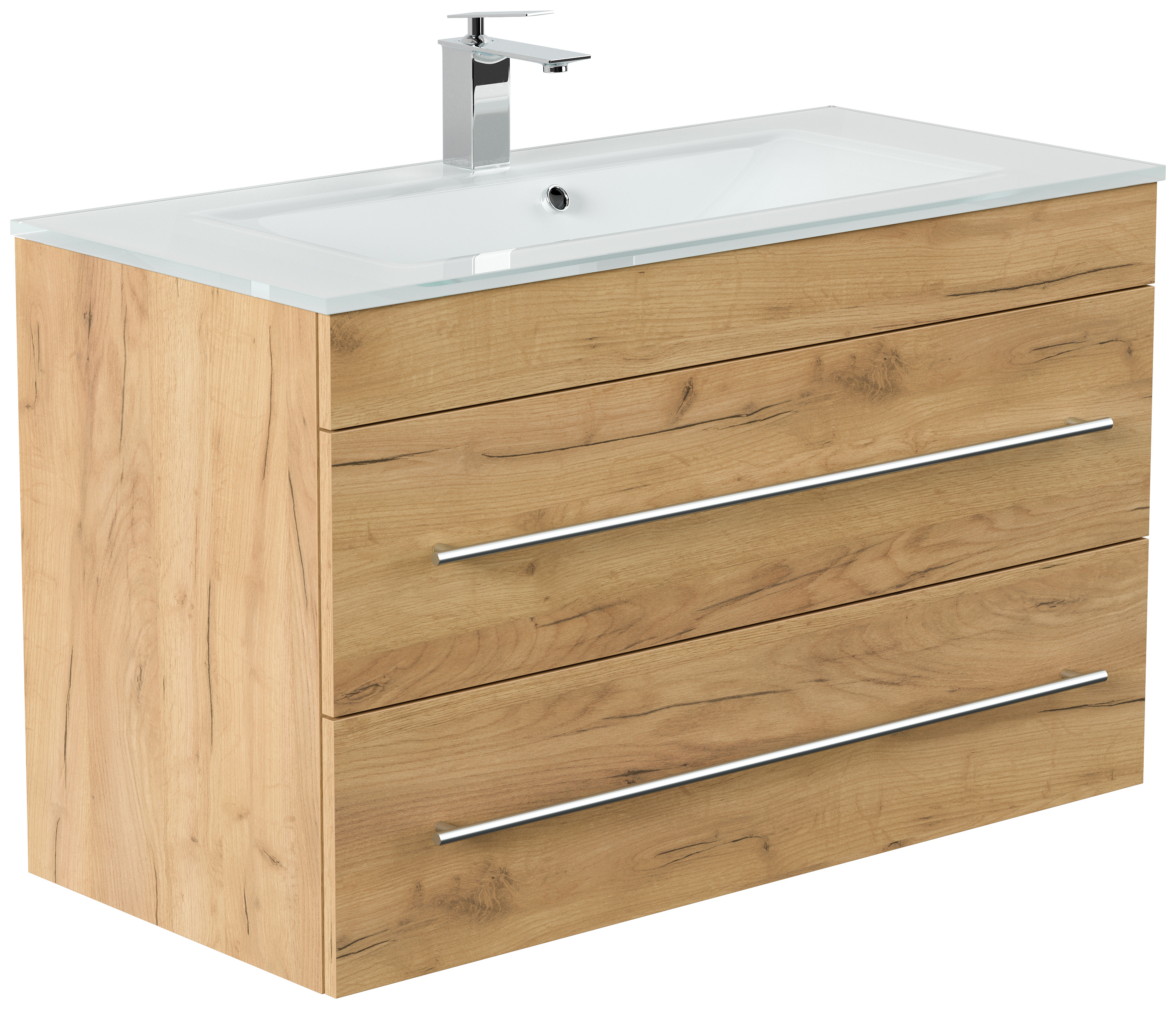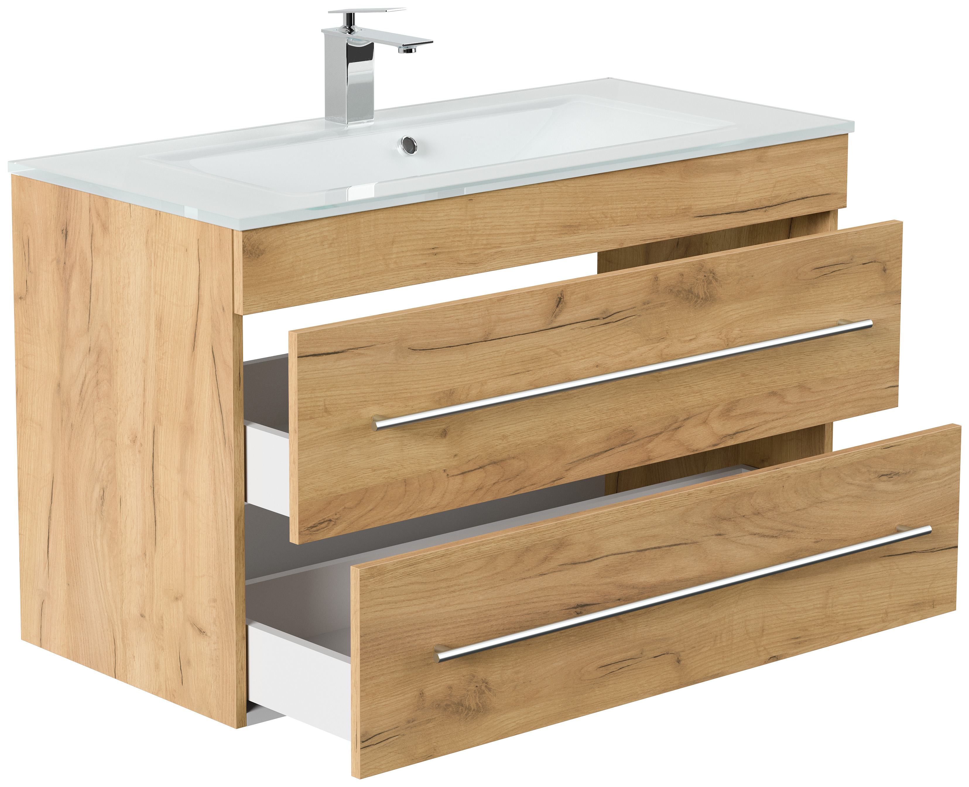Badmöbel Vitro 1000 mit Glaswaschbecken SoftClose eiche gold