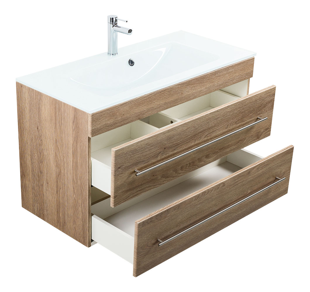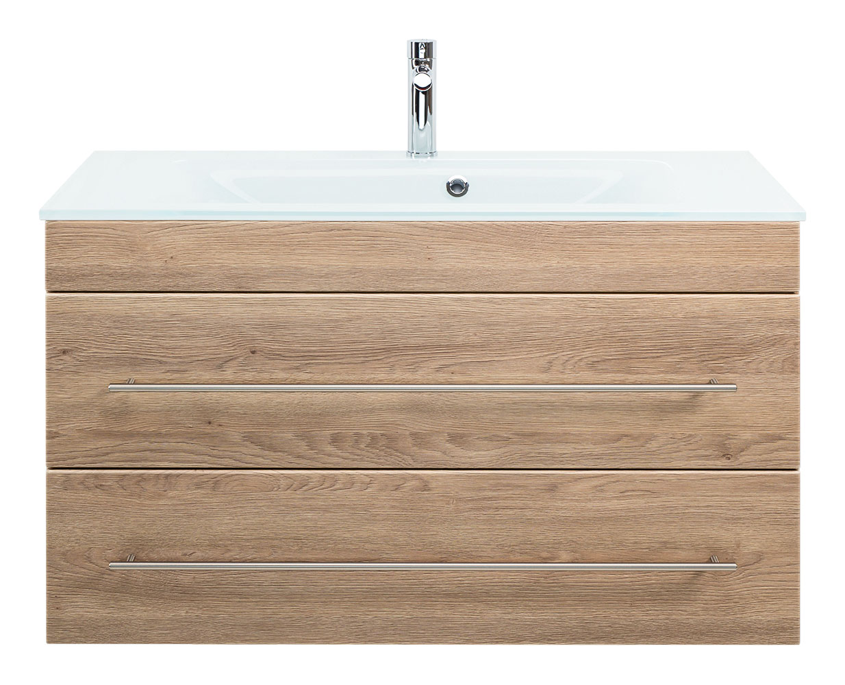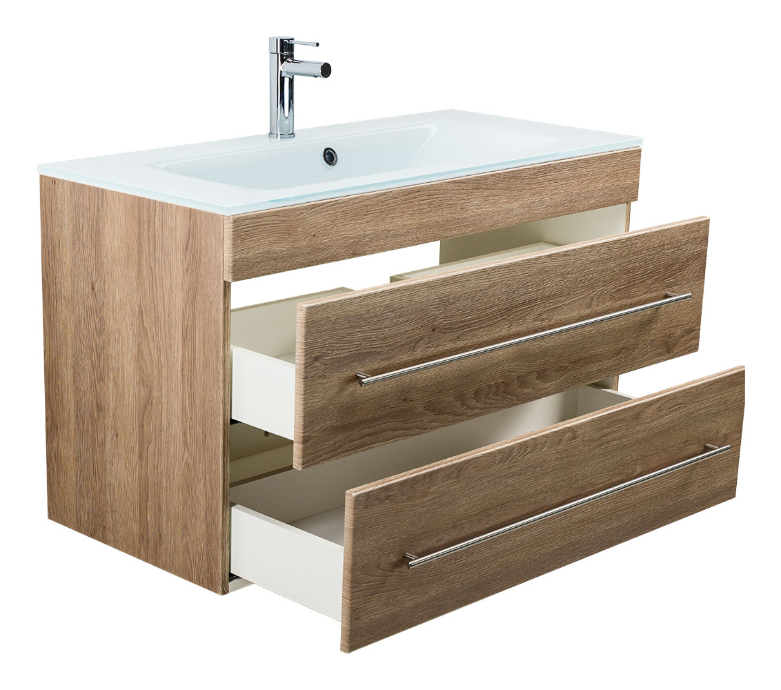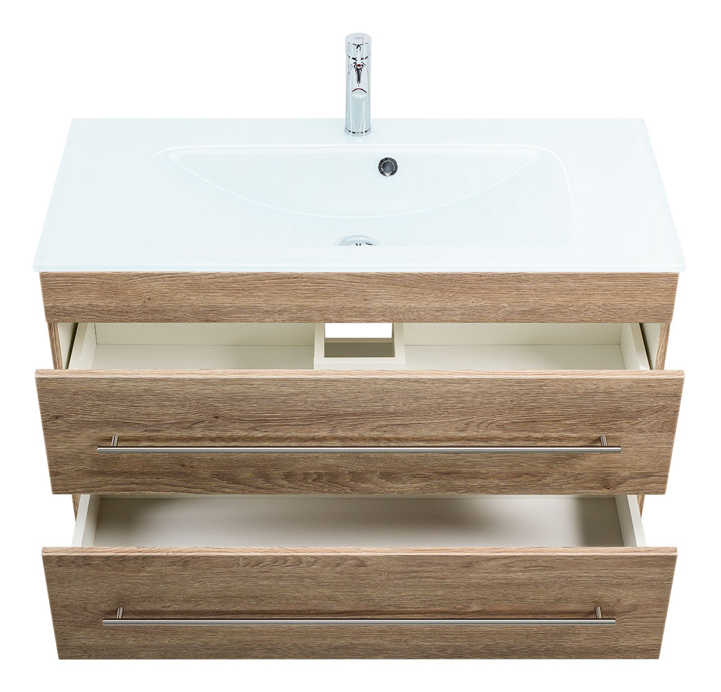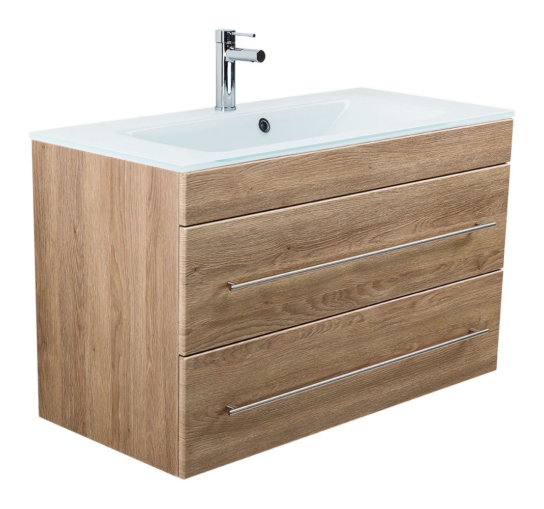Badmöbel Vitro 1000 mit Glaswaschbecken SoftClose eiche hell