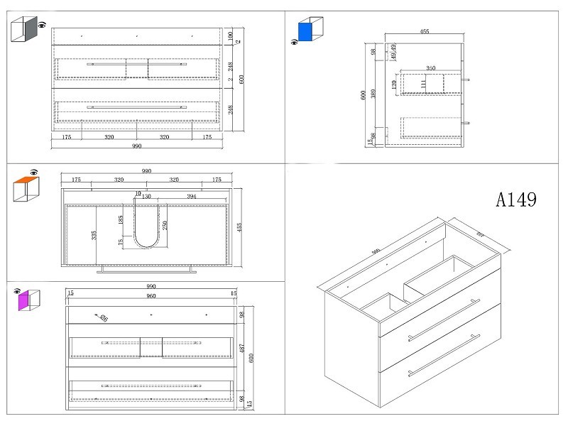1 Unterschrank mit 2 Soft-Close Schubladen,1 Glaswaschbecken mit Überlauf (etwas seitlich versetzt).
