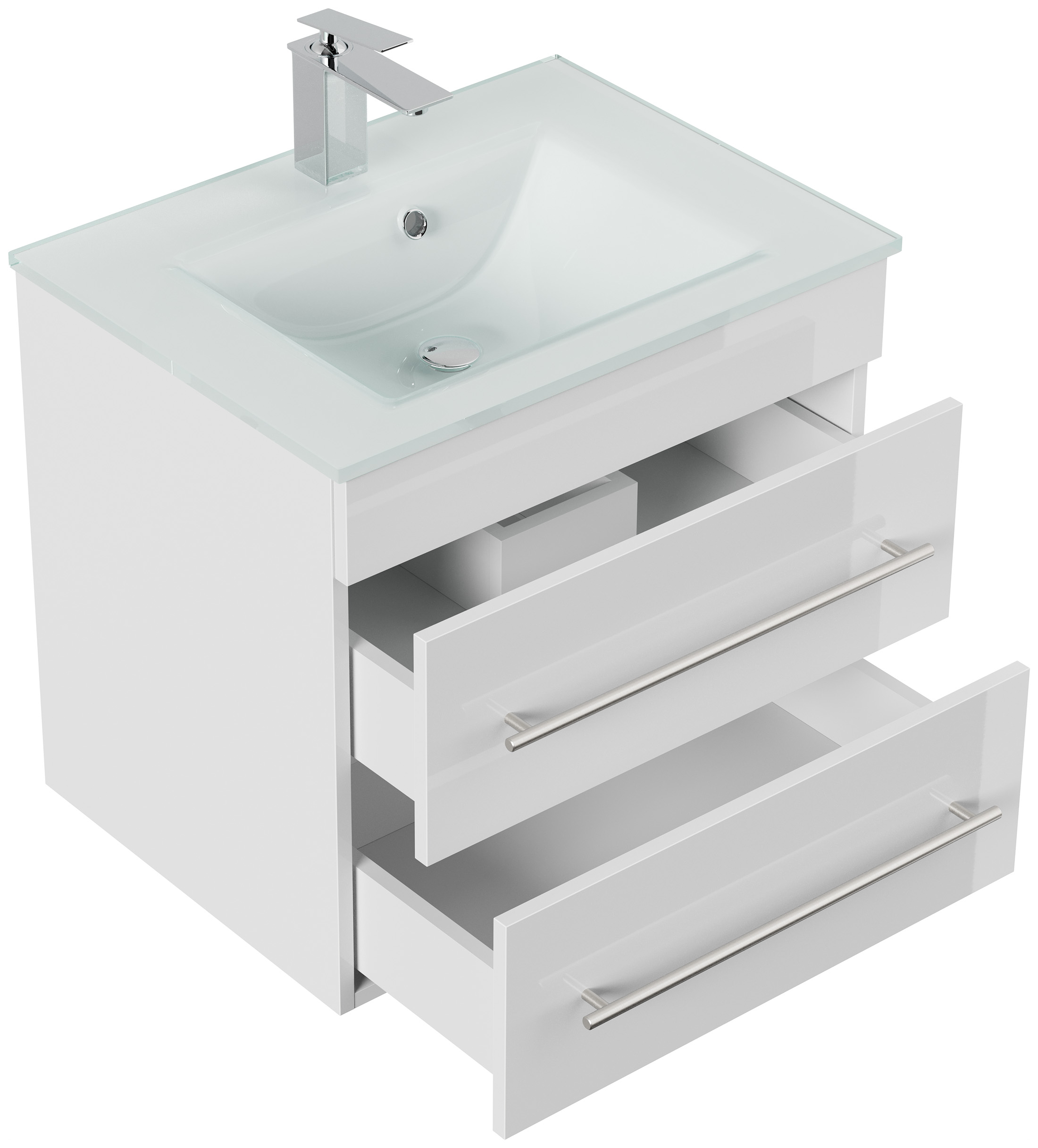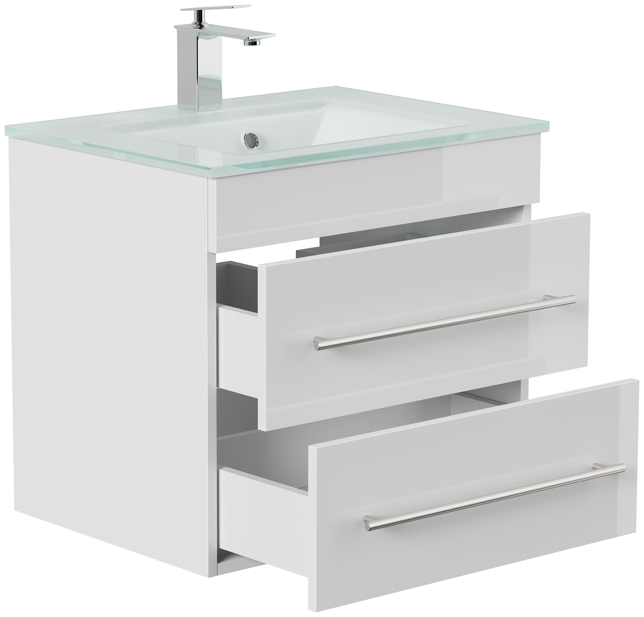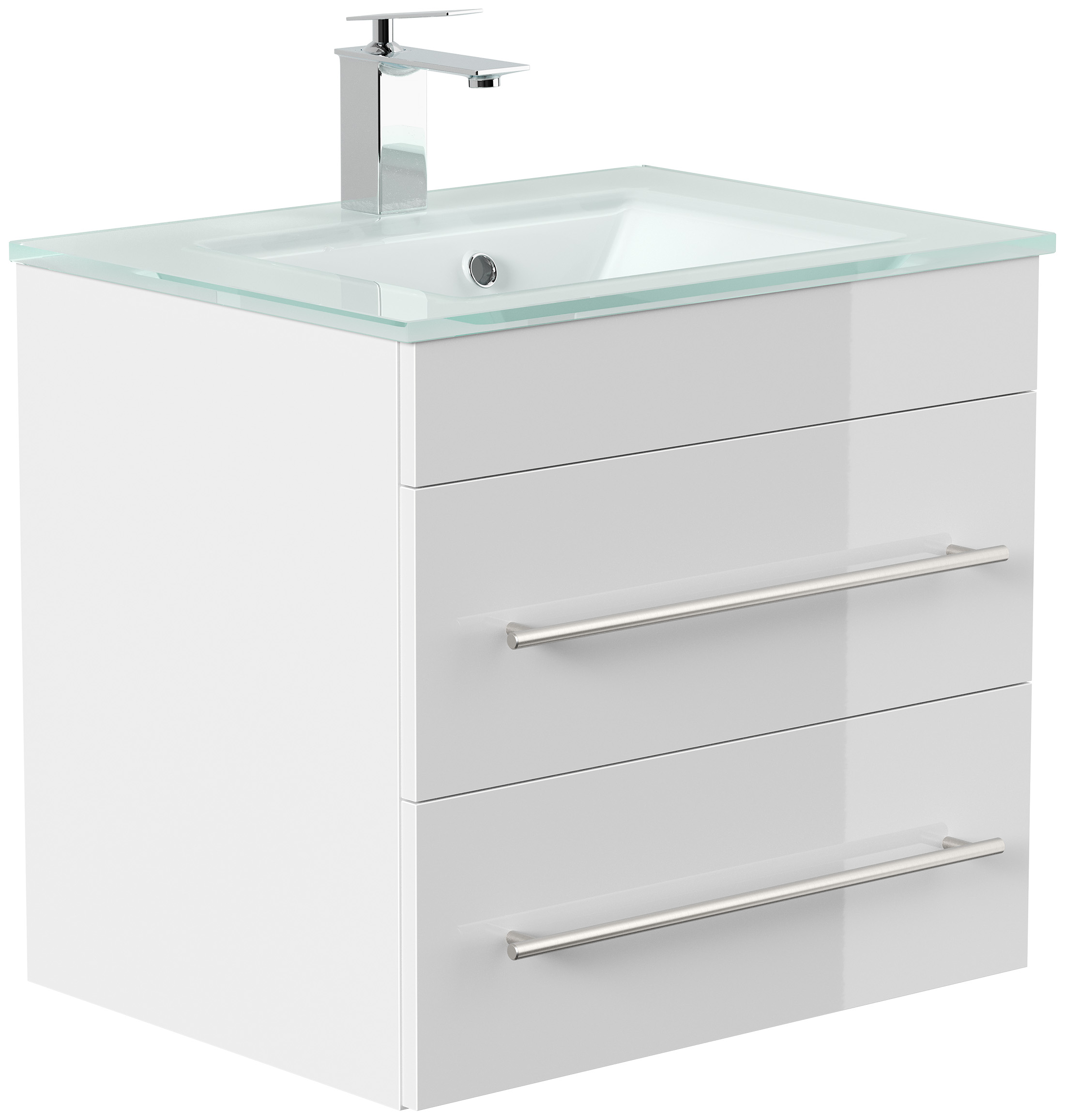 Badmöbel Vitro 60 inkl. Glasbecken SoftClose weiss hochglanz