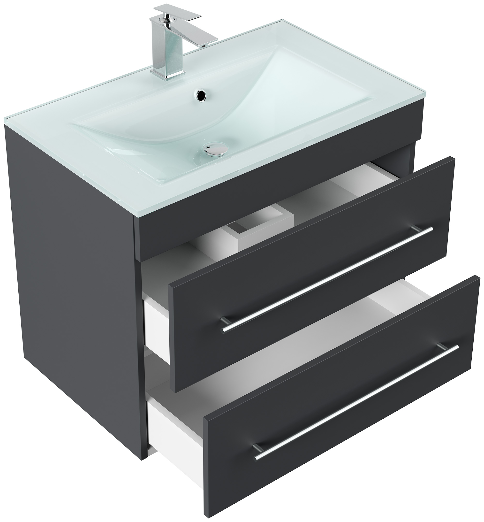 Badmöbel Vitro 750 mit Glaswaschbecken SoftClose grafit