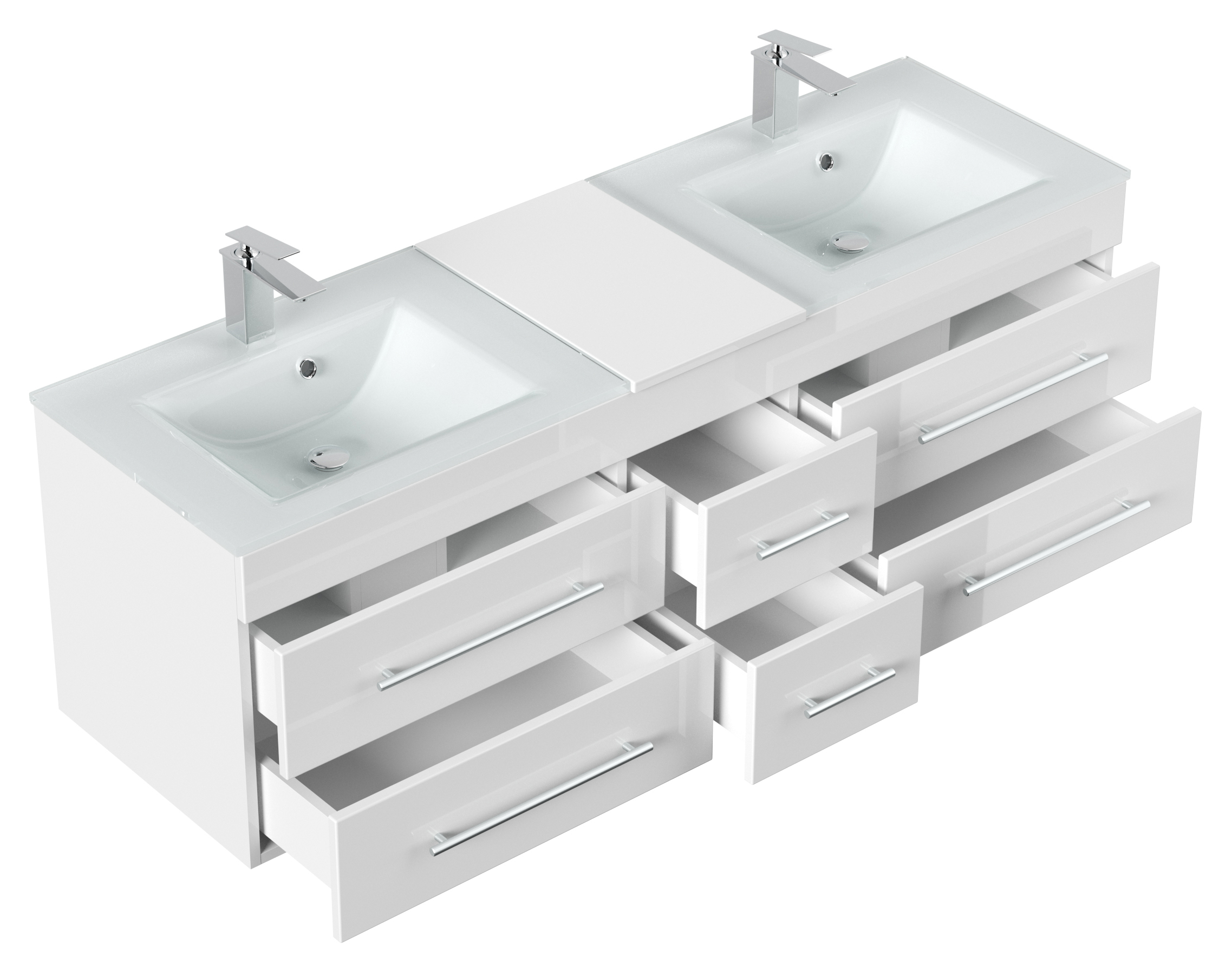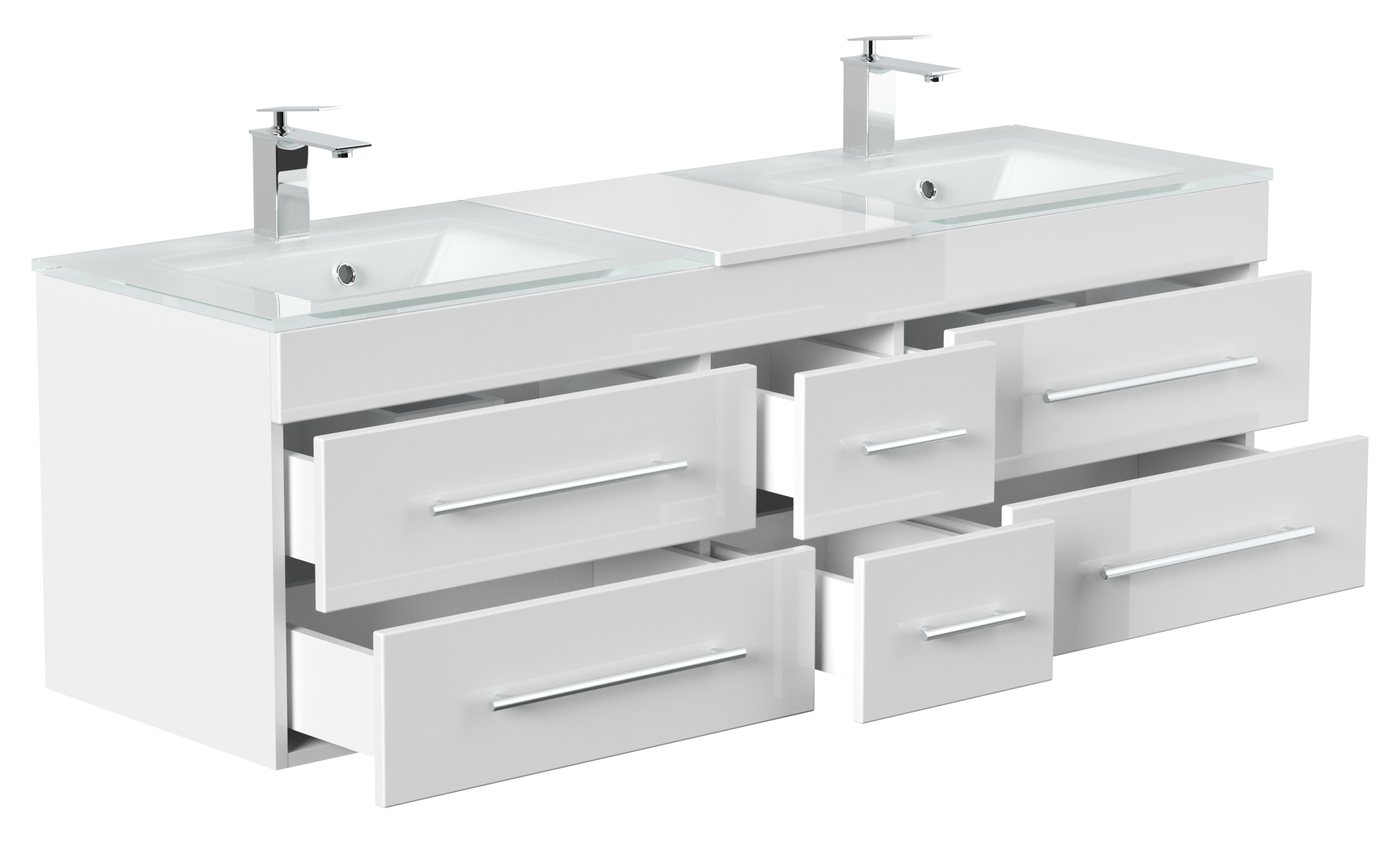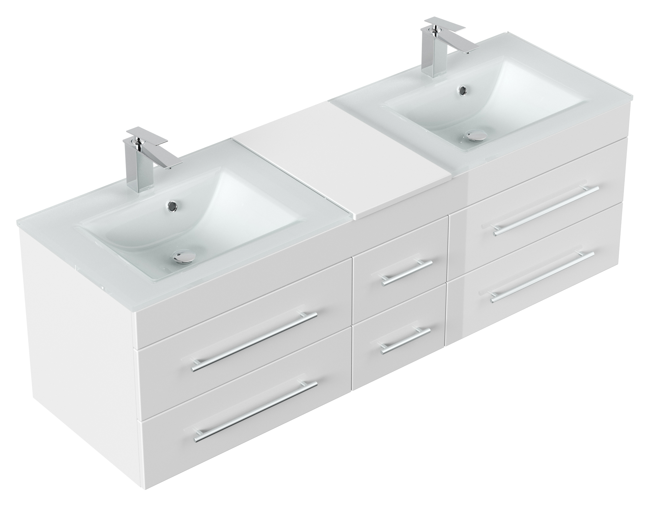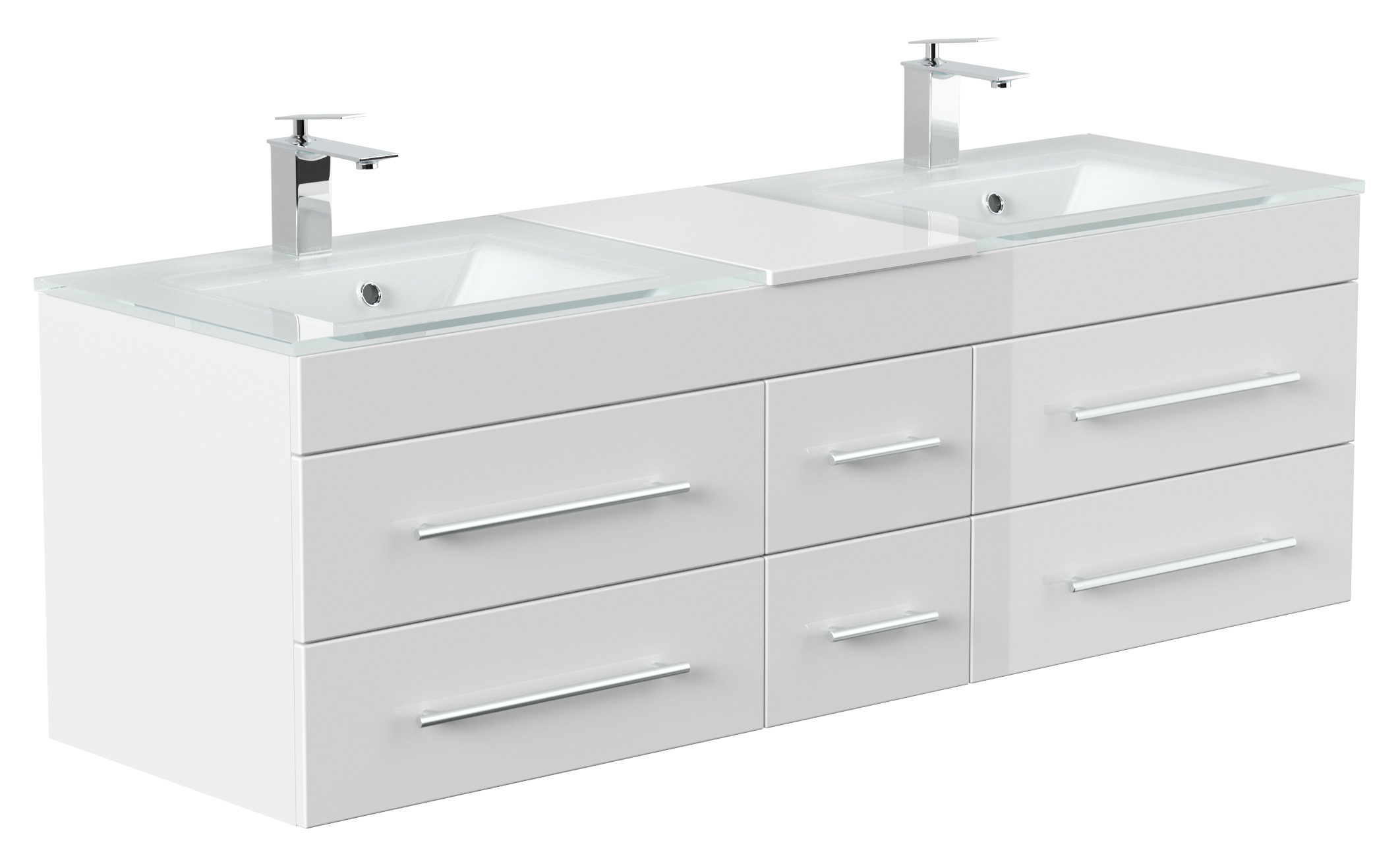 Badmöbel Vitro XL mit Doppel-Glasbecken SoftClose weiss hochglanz