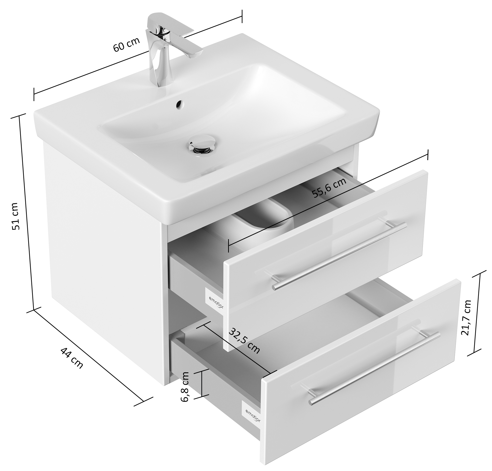 Badmöbel Unterschrank mit Softclose Schublade/n und Vollauszug (B/H/T) 56/45/44,4 cm,