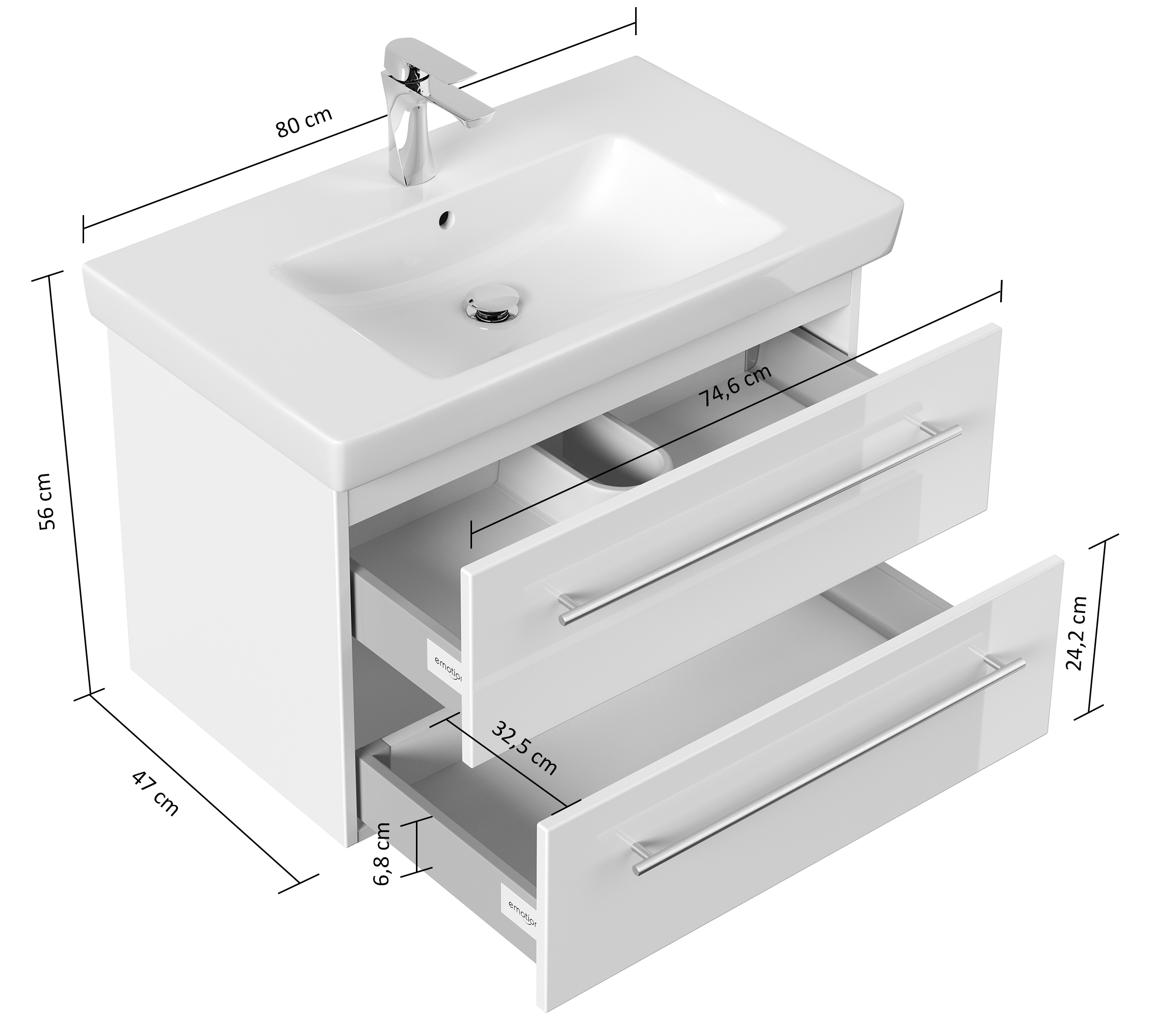 In diesem Premium-Segment ist zusätzlich die Vormontage des Waschtischunterschranks gratis enthalten. Der Waschtischunterschrank wird bereits fertig montiert geliefert. Einfach bequem auspacken und aufhängen.