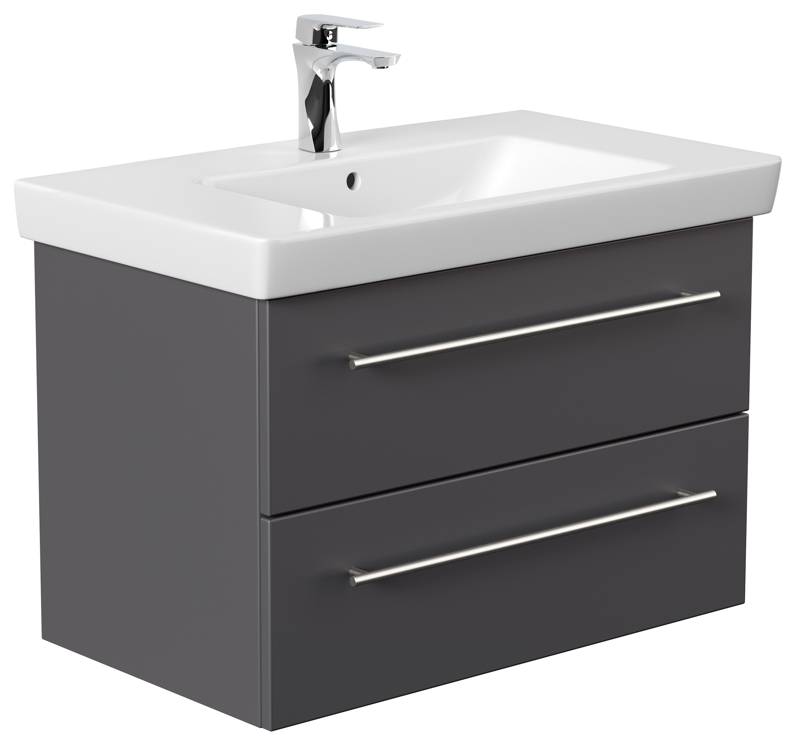 Badmöbel mit Villeroy & Boch Subway 2.0 Waschbecken 80 cm SoftClose anthrazit