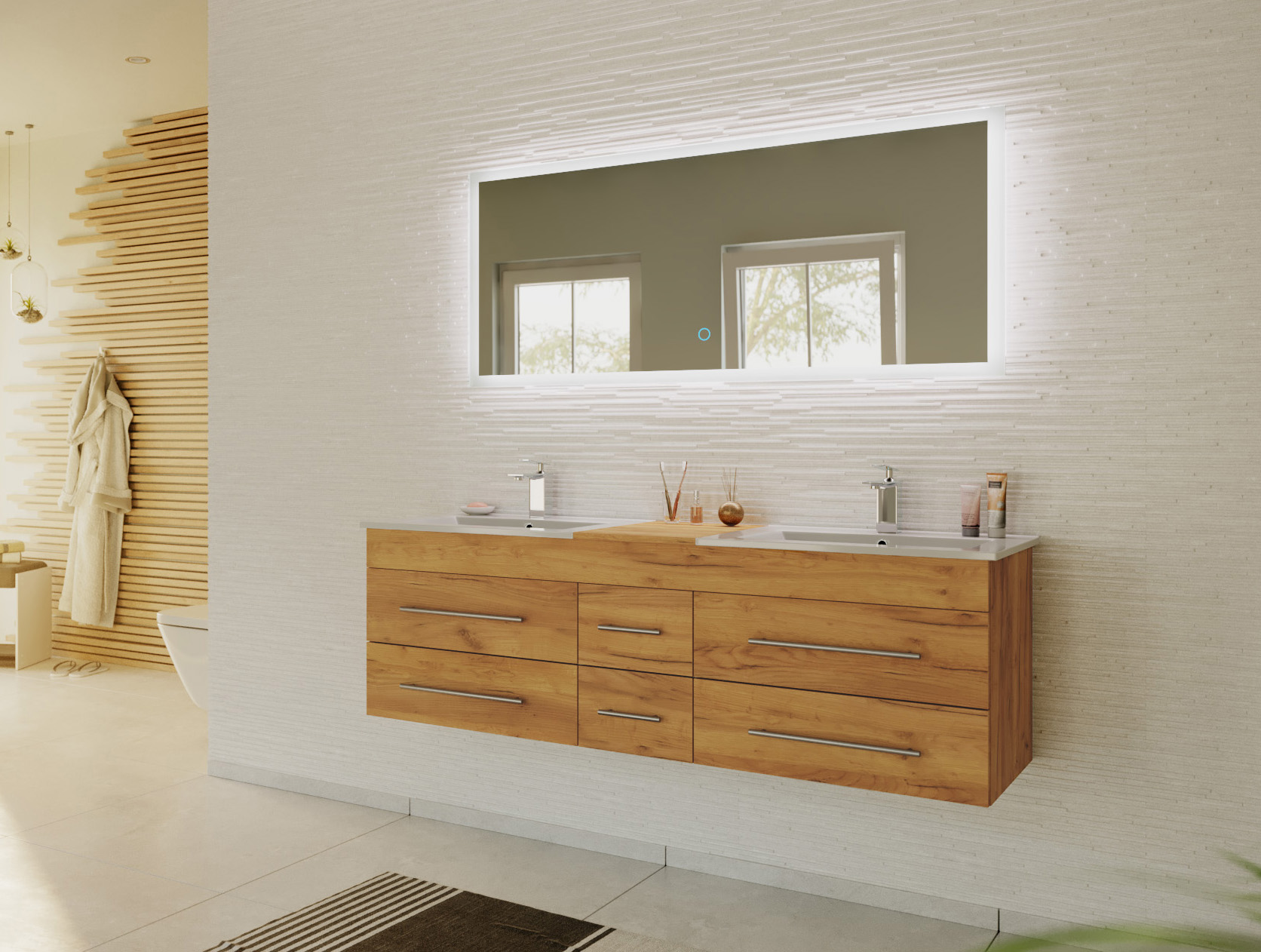 Badmöbelset Roma XL 2-teilig mit LED Spiegel eiche gold