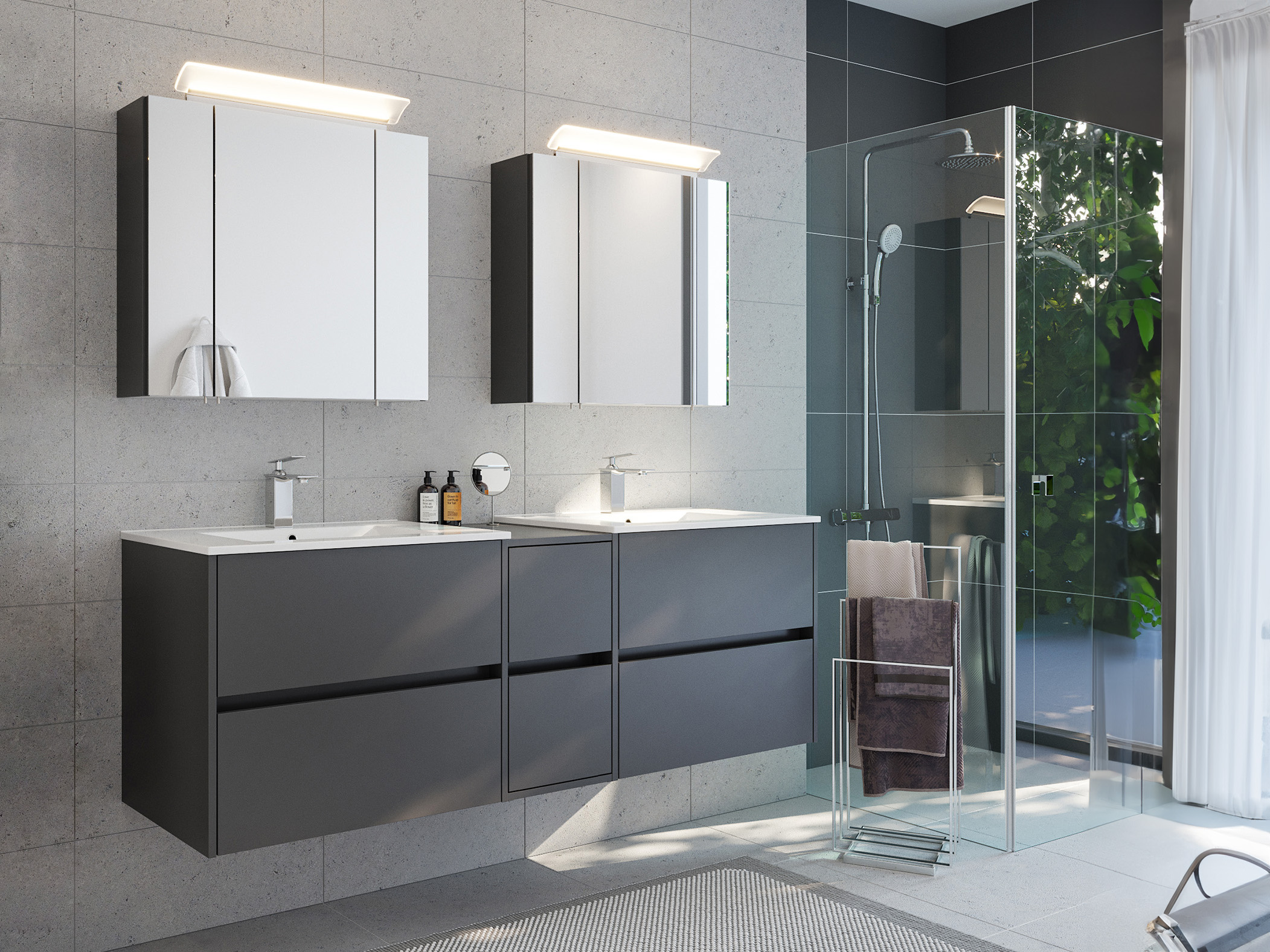 Badmöbelset Taifun 170cm 3tlg mit 2x Spiegelschrank grafit