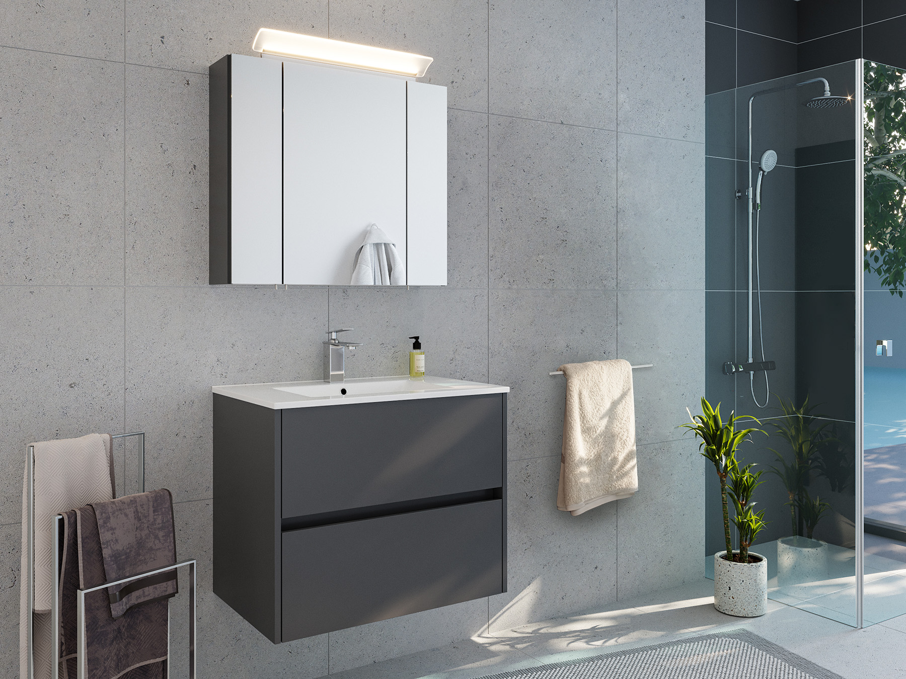 Badmöbelset Taifun 70cm 2tlg mit Spiegelschrank grafit