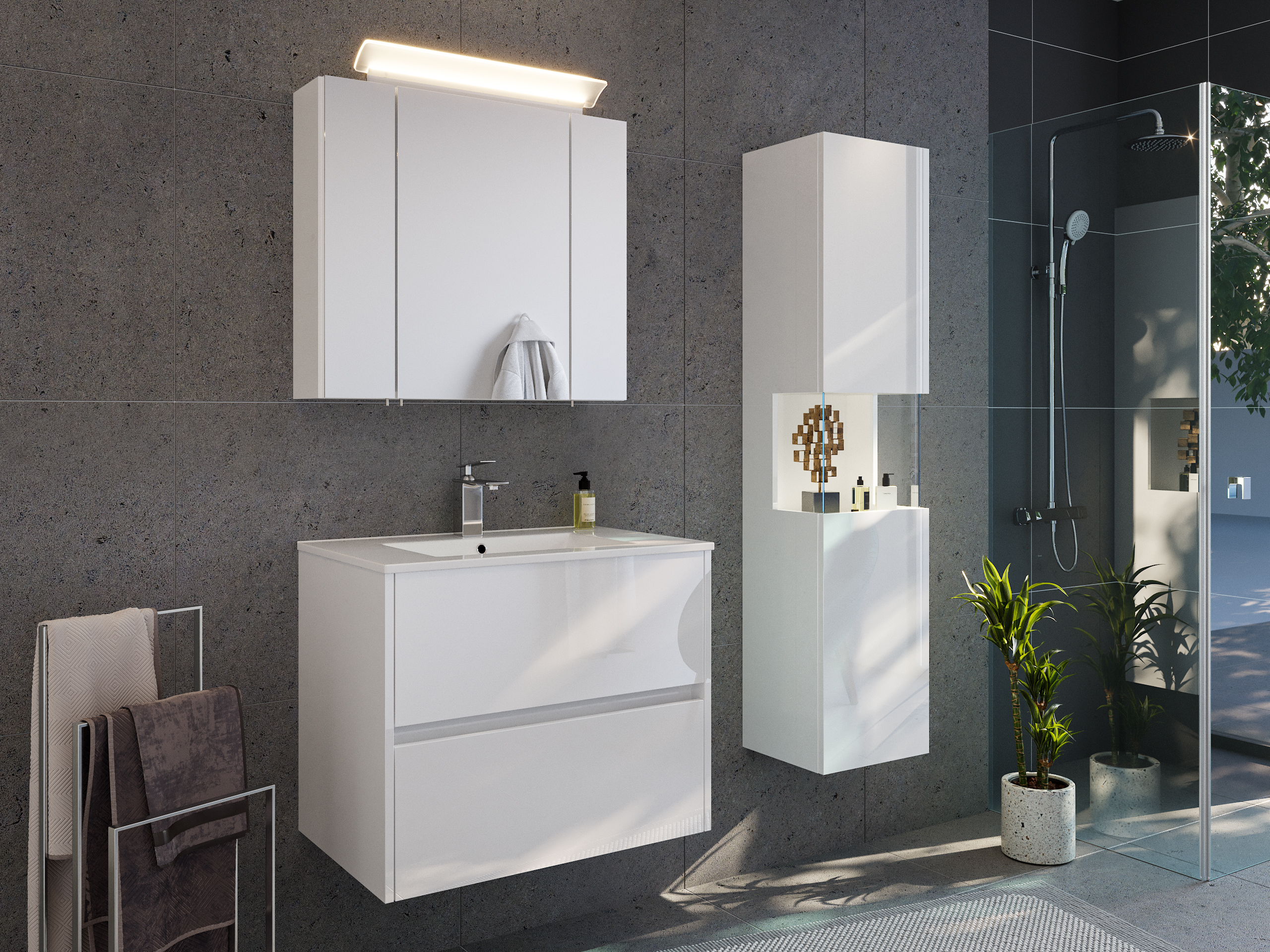 Badmöbelset Taifun 70cm 3tlg mit Spiegelschrank & Seitenschrank weiß Hgl
