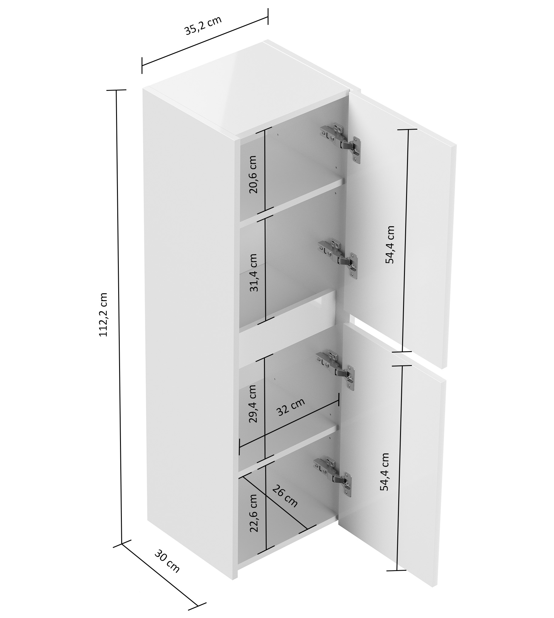 | Lieferumfang | Waschtischunterschrank, Waschbecken, Spiegelschrank, 2x Seitenschrank, Montageanleitung |