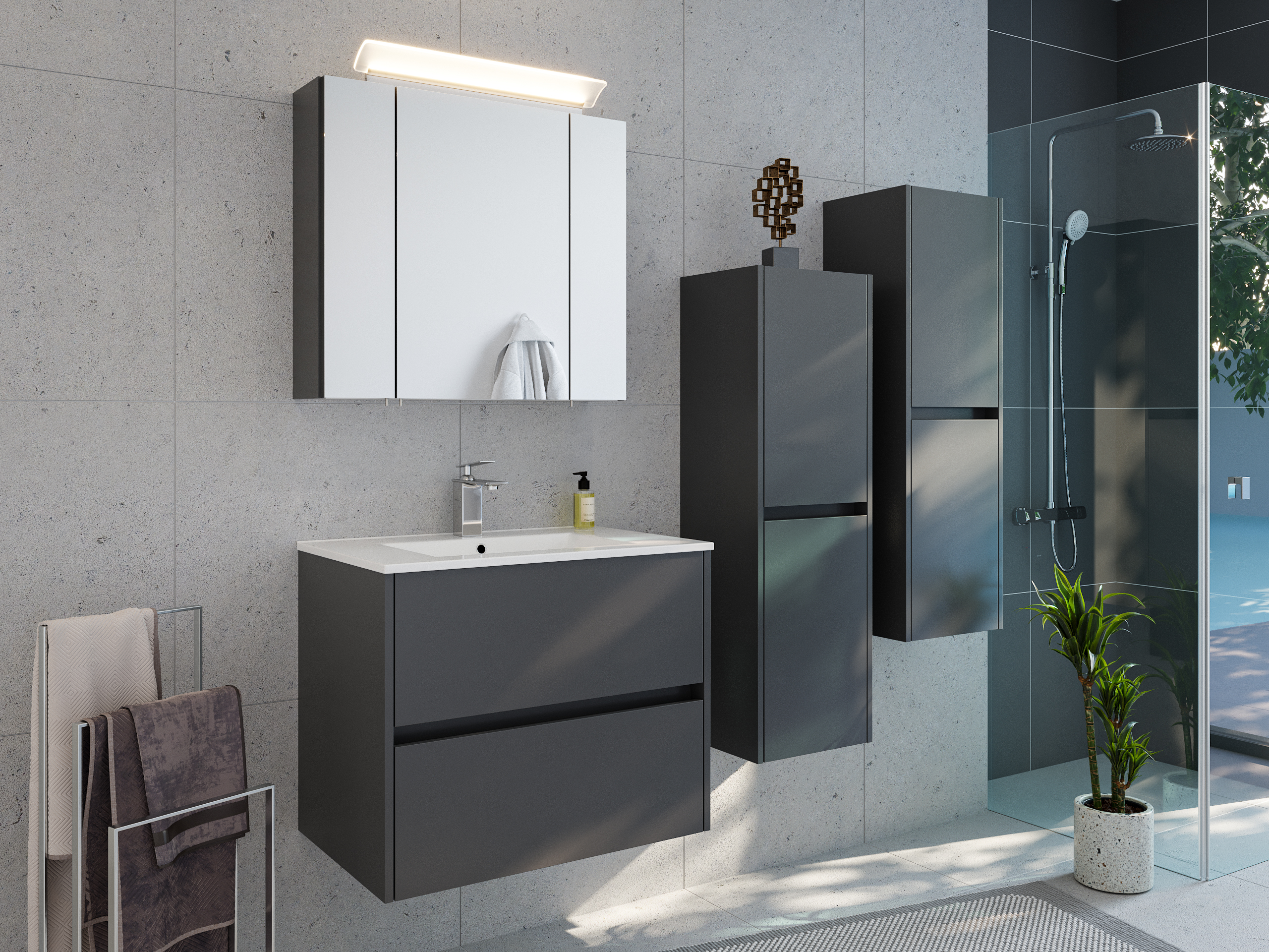 Badmöbelset Taifun 70cm 4tlg mit Spiegelschrank & 2x Seitenschrank grafit