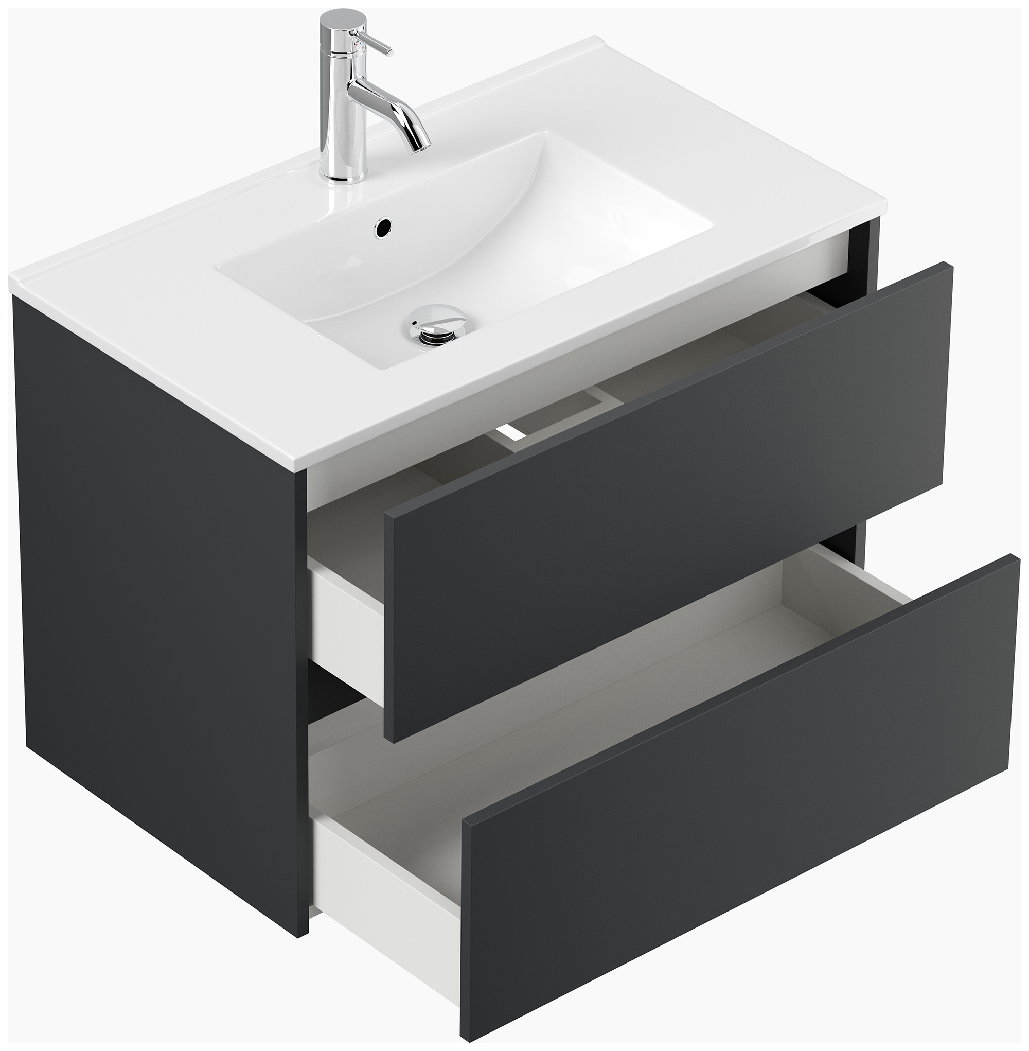Badmöbelset Taifun 80cm 3tlg mit Spiegelschrank & 3er Boxen Set grafit