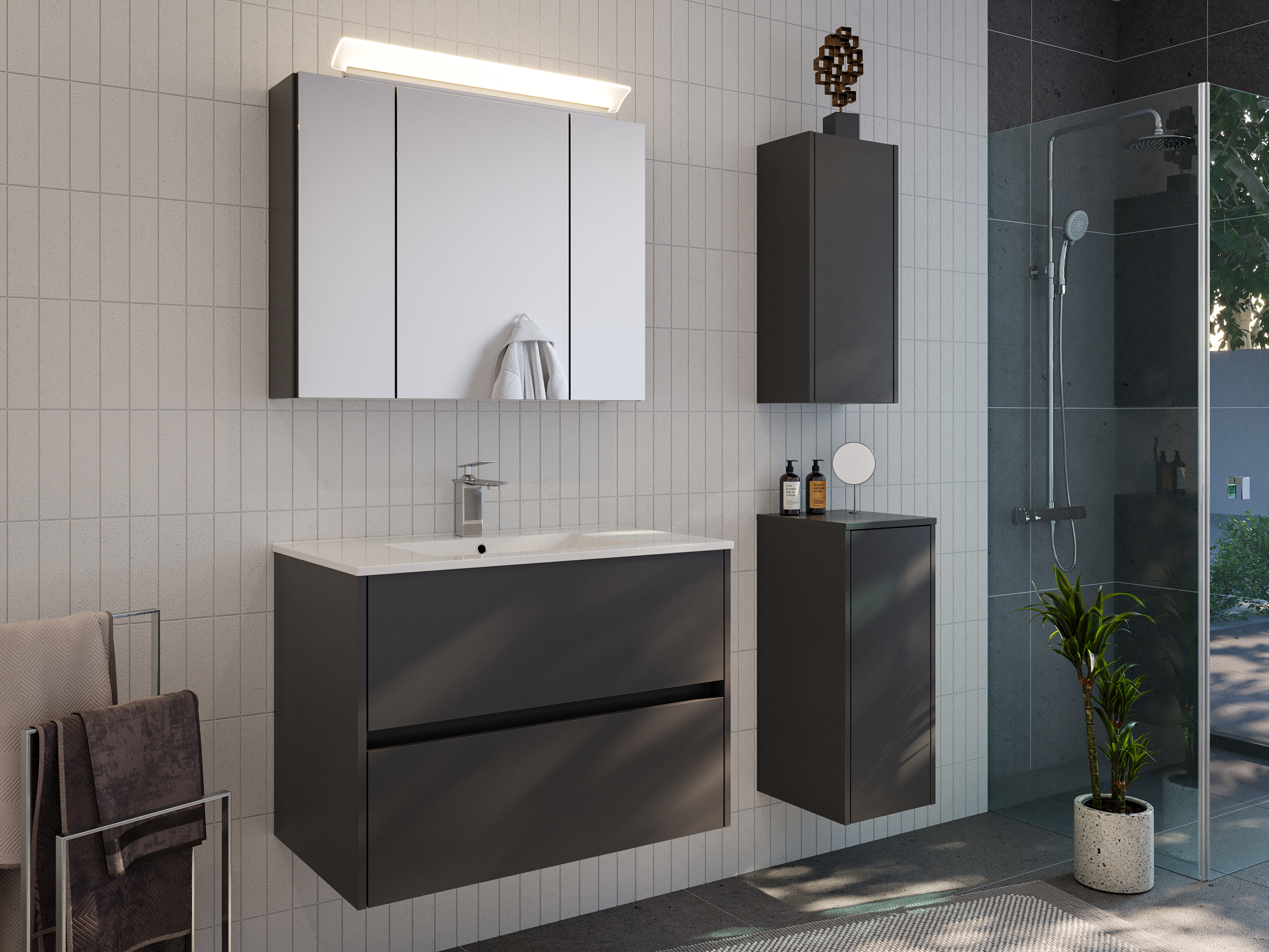 Badmöbelset Taifun 80cm 4tlg mit Spiegelschrank &2x Badschrank grafit