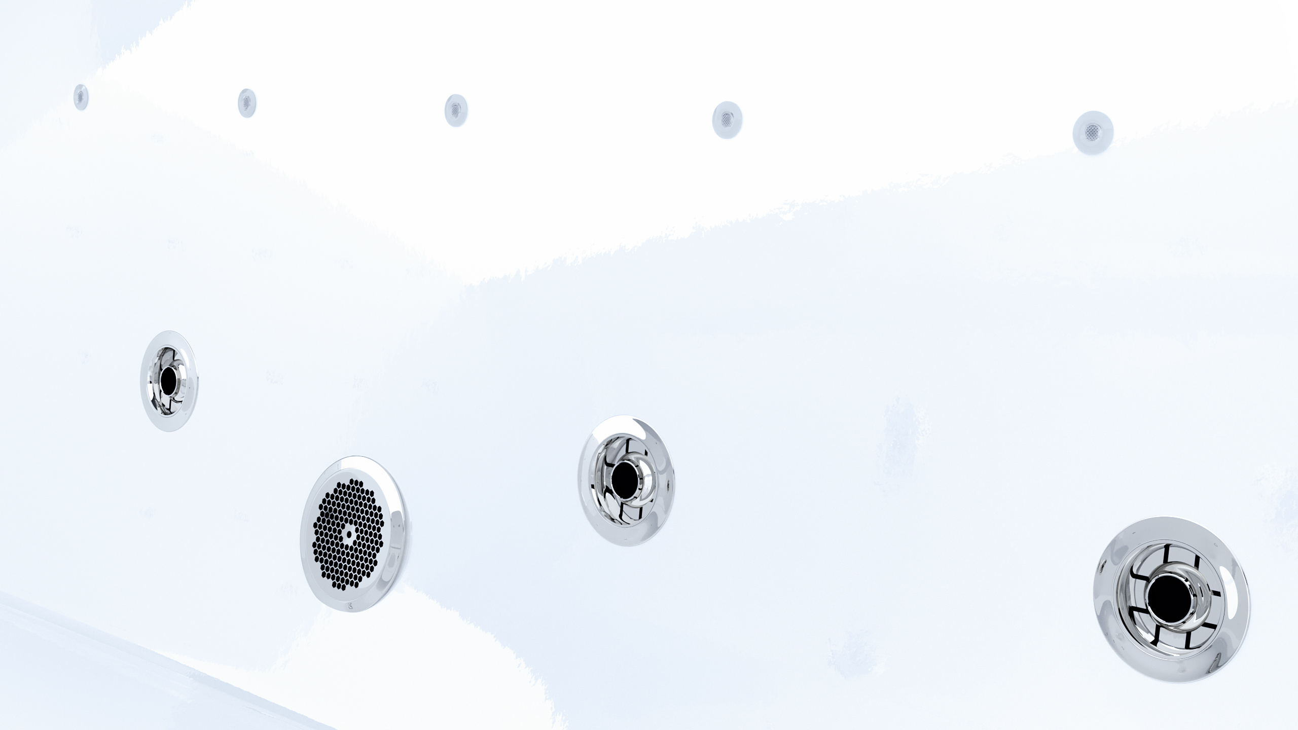 Die hochwertigen Flatjet-Düsen liegen nahezu bündig auf der Whirlpoolinnenfläche (Flatline). Der Düsenkörper des Flatjets ist hochwertig hergestellt und ist aus einem massiven Messingblock gefräst und verchromt. Manuell kann die Richtung des Massagestrahl verändert werden.