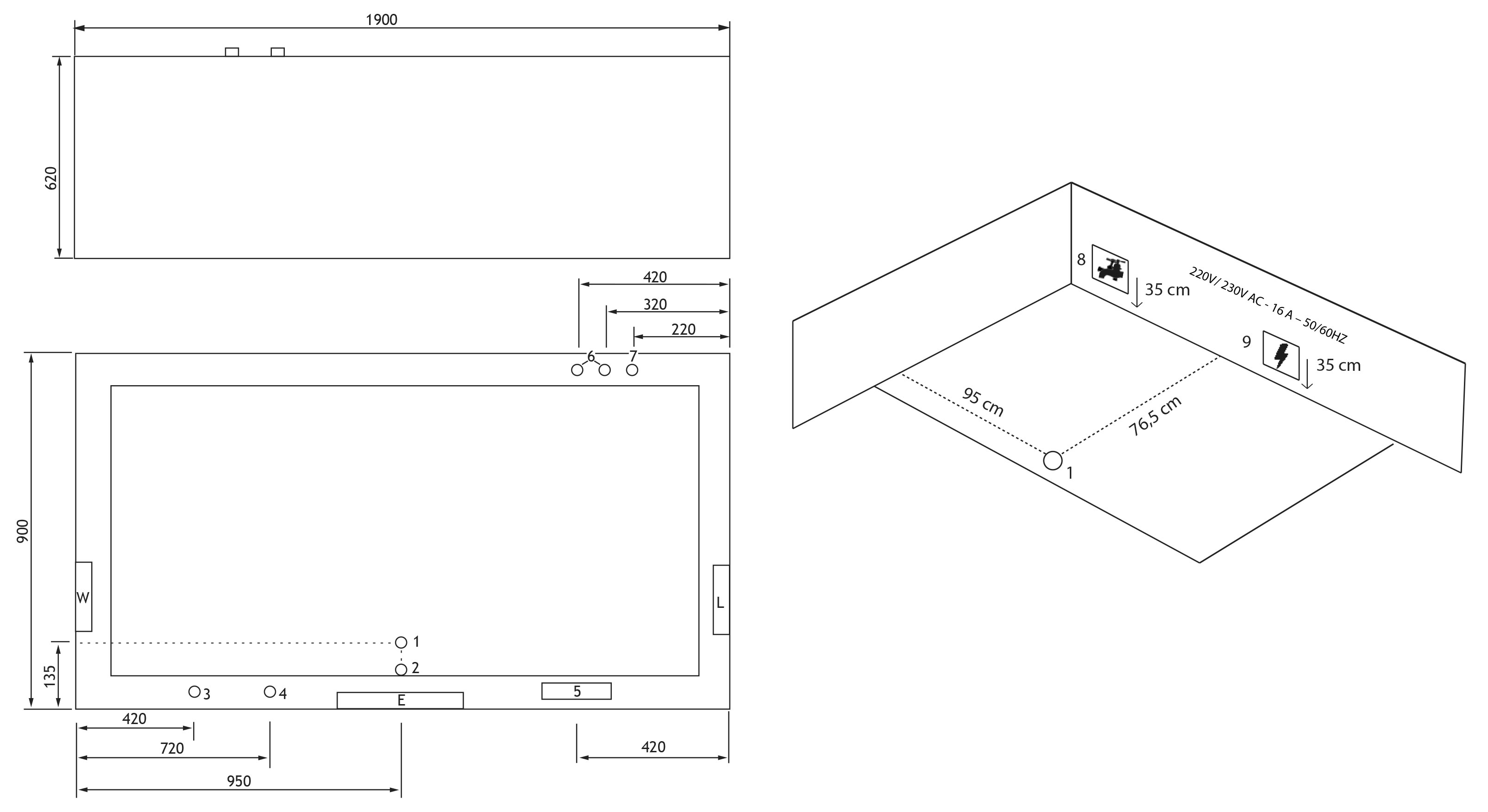 Strom: 220V ⁄ 230V - 16 A - 50HZ