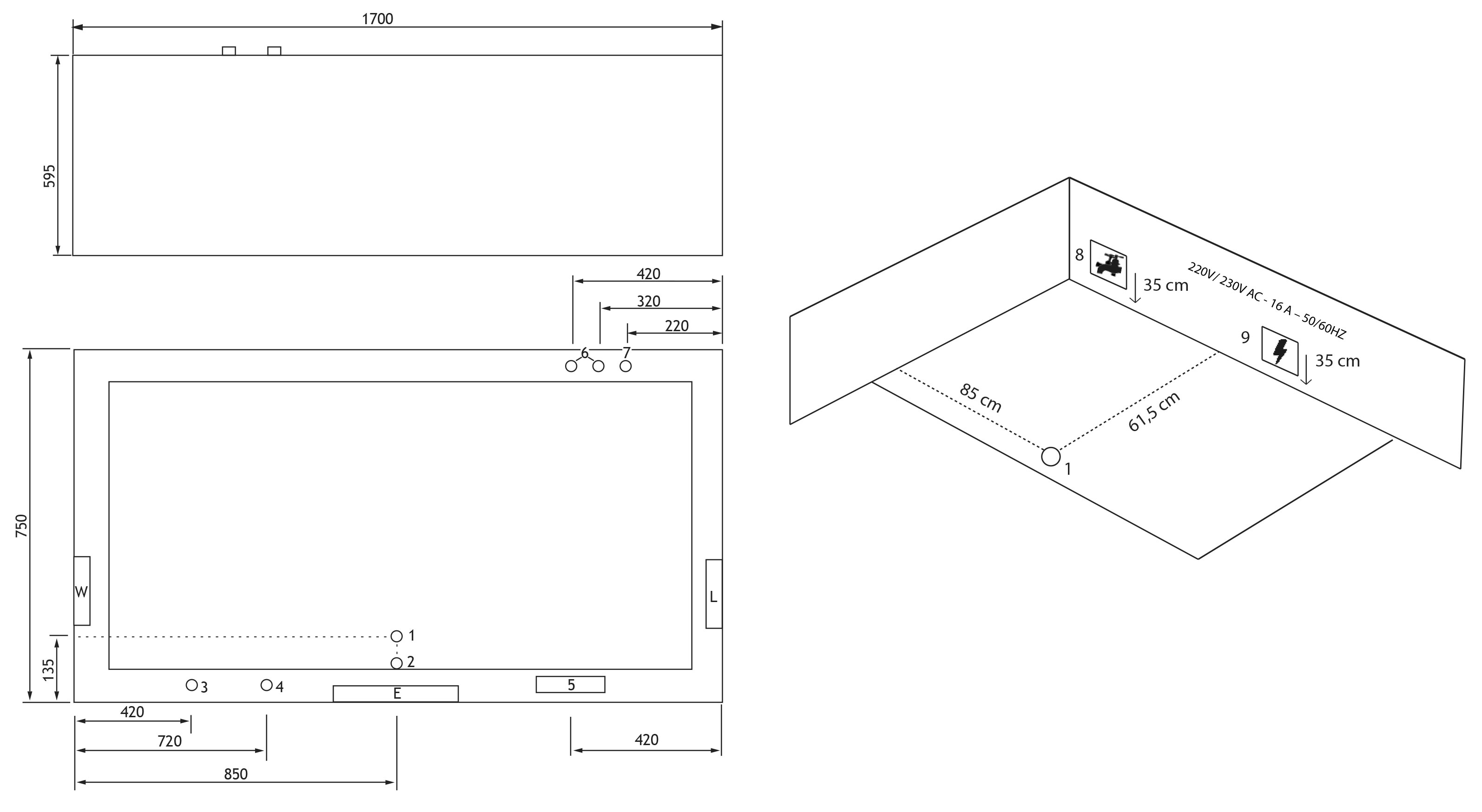 Strom: 220V ⁄ 230V - 16 A - 50HZ