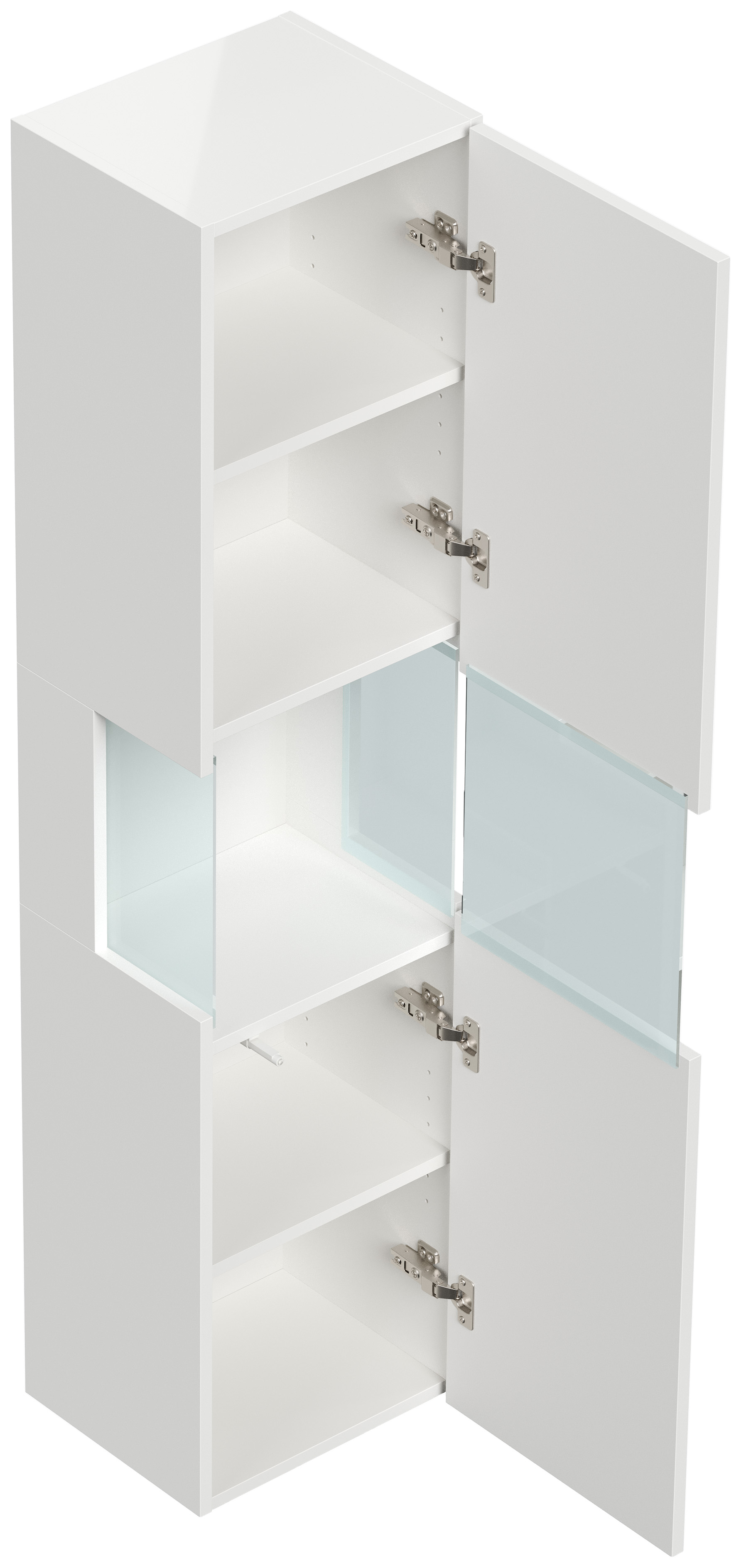 Design Badschrank Hochschrank 150cm Softclose Taifun Glaselement weiß Hgl