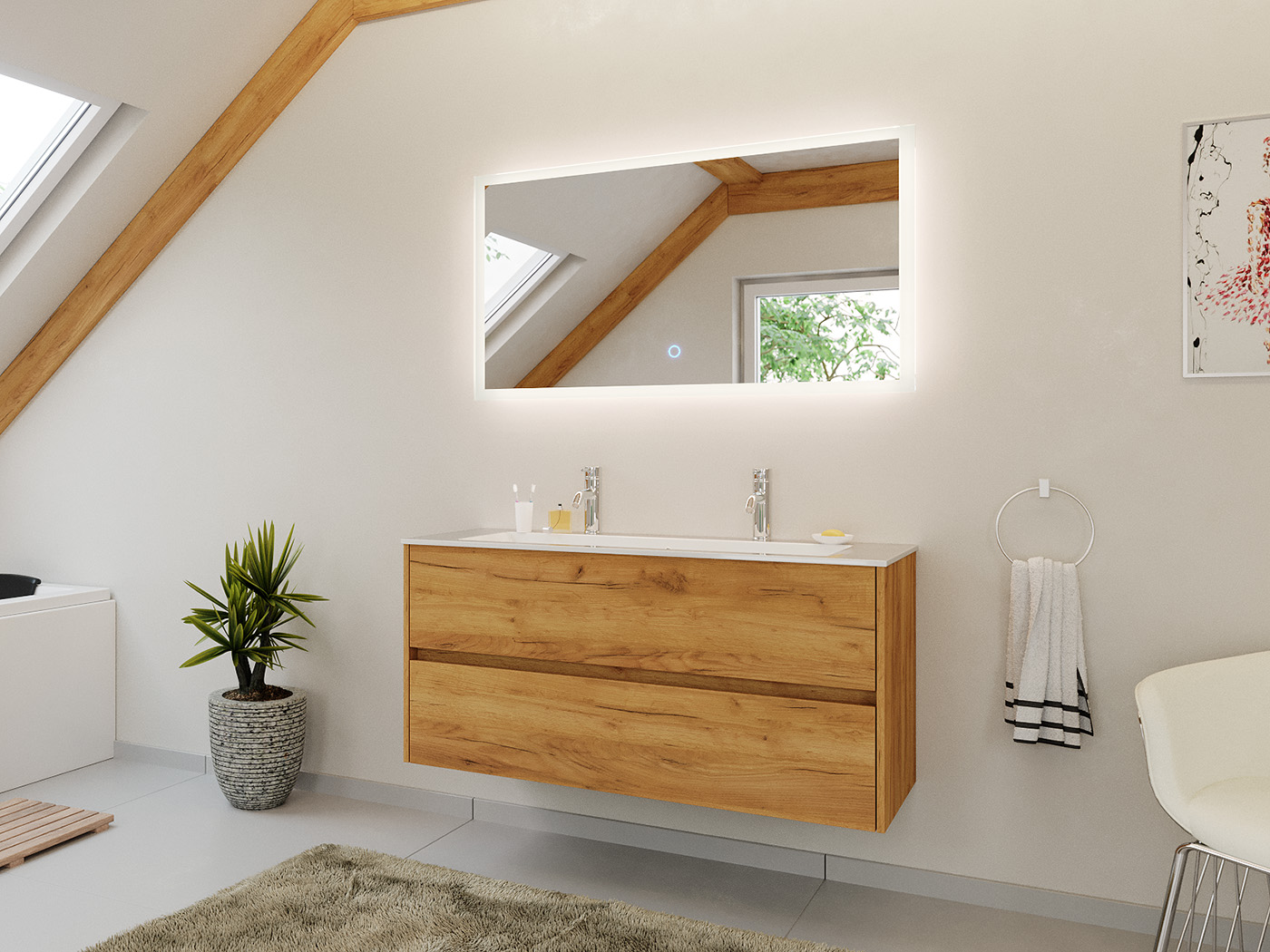 Doppel-Badmöbel Set Taifun 2tlg. 120 cm mit LED Spiegel eiche gold