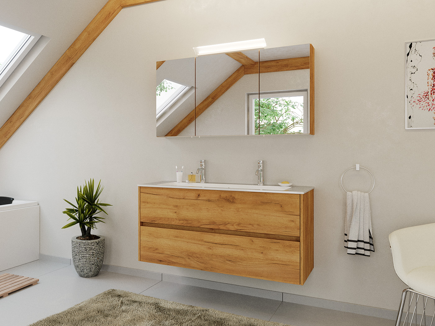 Doppel-Badmöbel Set Taifun 2tlg. 120 cm mit Spiegelschrank eiche gold