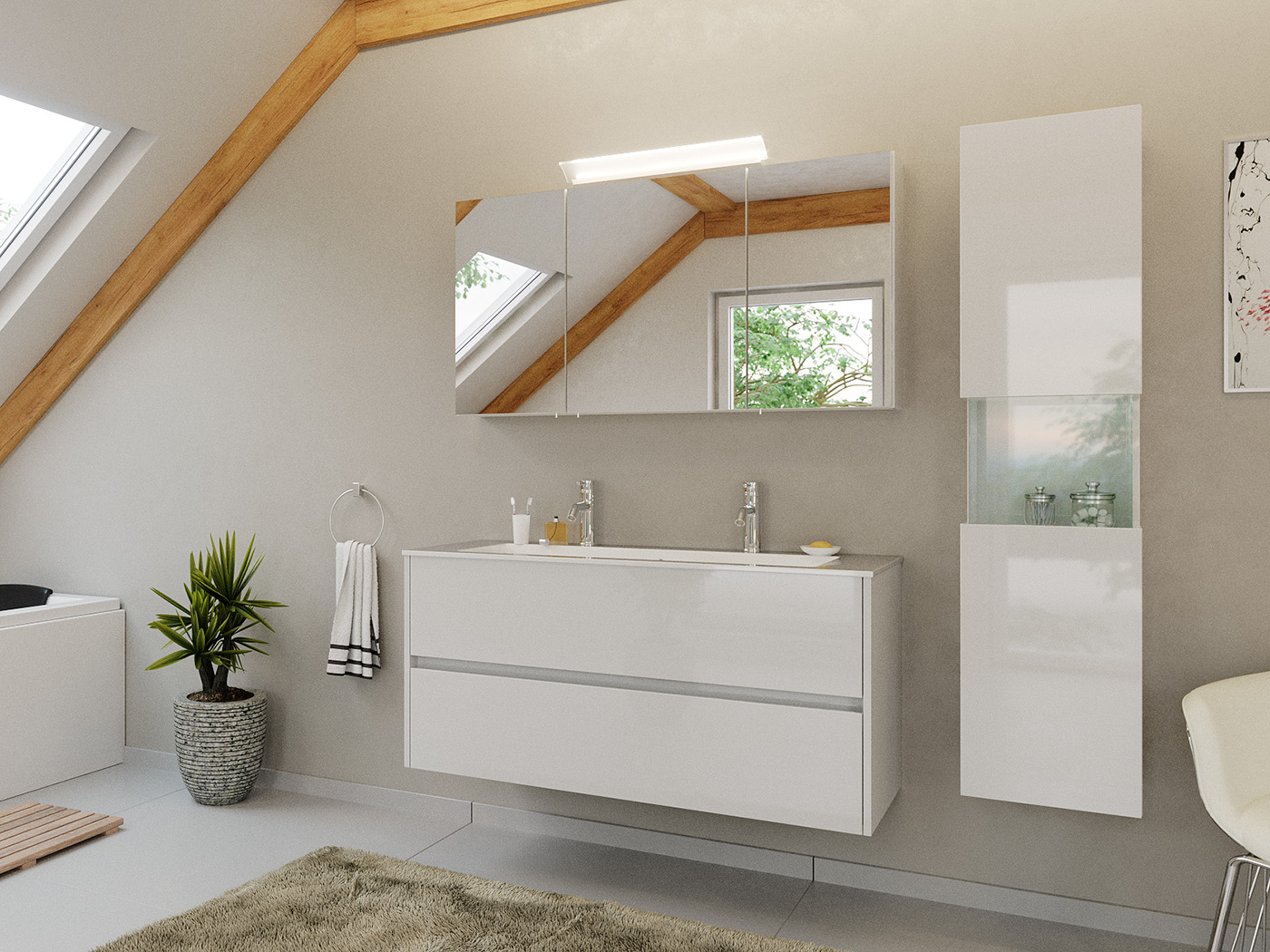 Doppel-Badmöbel Set Taifun 3tlg. 120 cm mit Spiegelschrank & Hochschrank weiß