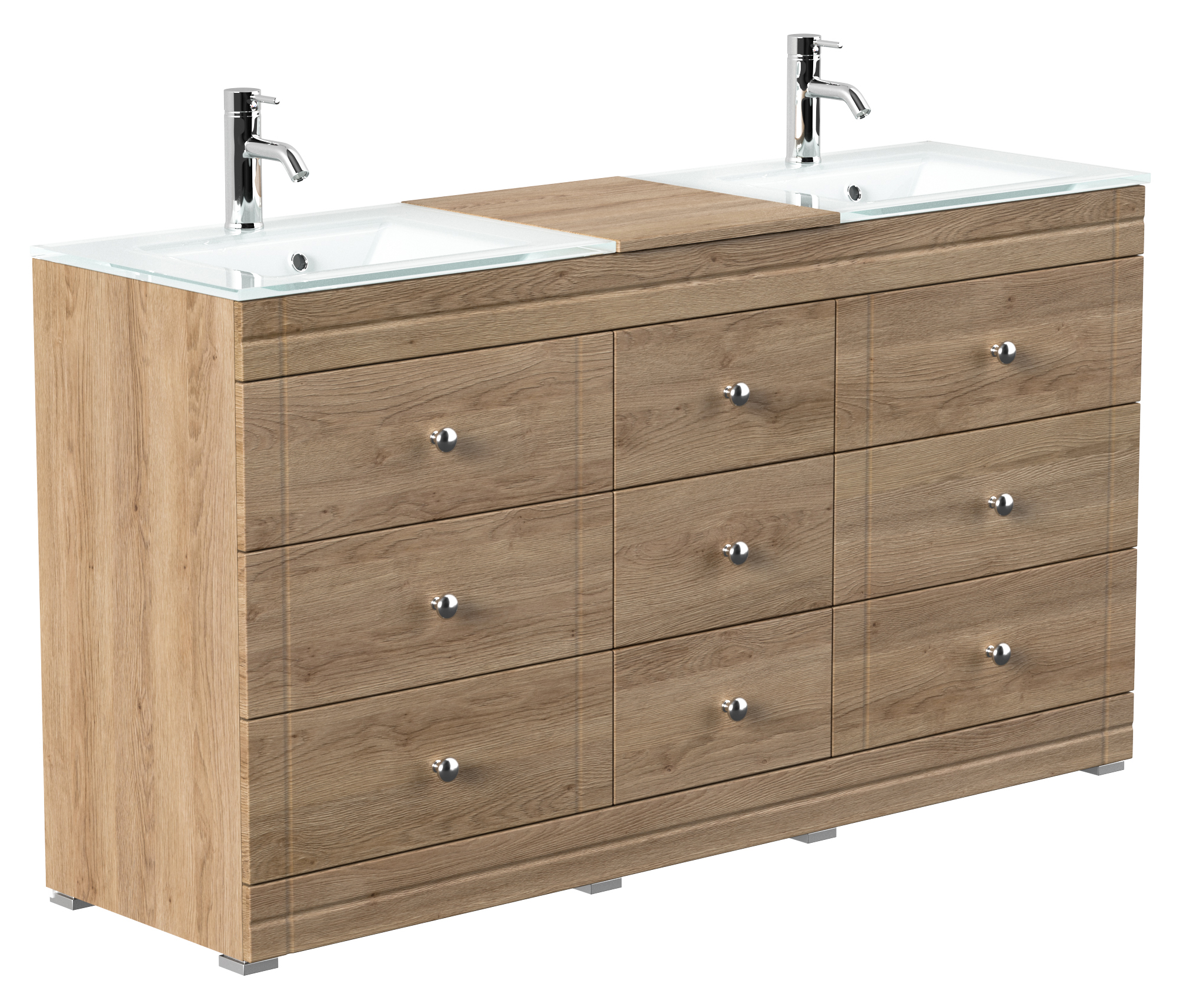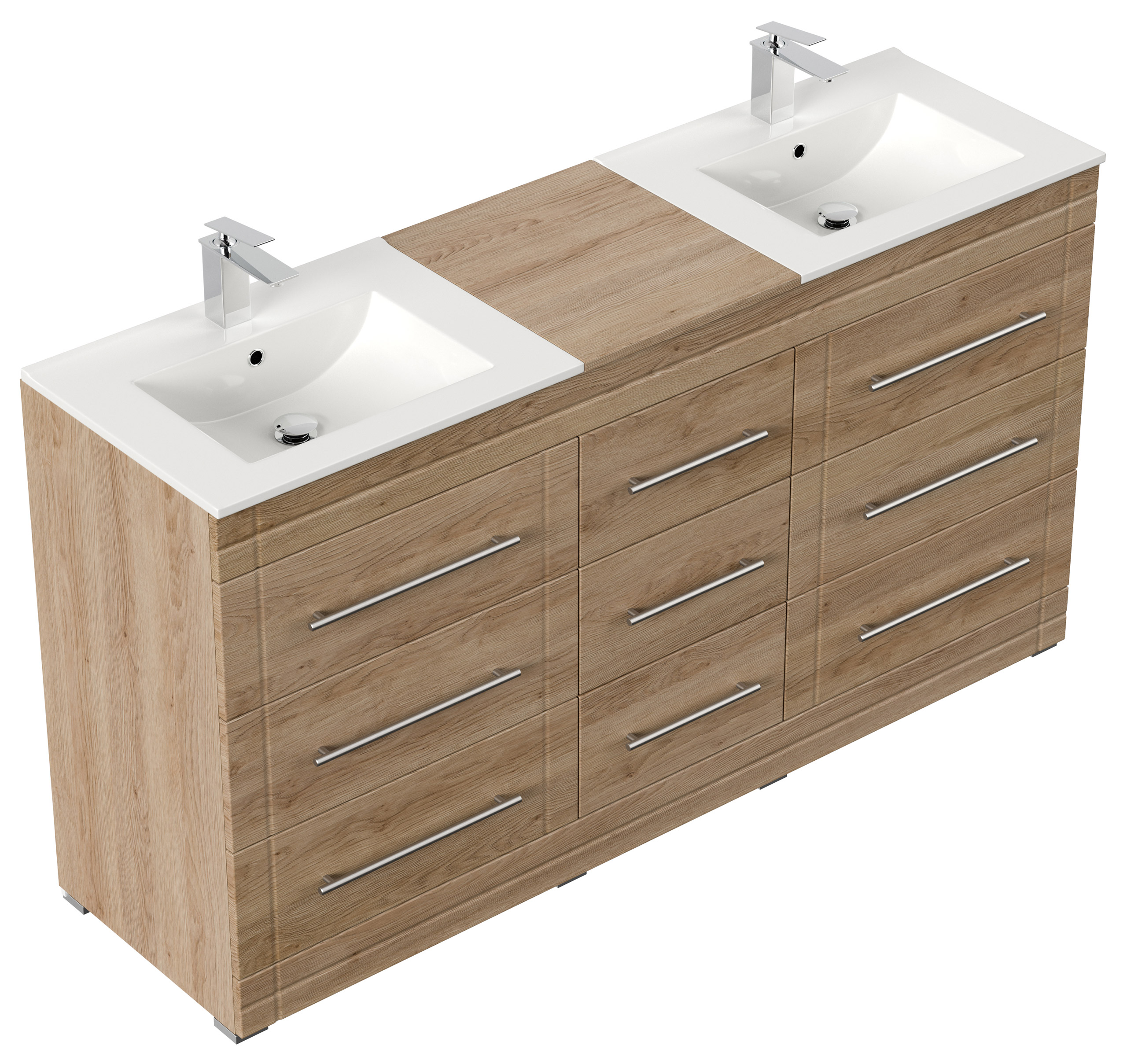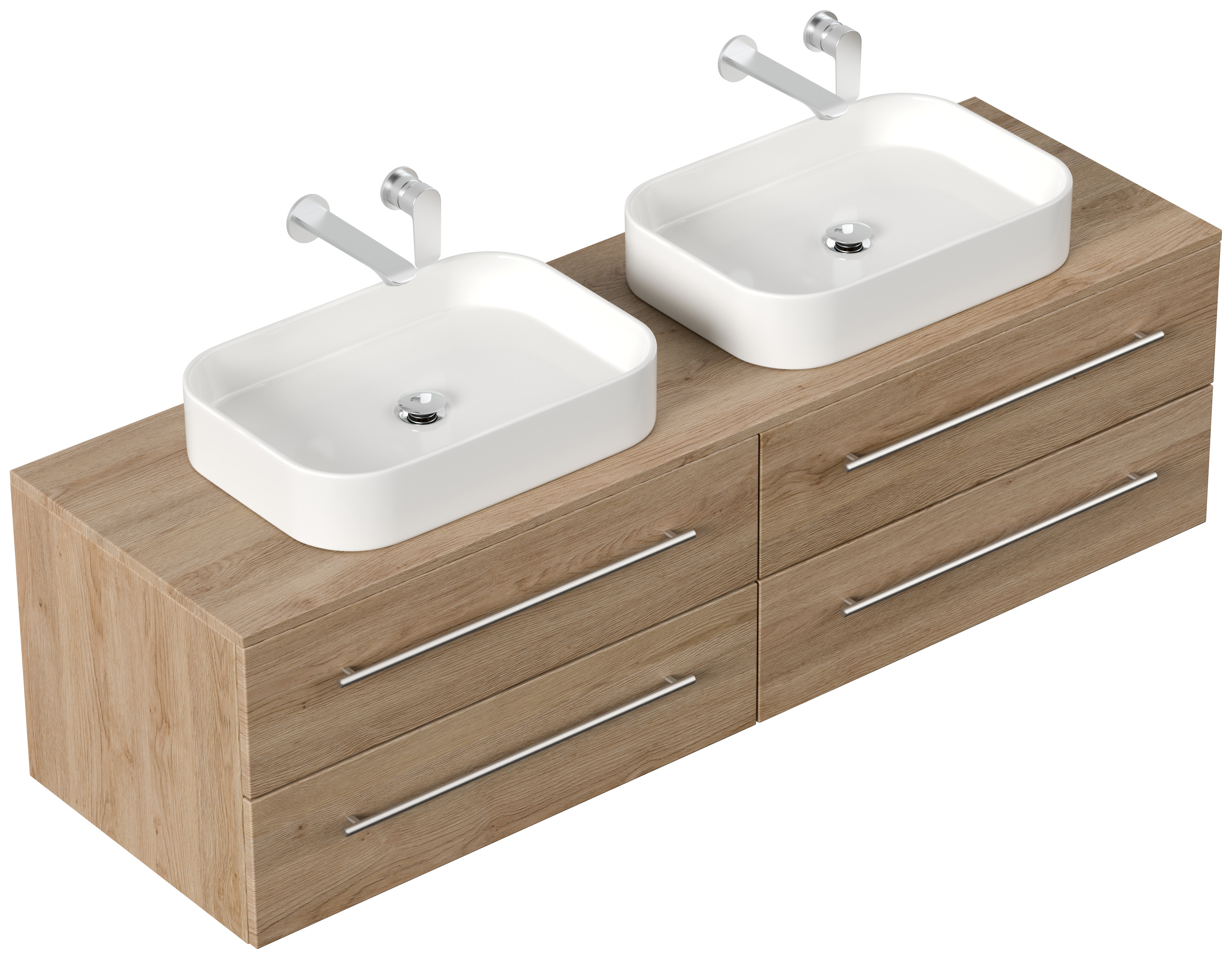 Badmöbel MORGAN B 160cm mit zwei Aufsatzwaschbecken eiche hell