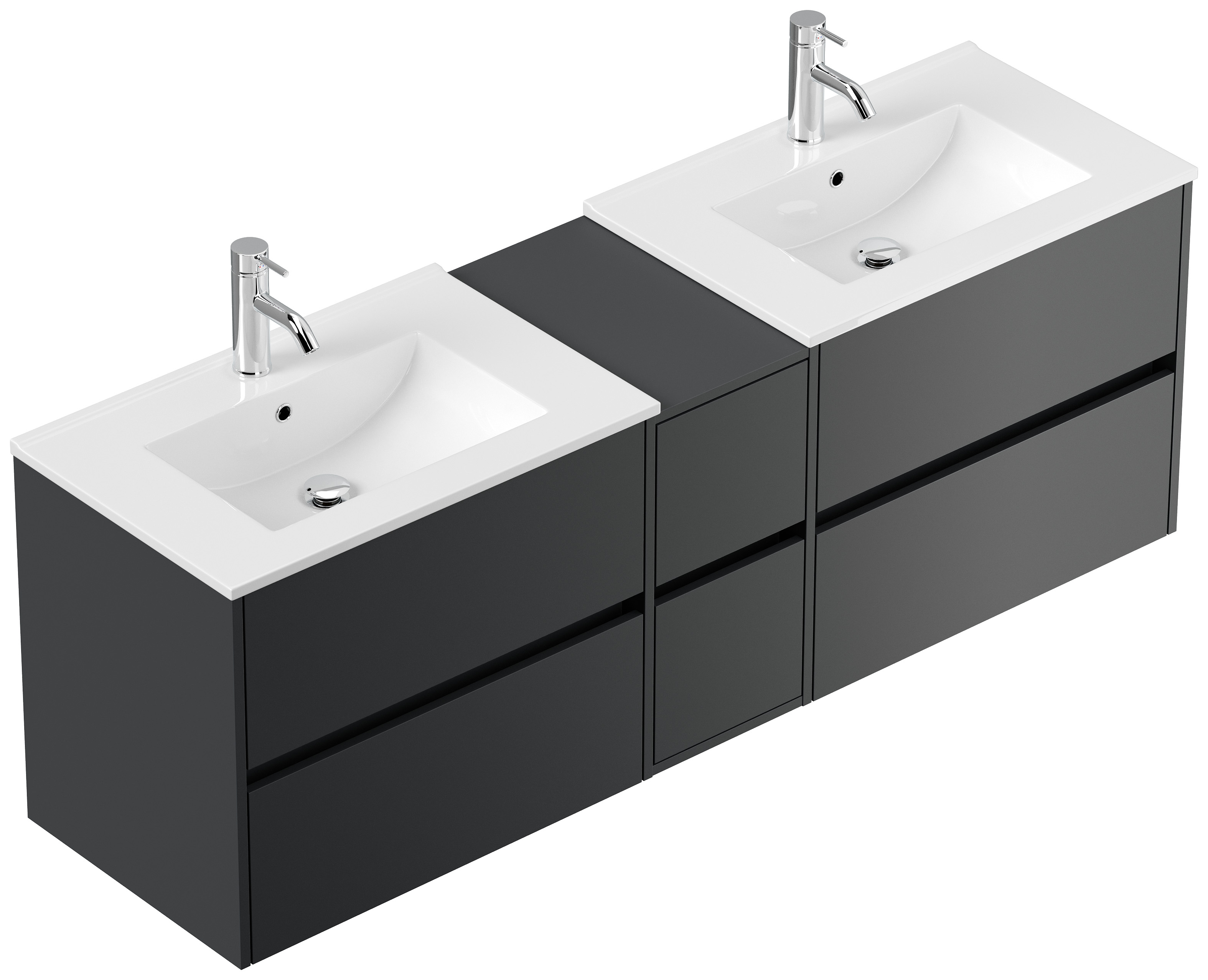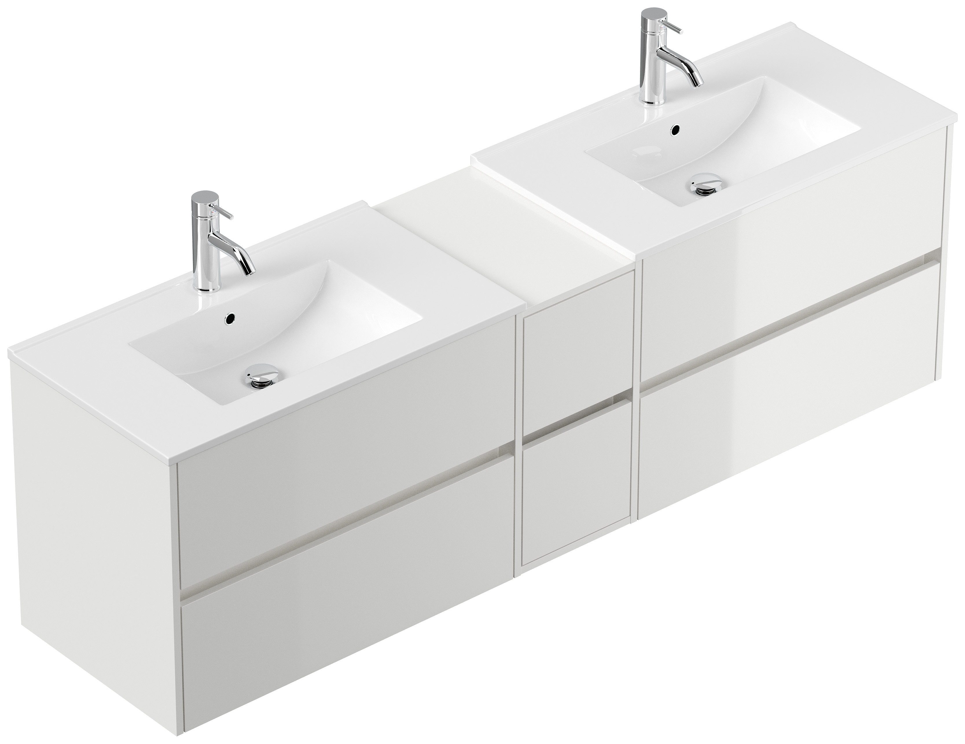 Badmöbel MORGAN A 160cm mit zwei Aufsatzwaschbecken weiß hochglanz