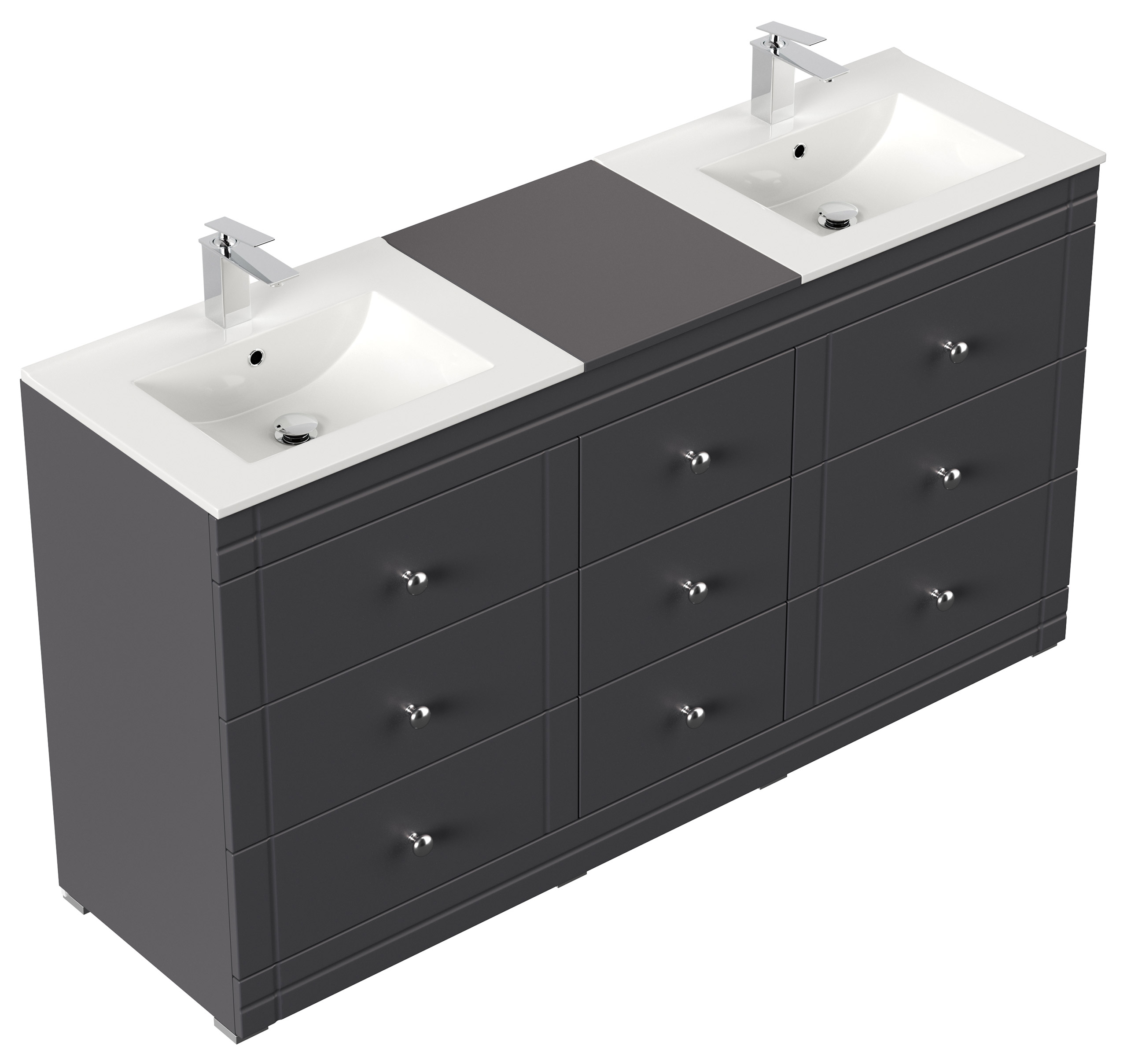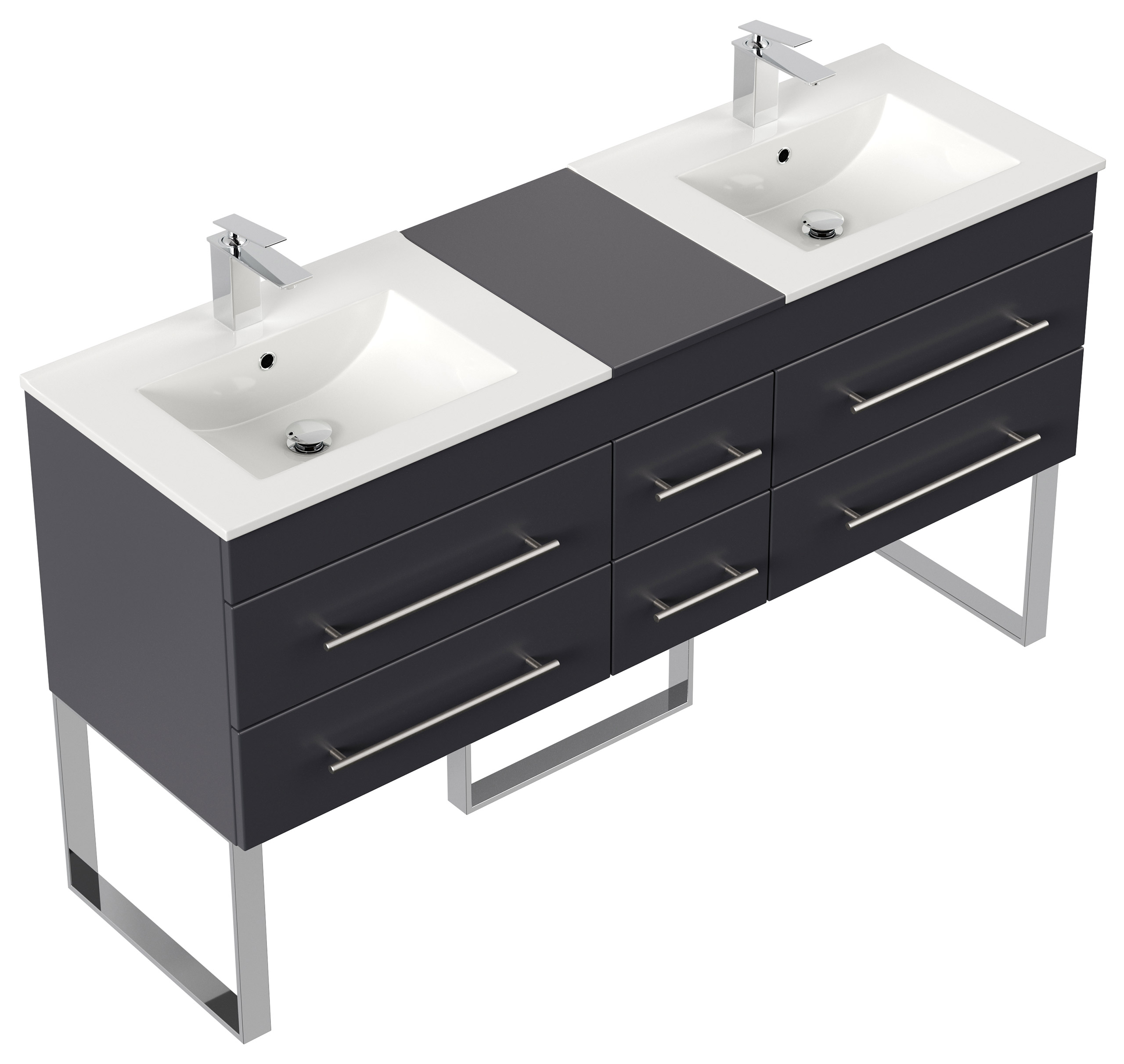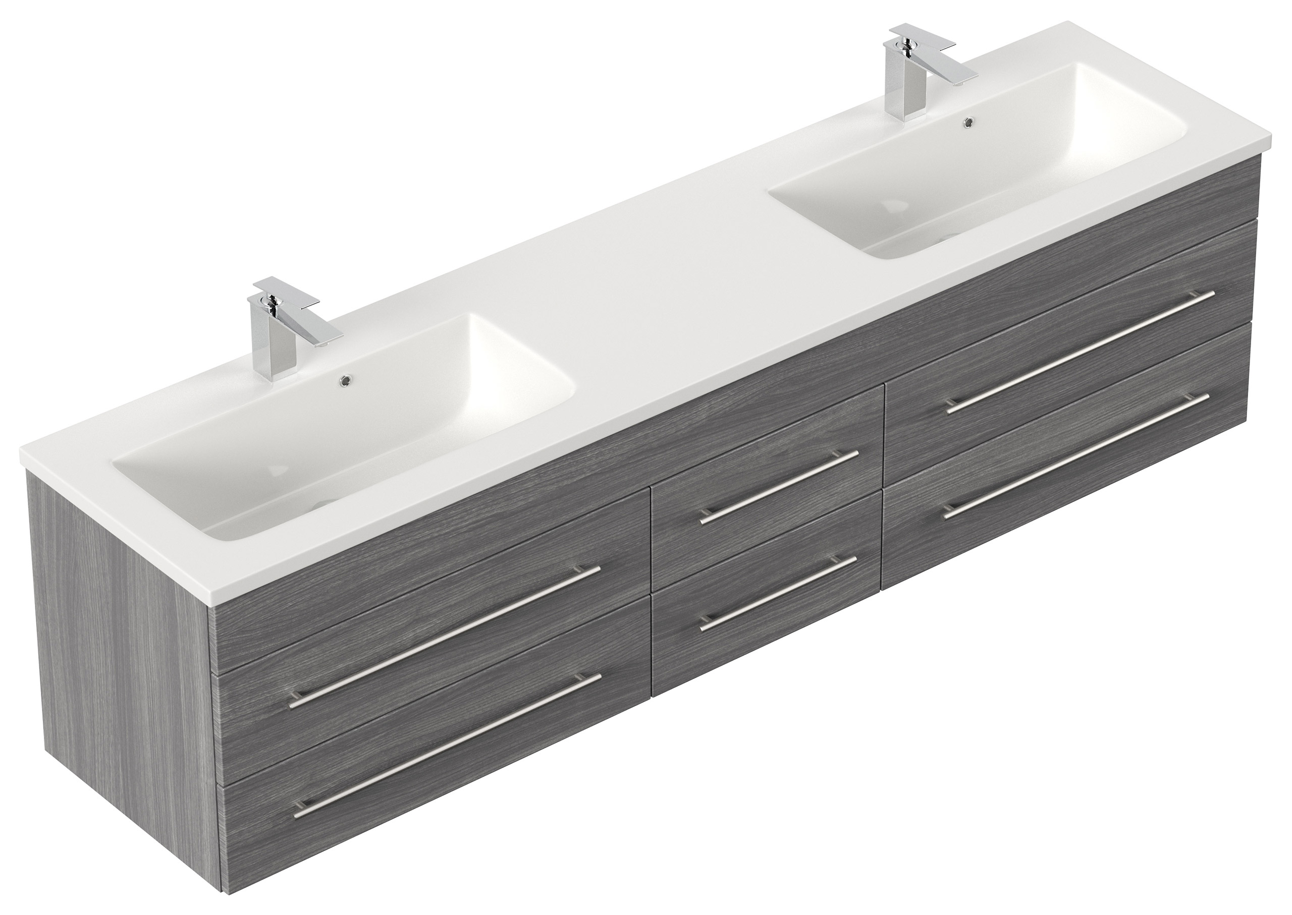 Badmöbel Milano XL 172cm Doppel- Waschtisch SoftClose anthrazit gemasert