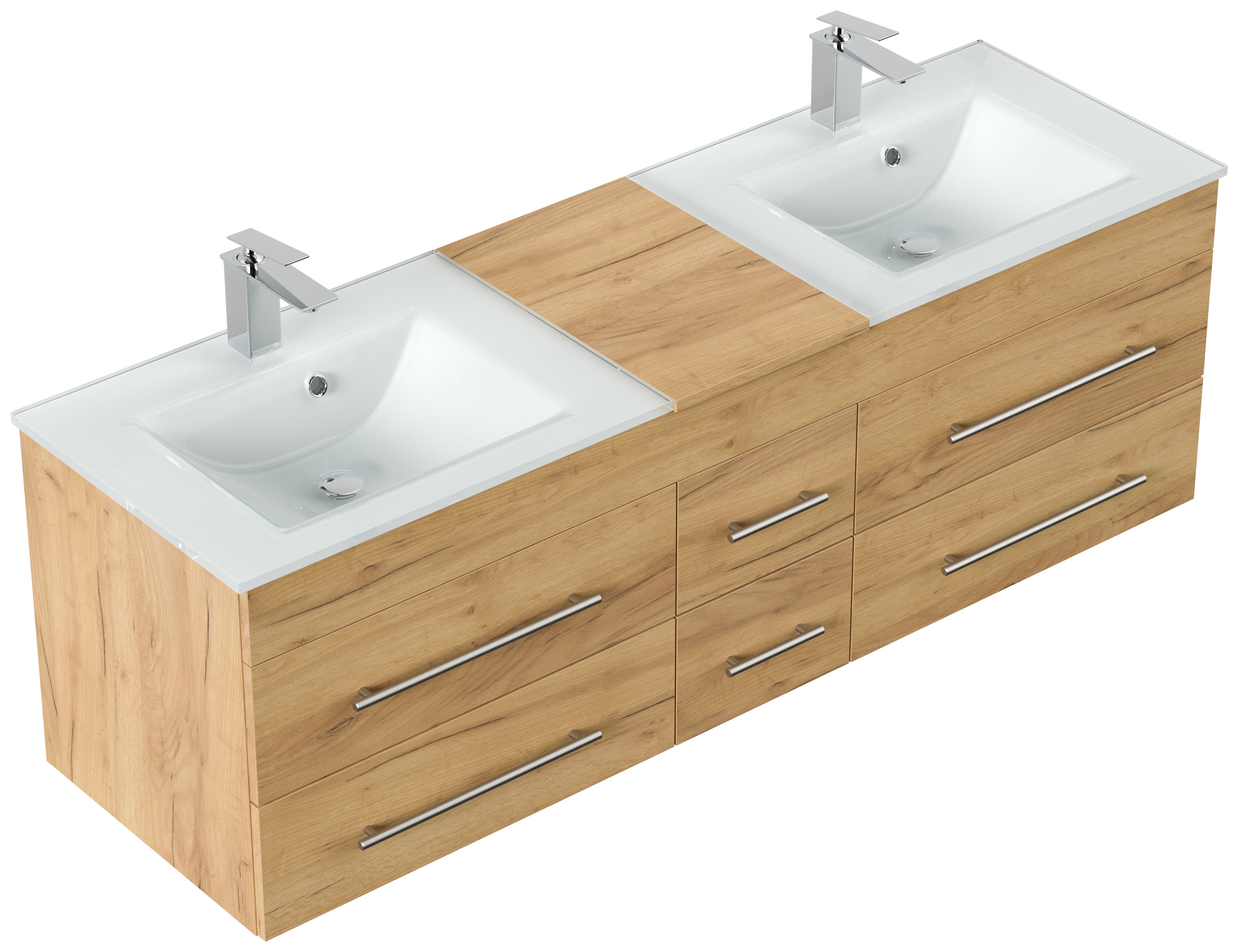 Badmöbel Vitro XL mit Doppel-Glasbecken SoftClose eiche gold