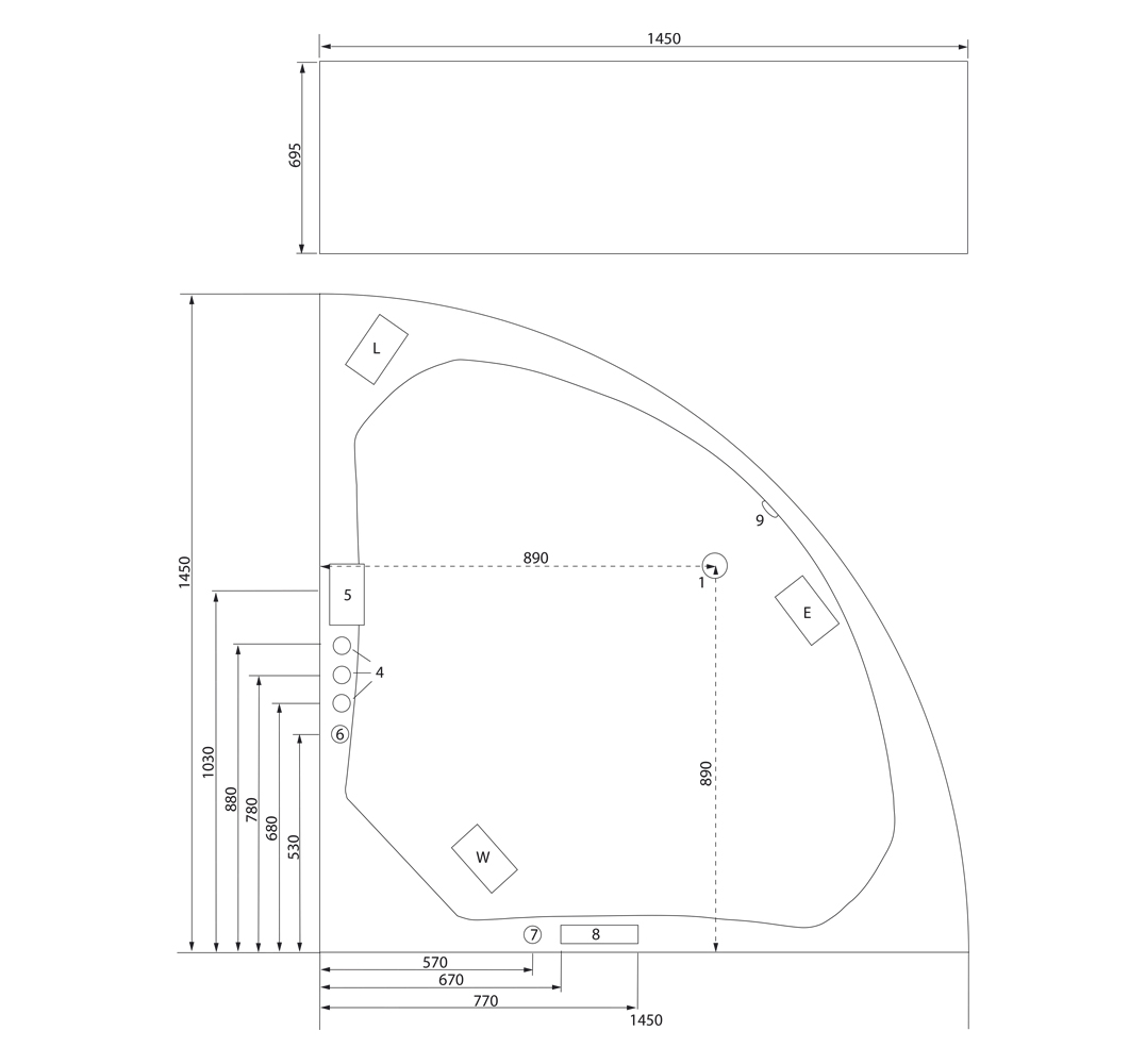 - Anschlussfertige Whirlpool-Wanne (Made in Germany) mit Rahmen auf höhenverstellbaren Füßen.