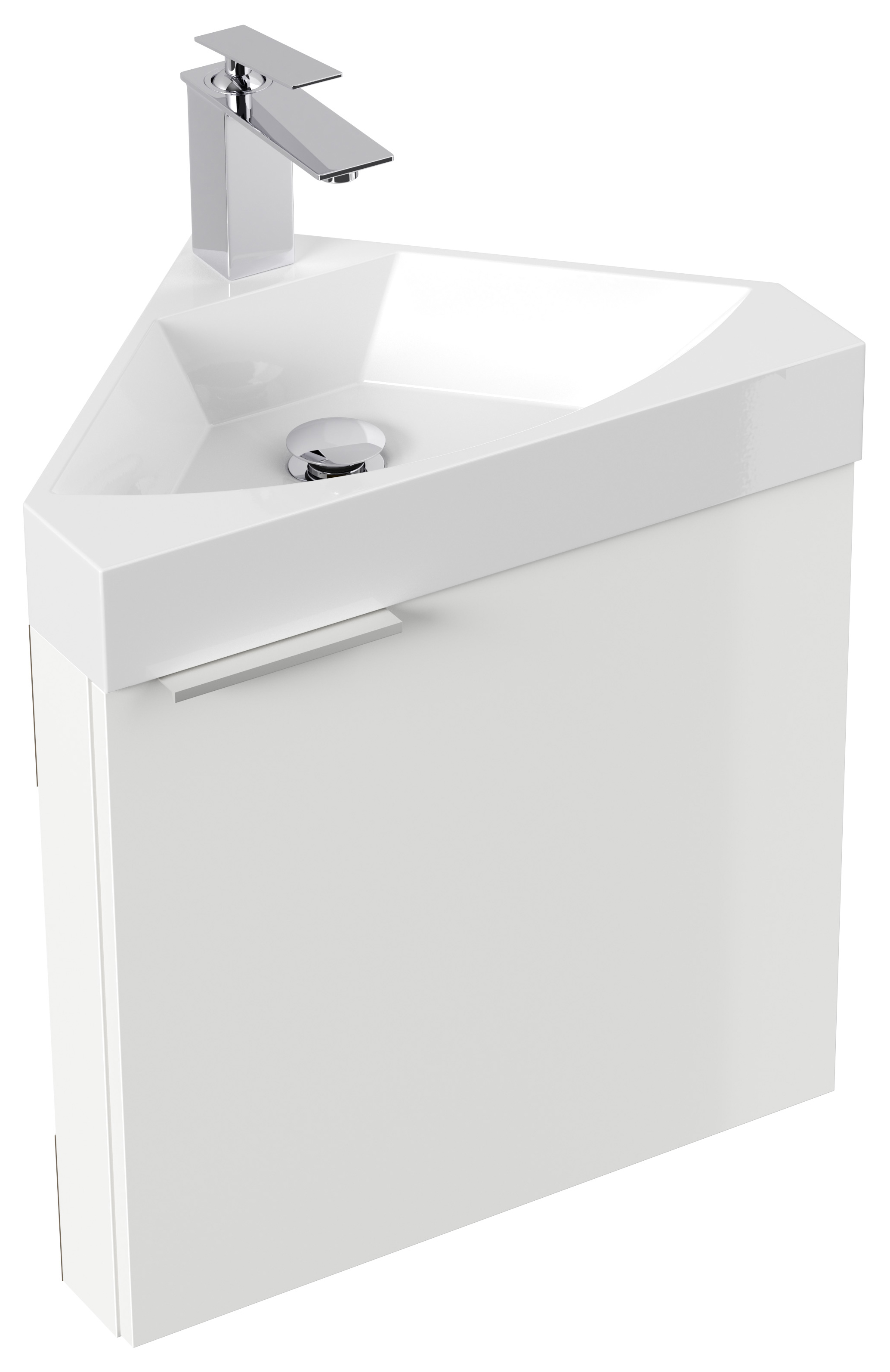 Gäste WC Eckbadmöbel Diamant Slimline Gästebad SoftClose weiß hochglanz