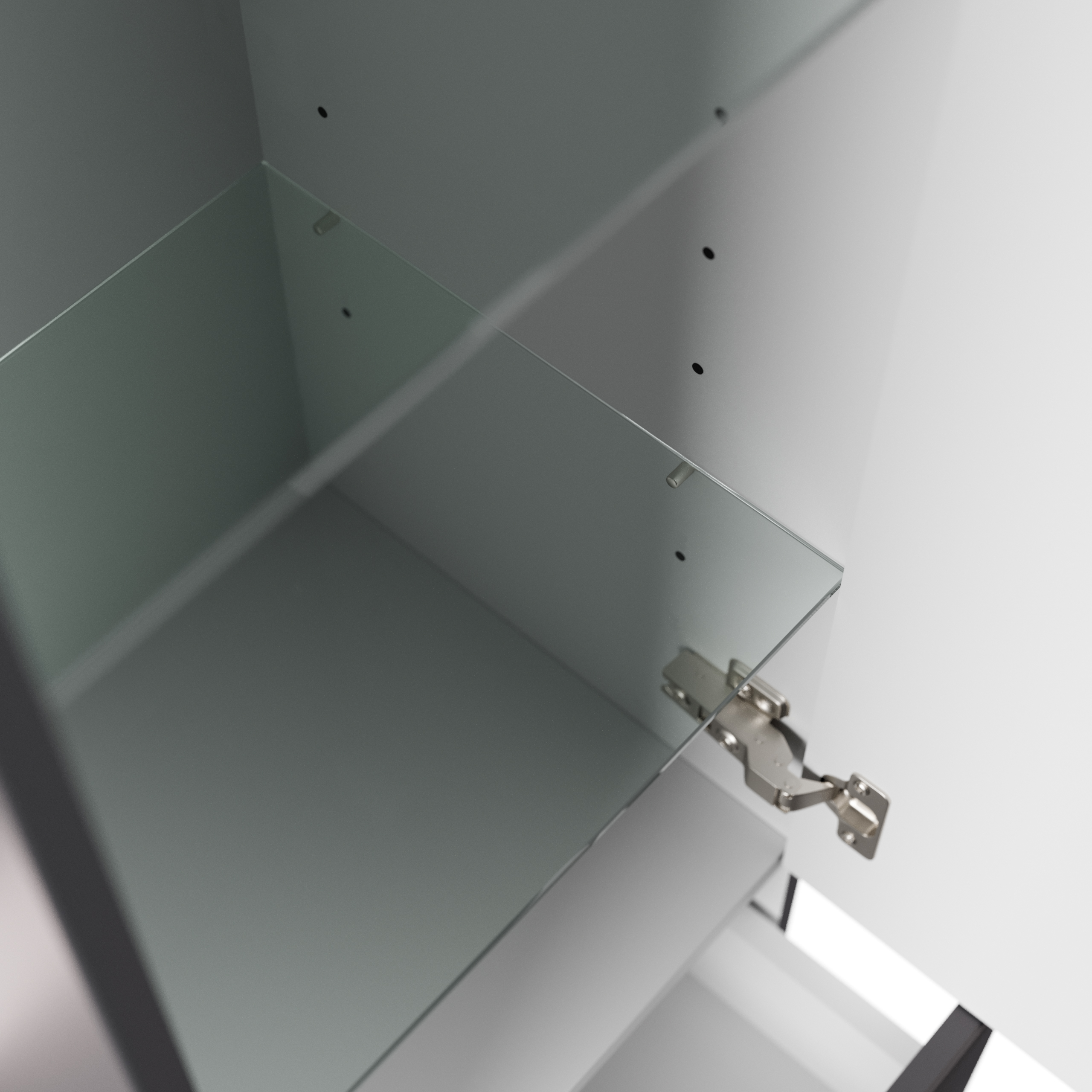 Badhochschrank 120 (2 Softclose-Schubladen, 2 Regalböden, 2 Glasböden, Soft-Close-Tür).