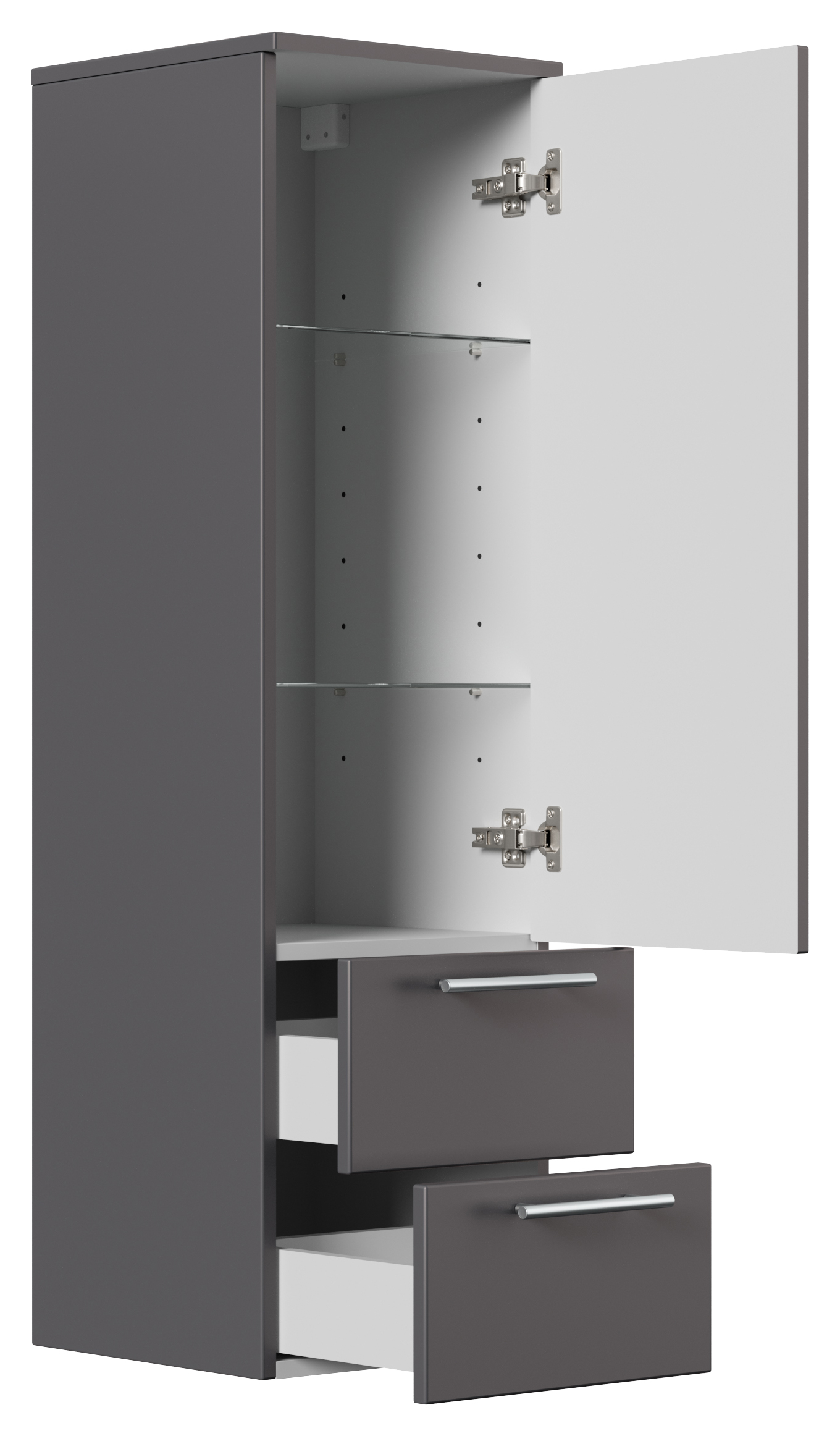 Hochschrank 120 cm anthrazit mit Glaseinlagen