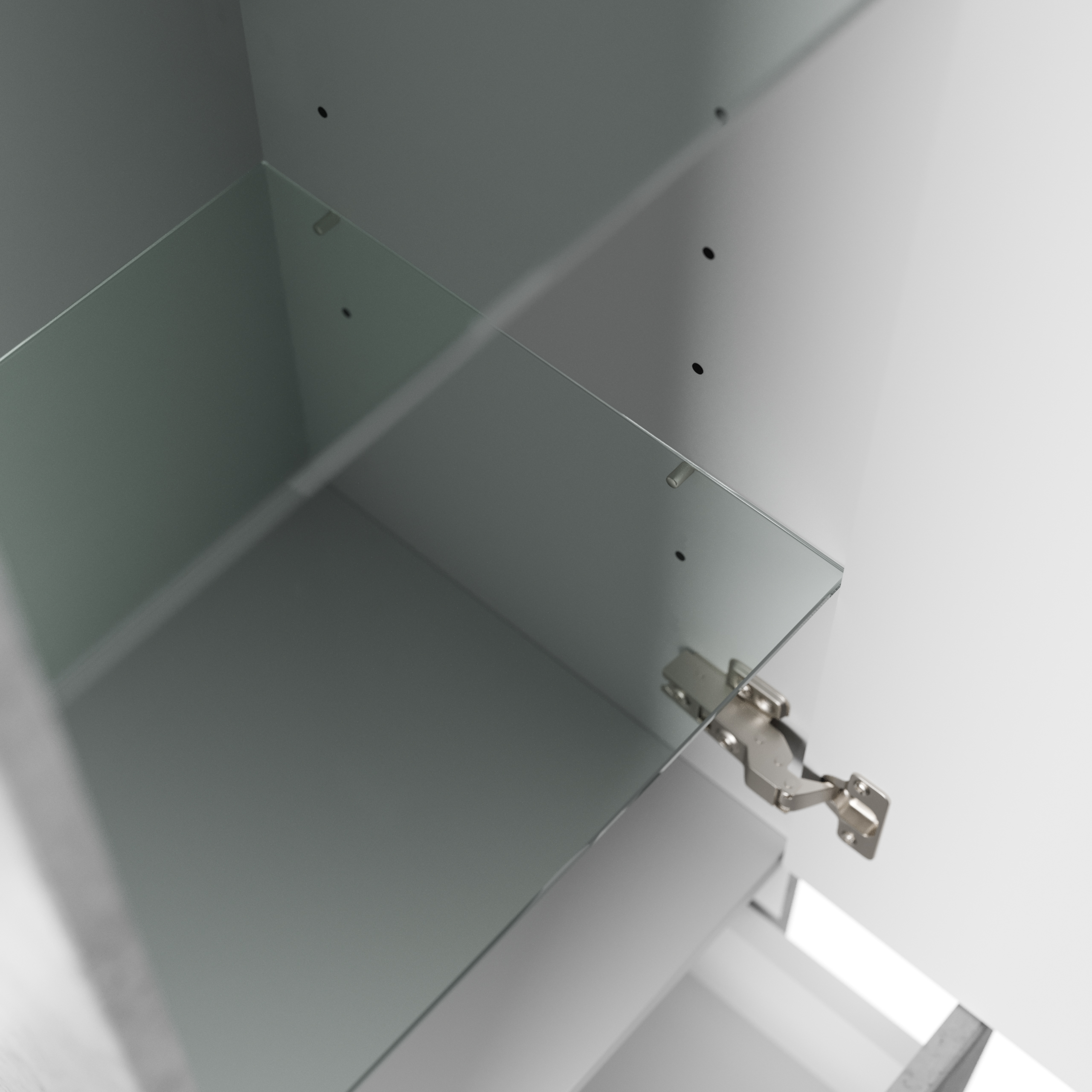 Badhochschrank 120 (2 Softclose-Schubladen, 2 Regalböden, 2 Glasböden, Soft-Close-Tür).