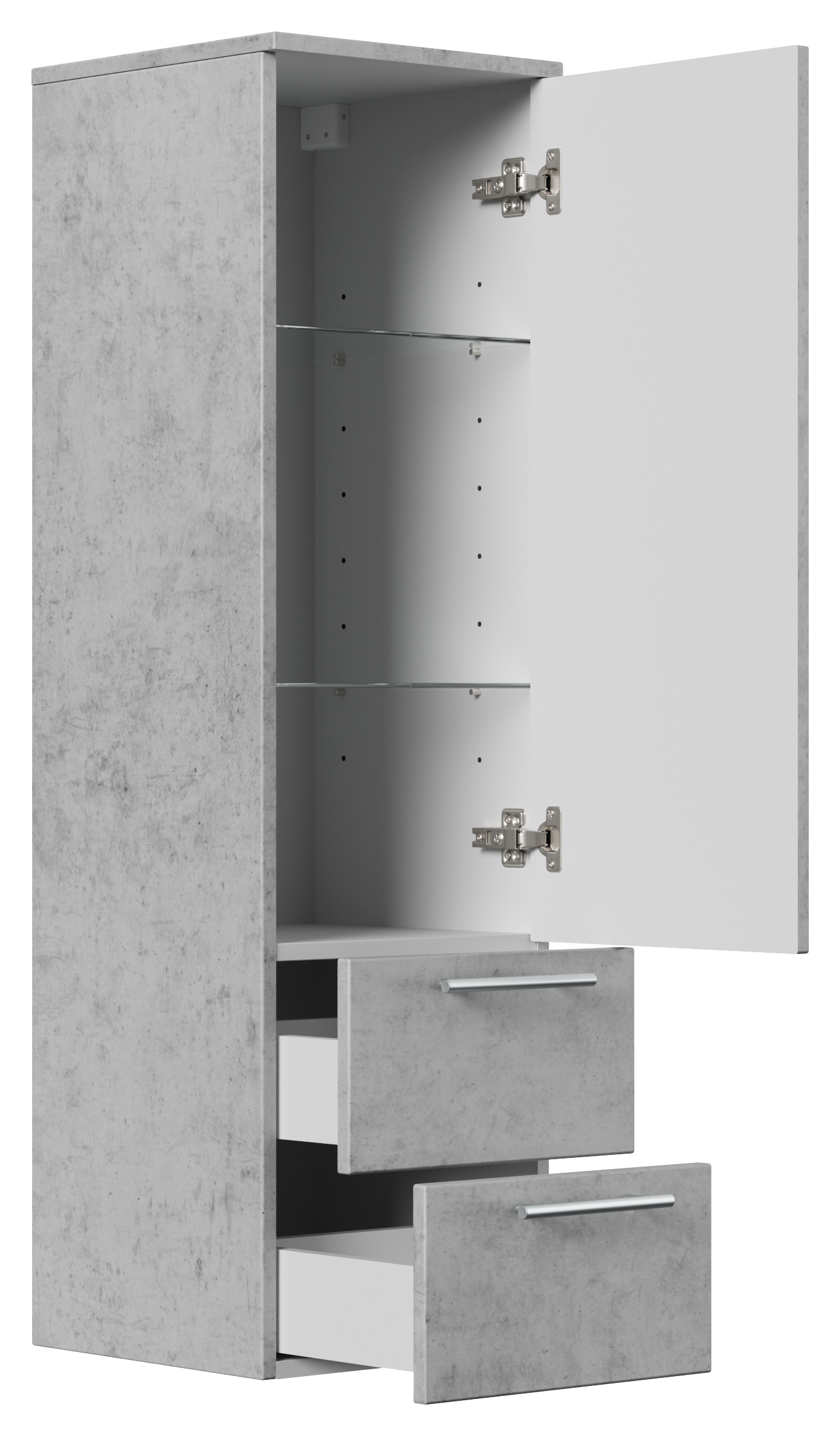 Hochschrank 120 cm in Beton mit Glaseinlagen