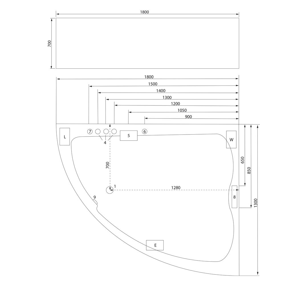 - Anschlussfertige Whirlpool-Wanne (Made in Germany) mit Rahmen auf höhenverstellbaren Füßen.