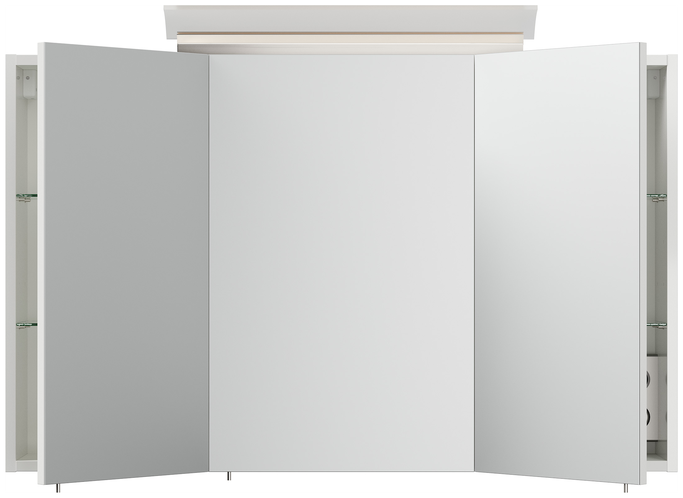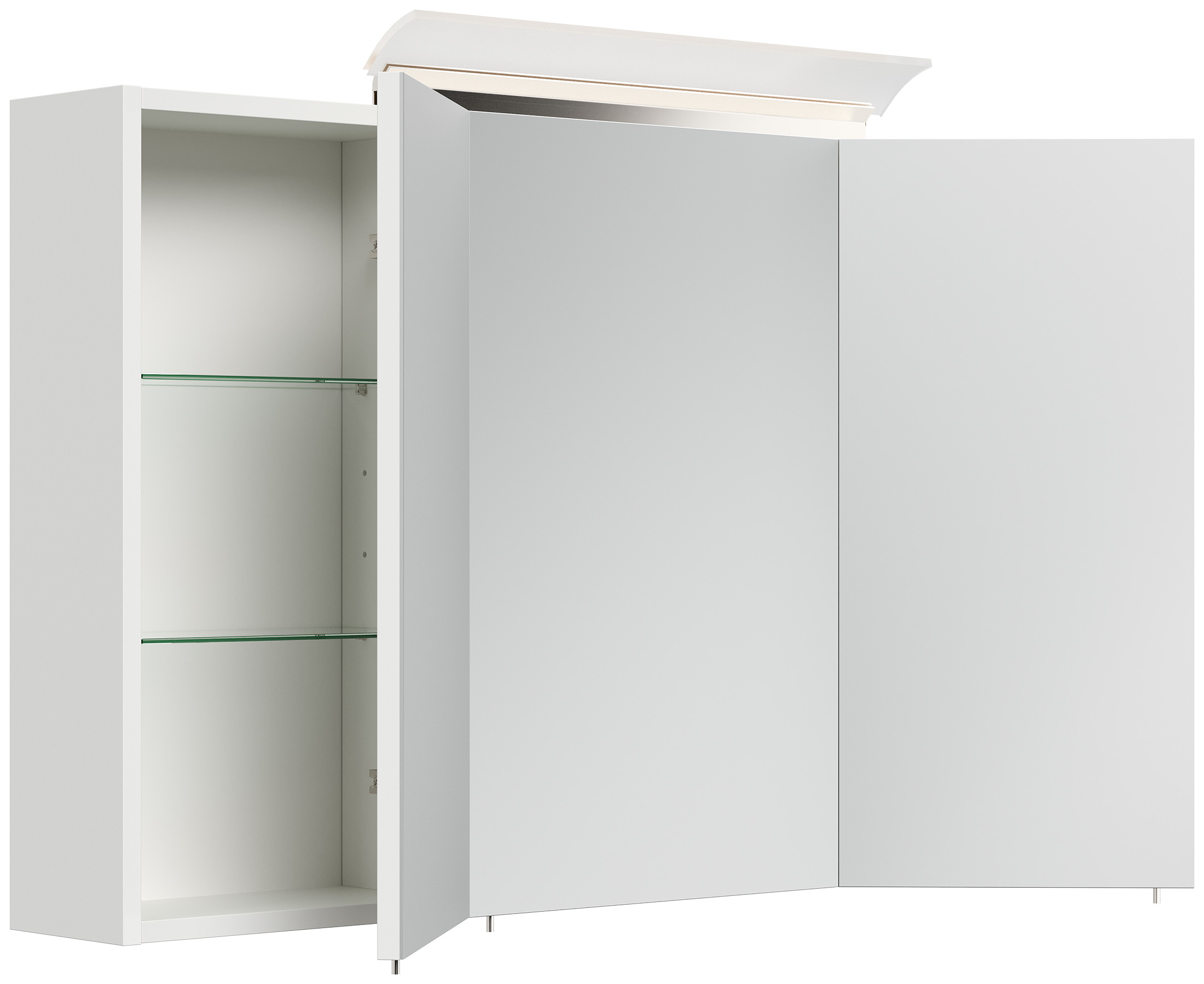 Spiegelschrank 100cm inkl. Design LED-Lampe und Glasböden weiss hochglanz